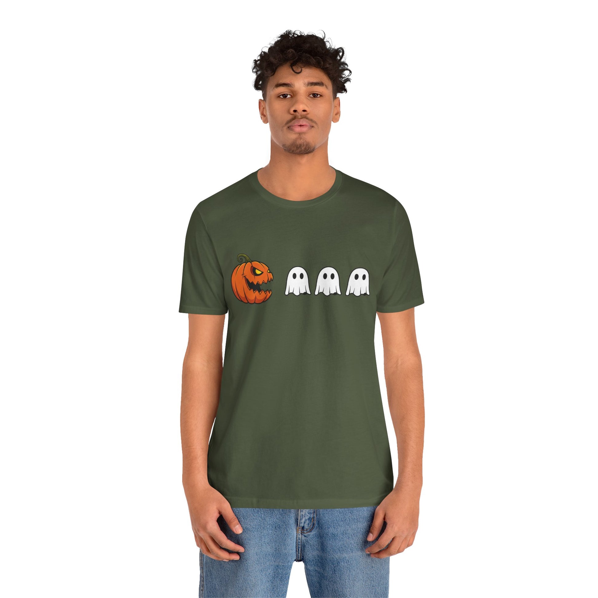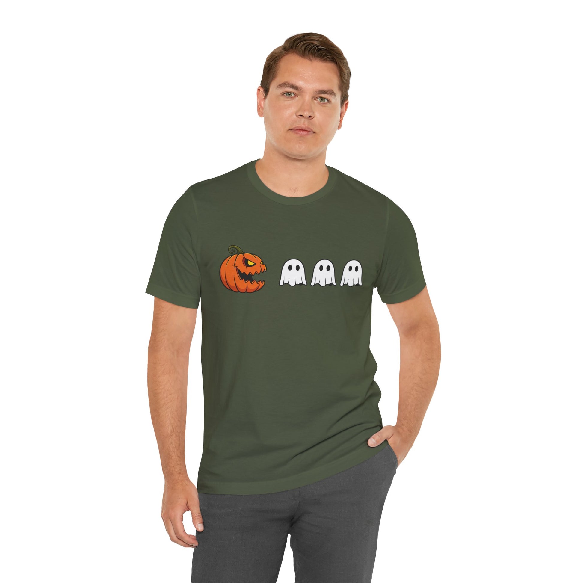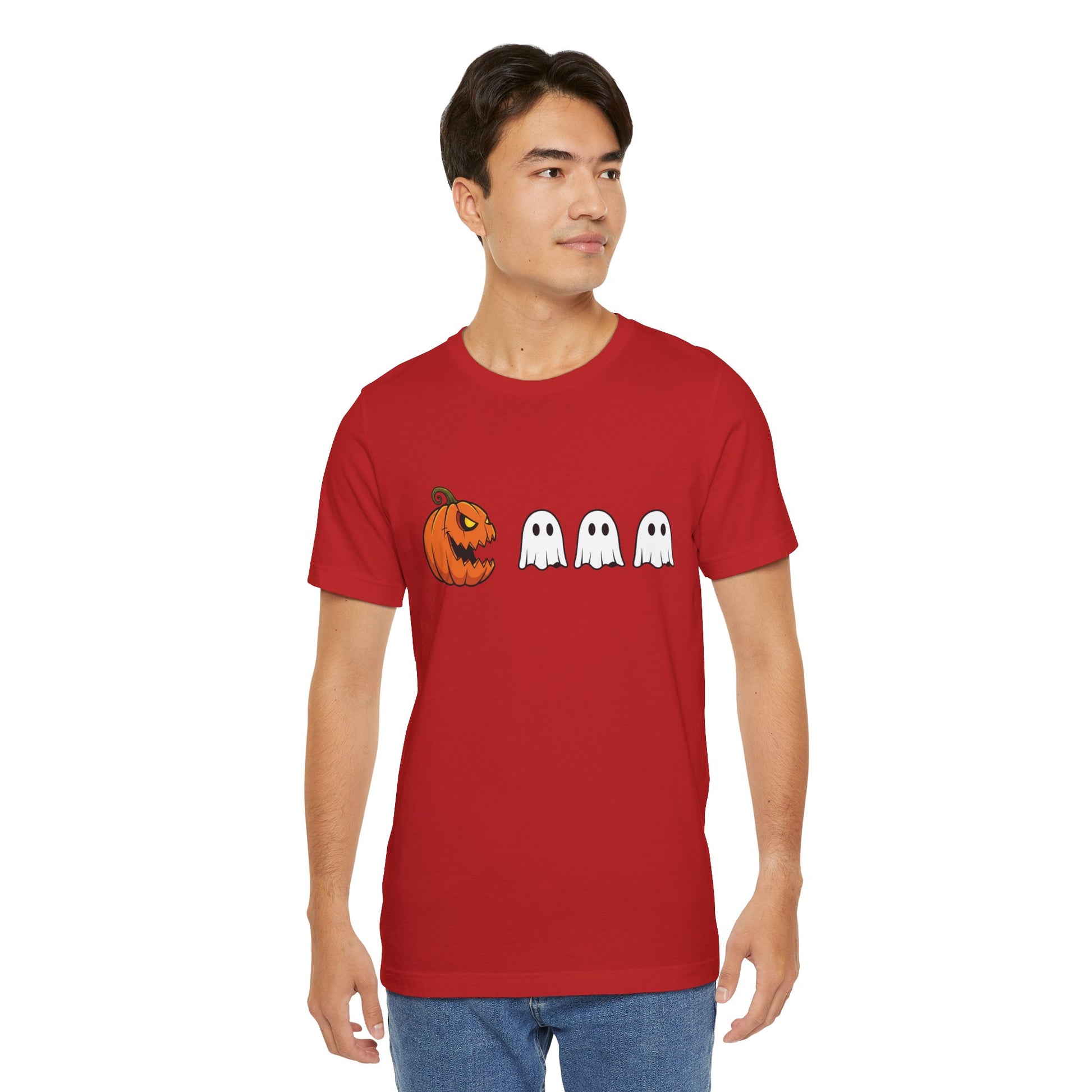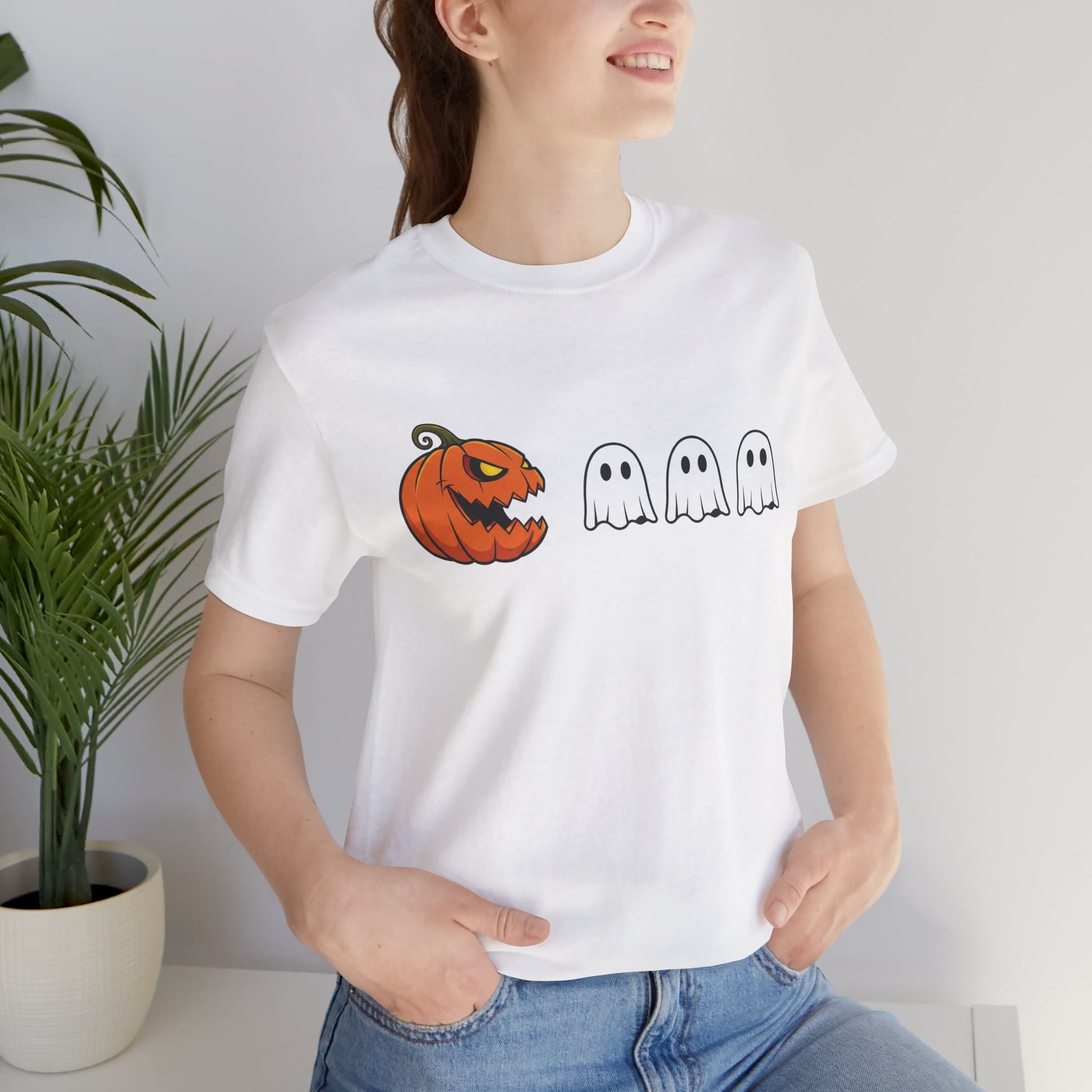 Get into the spooky spirit with this pumpkin Pac-Man shirt, turning a classic jack-o'-lantern into a retro arcade hero chasing ghosts! A clever mashup of Halloween and vintage gaming, it's ideal for anyone who loves quirky, nostalgic style.