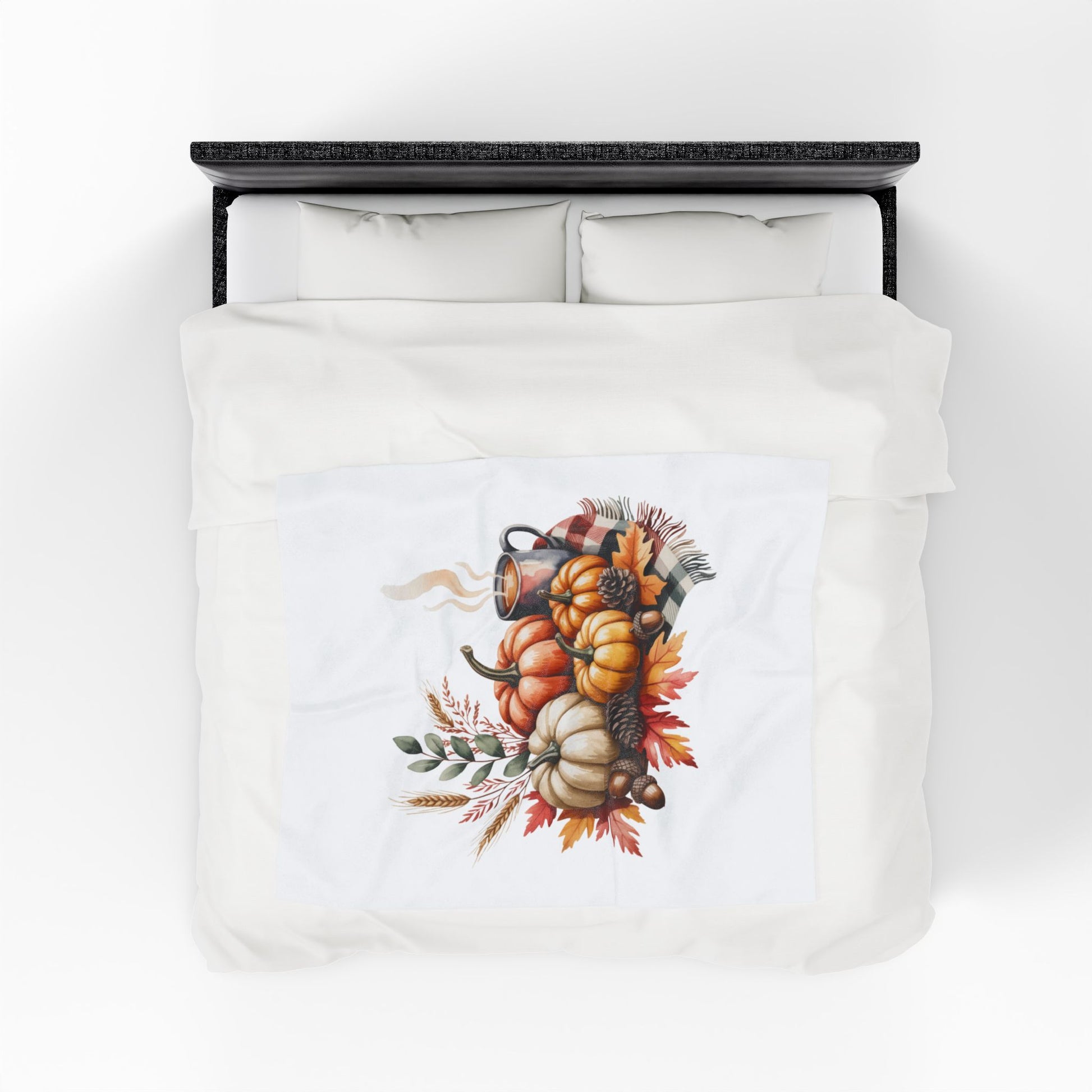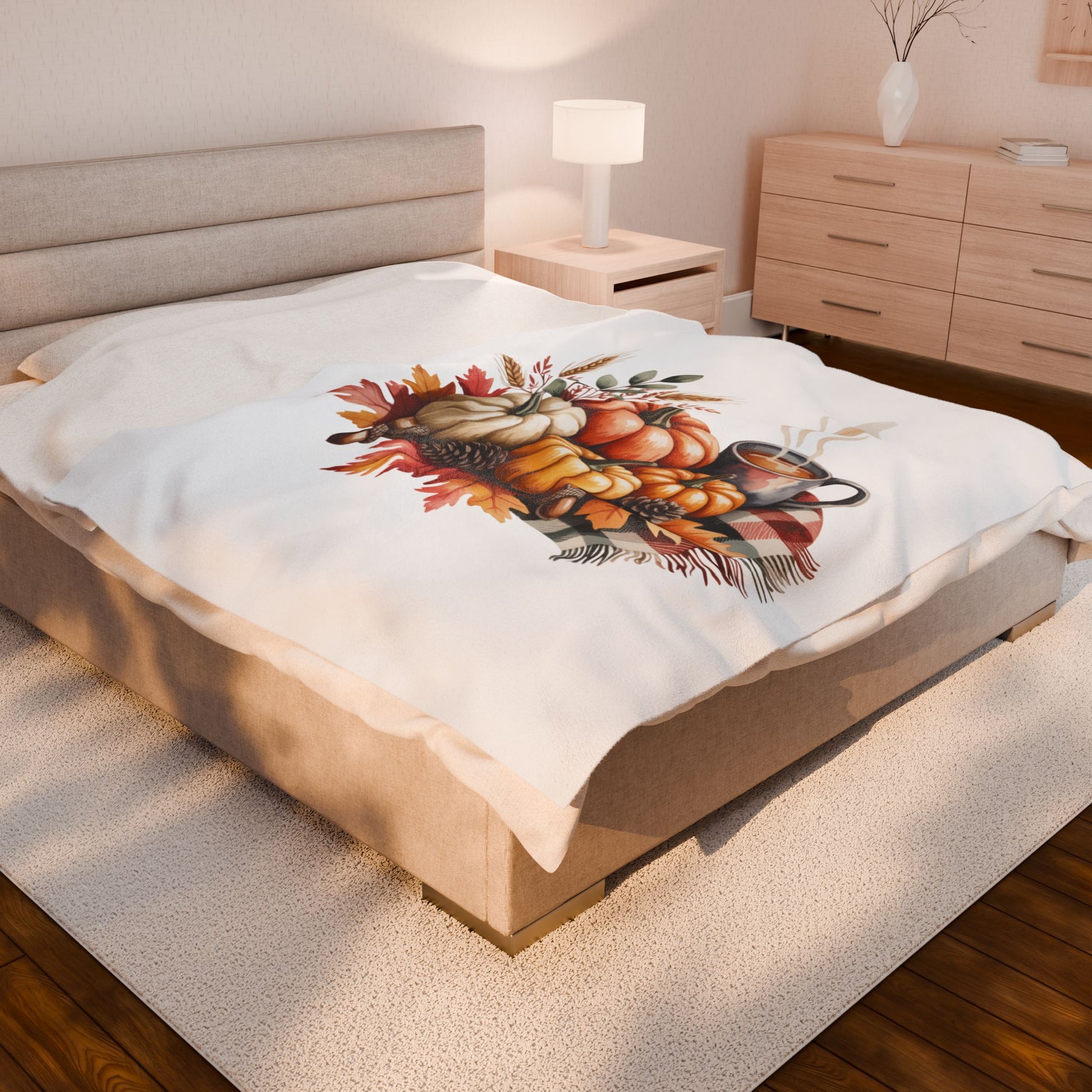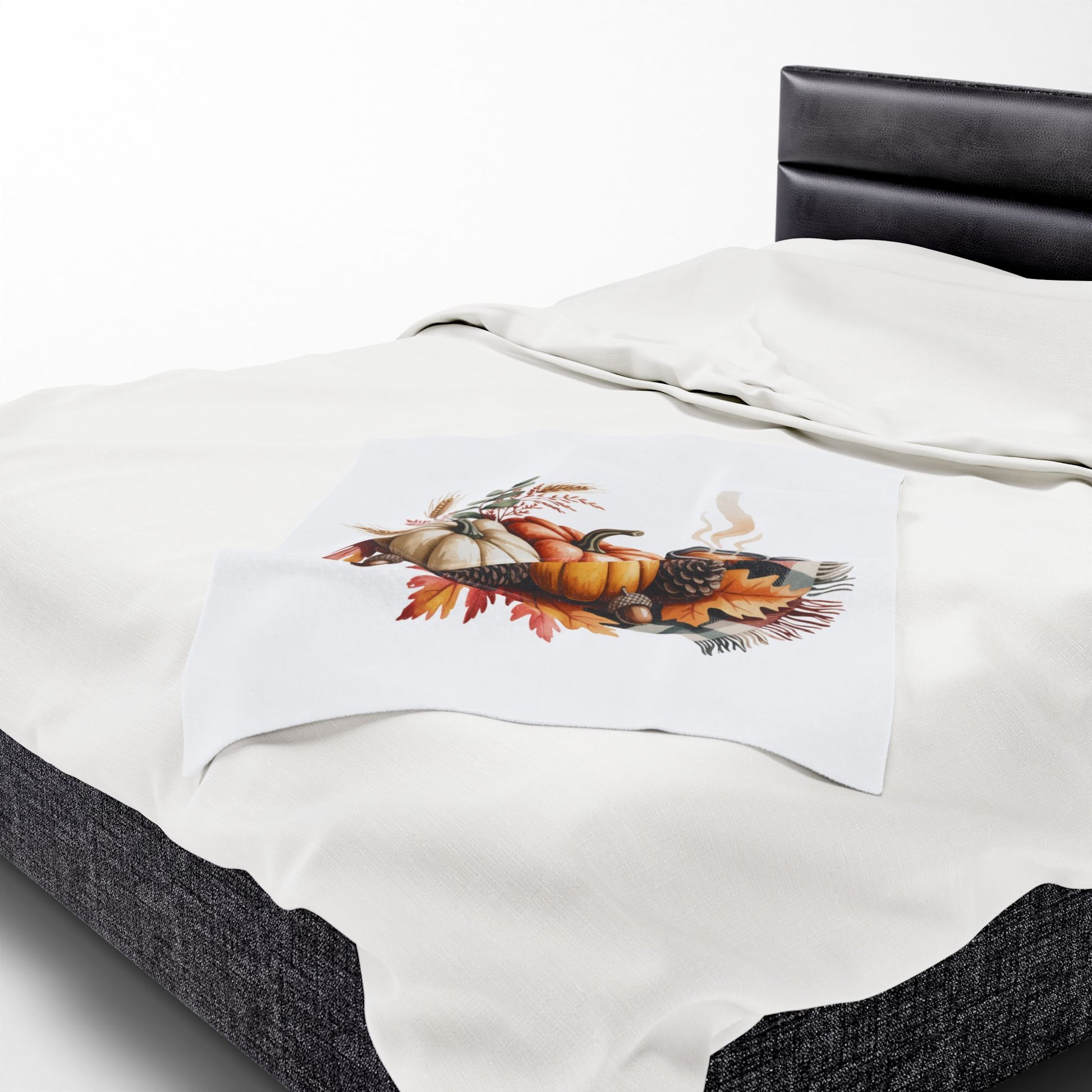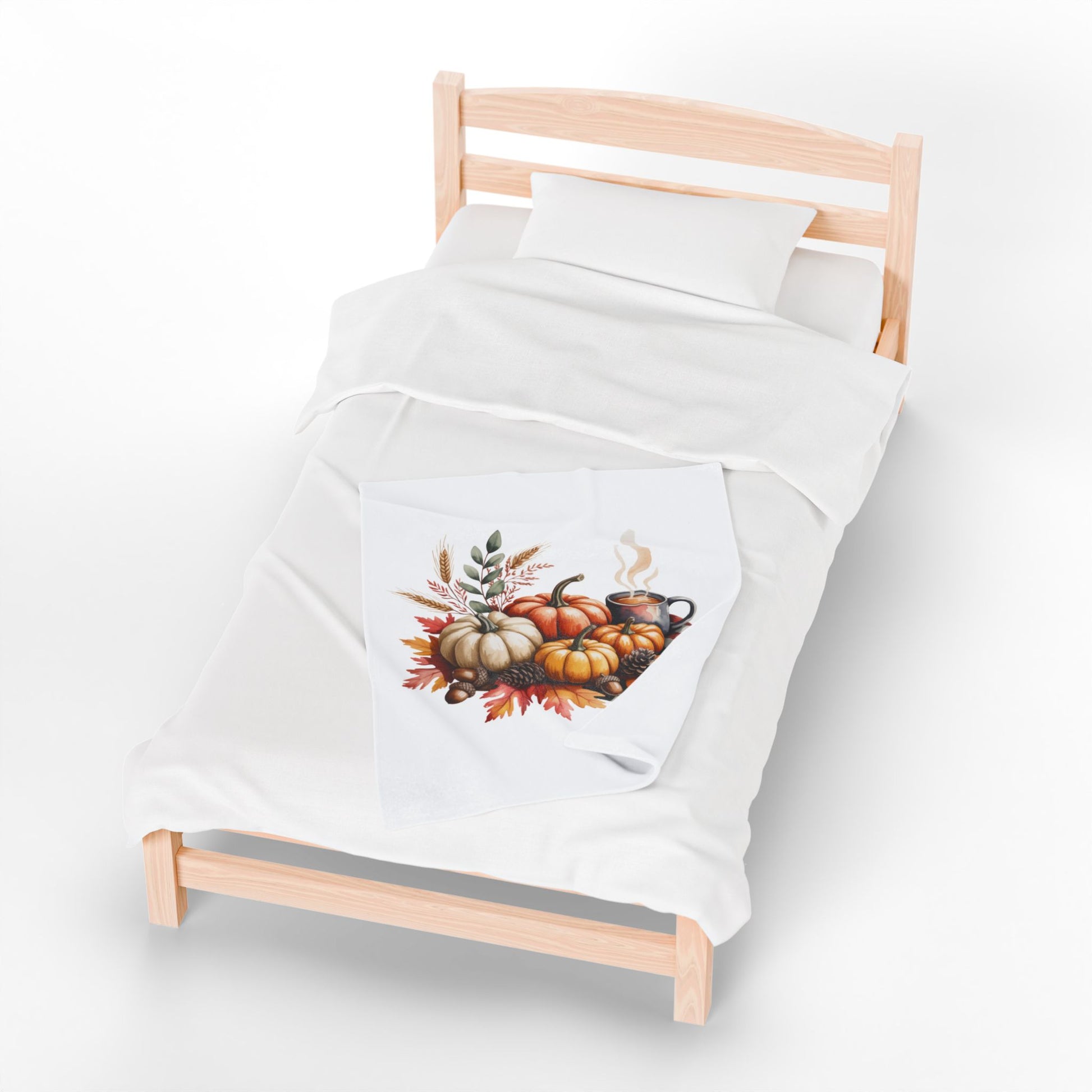 Celebrate cozy fall vibes with this Pumpkin & Plaid Fall Blanket, featuring a charming autumn design of pumpkins, acorns, fall leaves, and a steaming coffee mug. This ultra-soft fleece throw is perfect for snuggling up during cool evenings or adding a festive seasonal touch to your home décor.