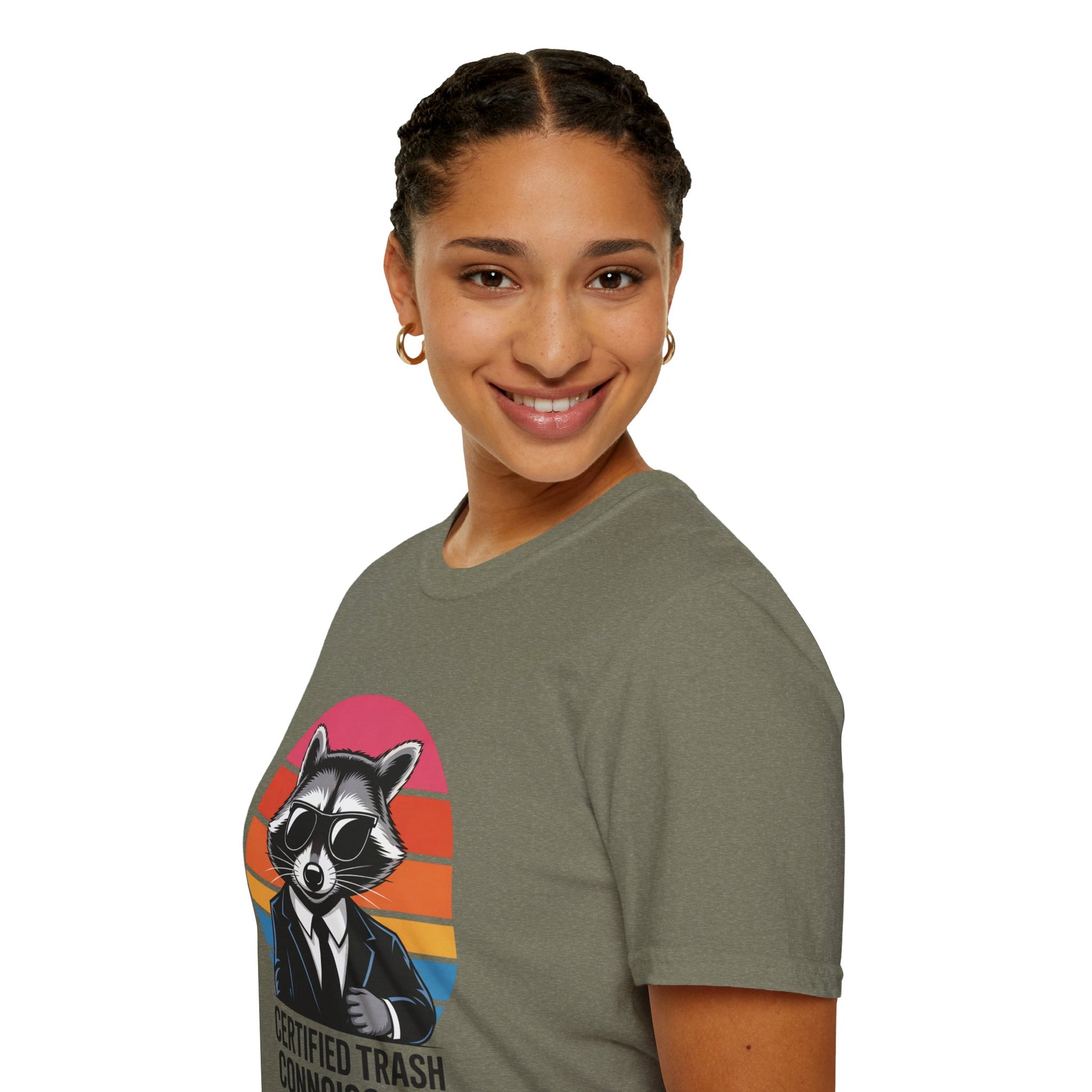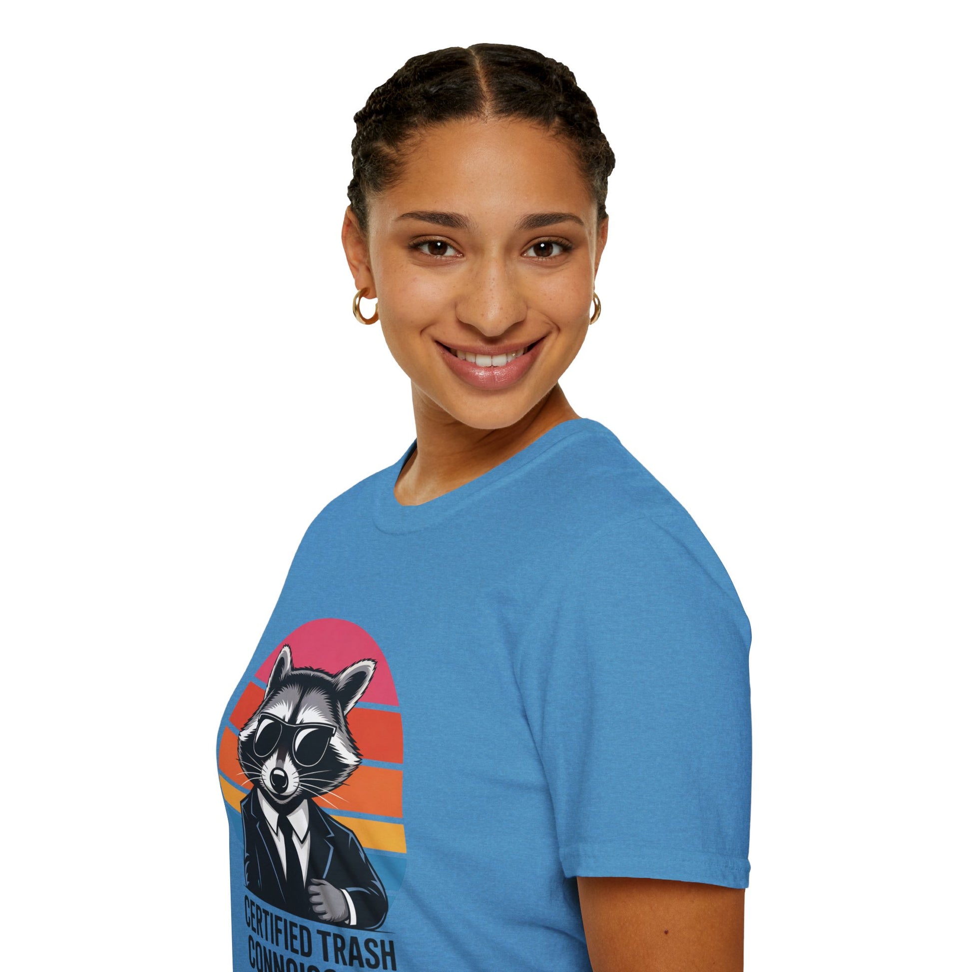 Certified Trash Connoisseur Raccoon Shirt - Funny Trash Panda Graphic Tee - Retro Sunset Vintage Vibe - Unique Gift for Raccoon Lover