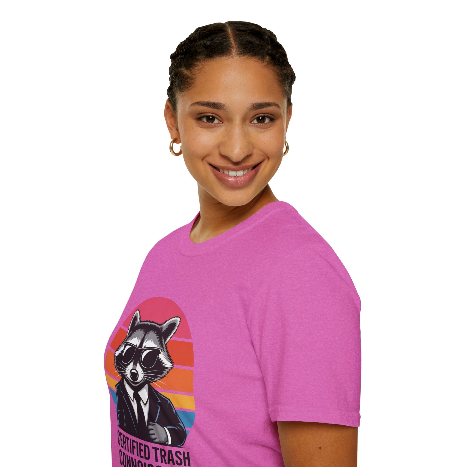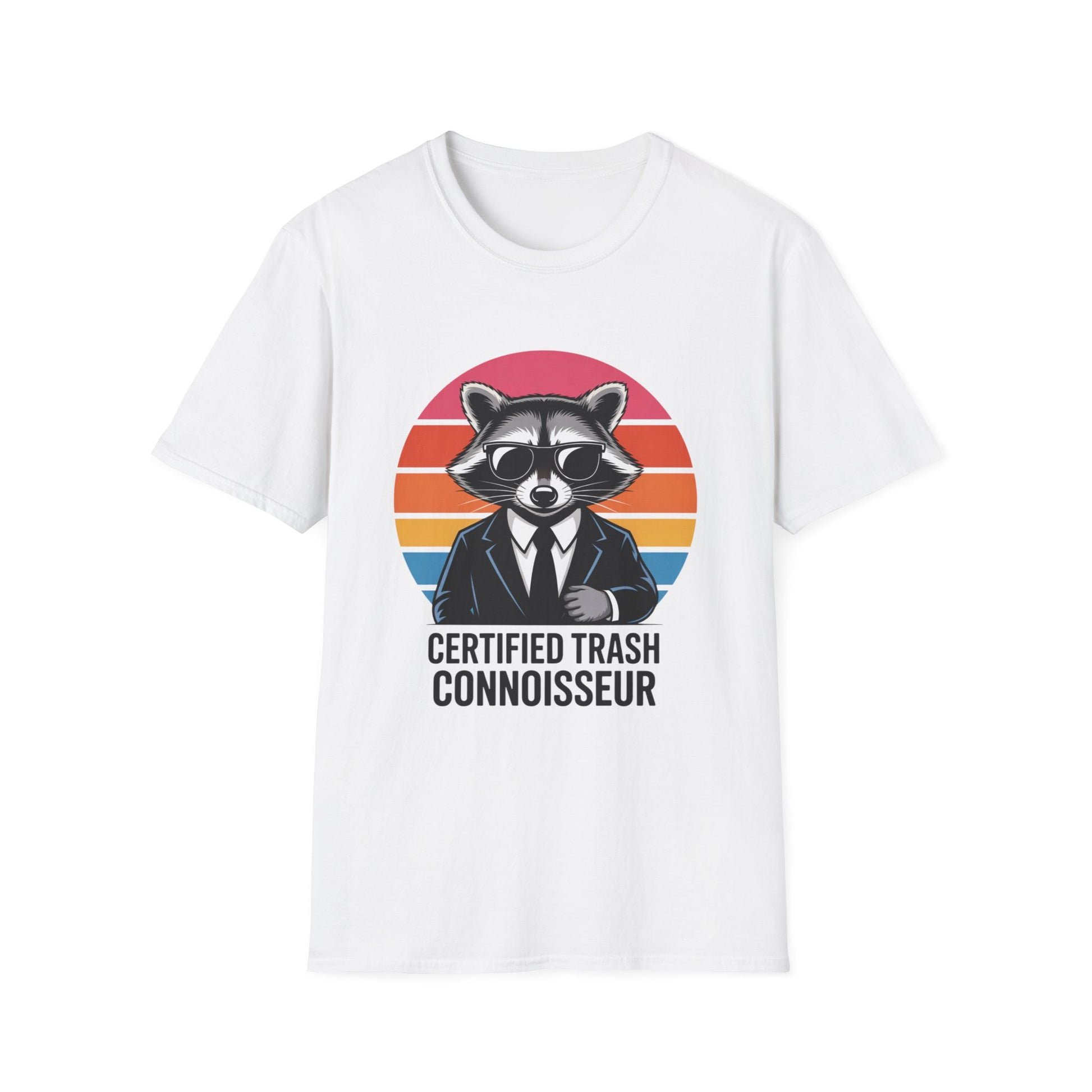 Unleash your inner trash‑panda swagger with our Certified Trash Connoisseur tee! This high‑quality unisex shirt features a stylish raccoon in sunglasses and suit, lounging against a retro sunset backdrop. Printed on soft, durable fabric—ideal for everyday wear, TikTok reels, or pairing under a blazer for that rocker‑chic contrast.