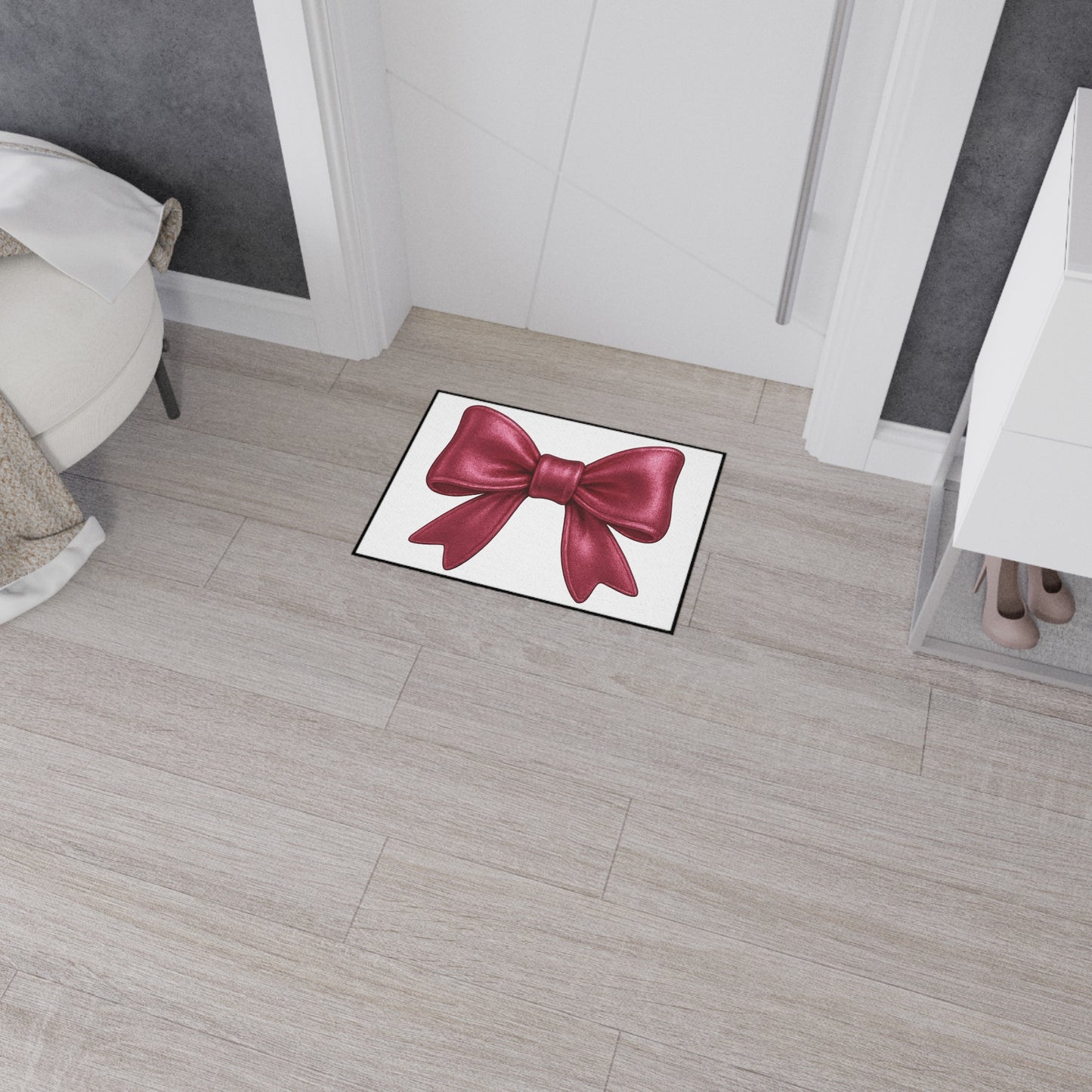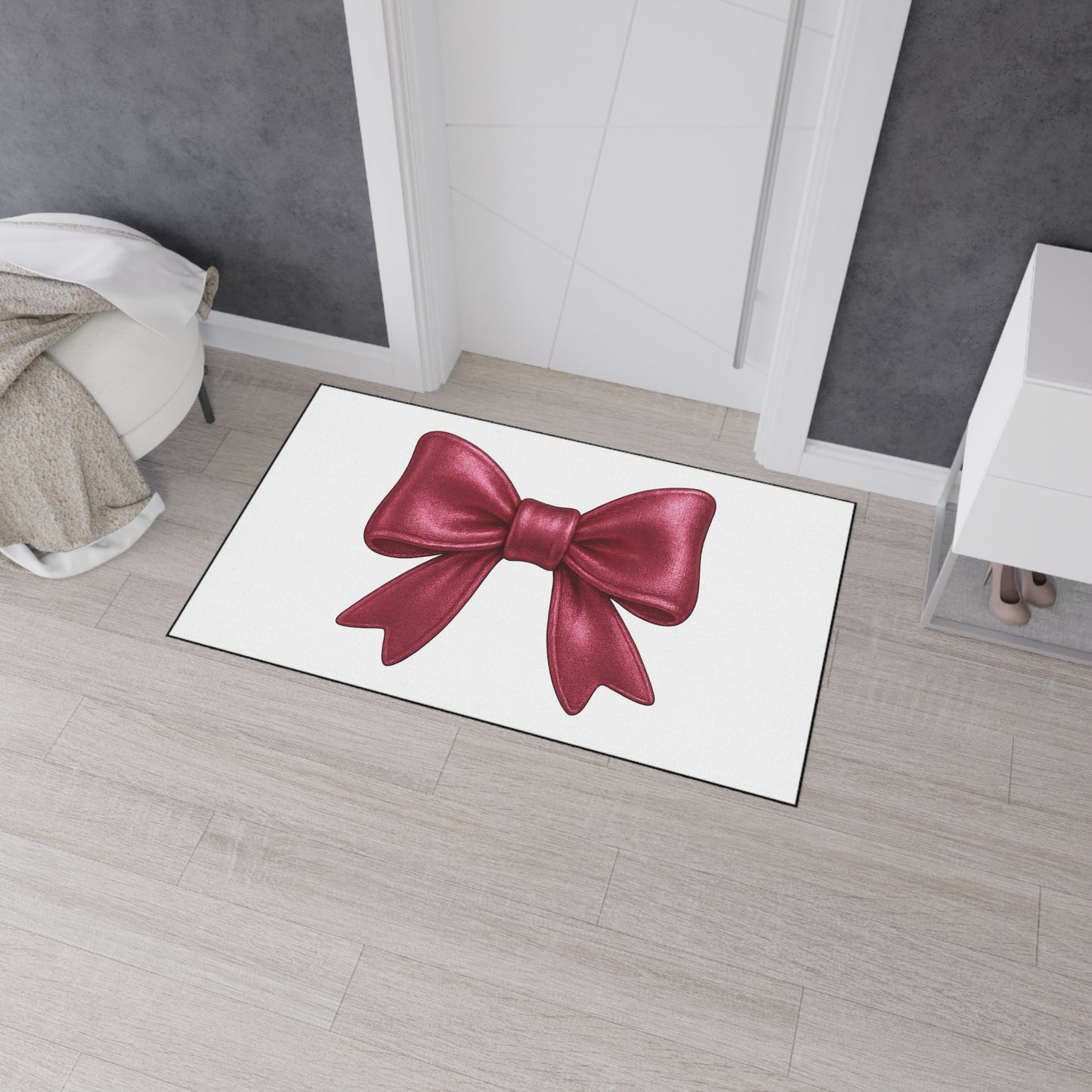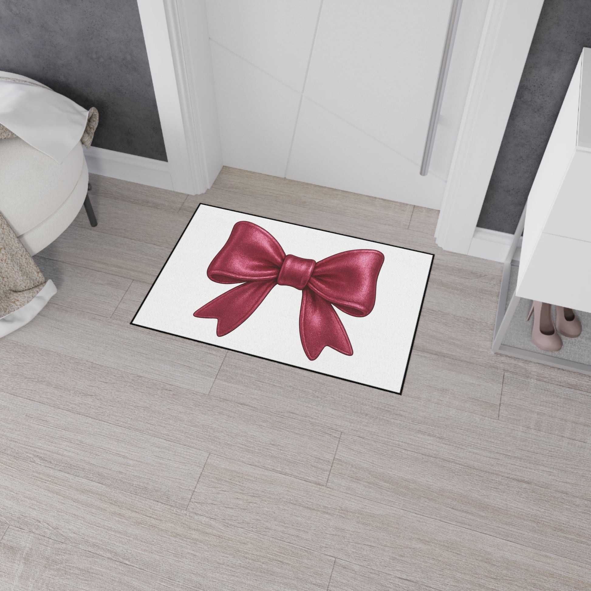 Step into style with this elegant red bow doormat – where charm meets function.