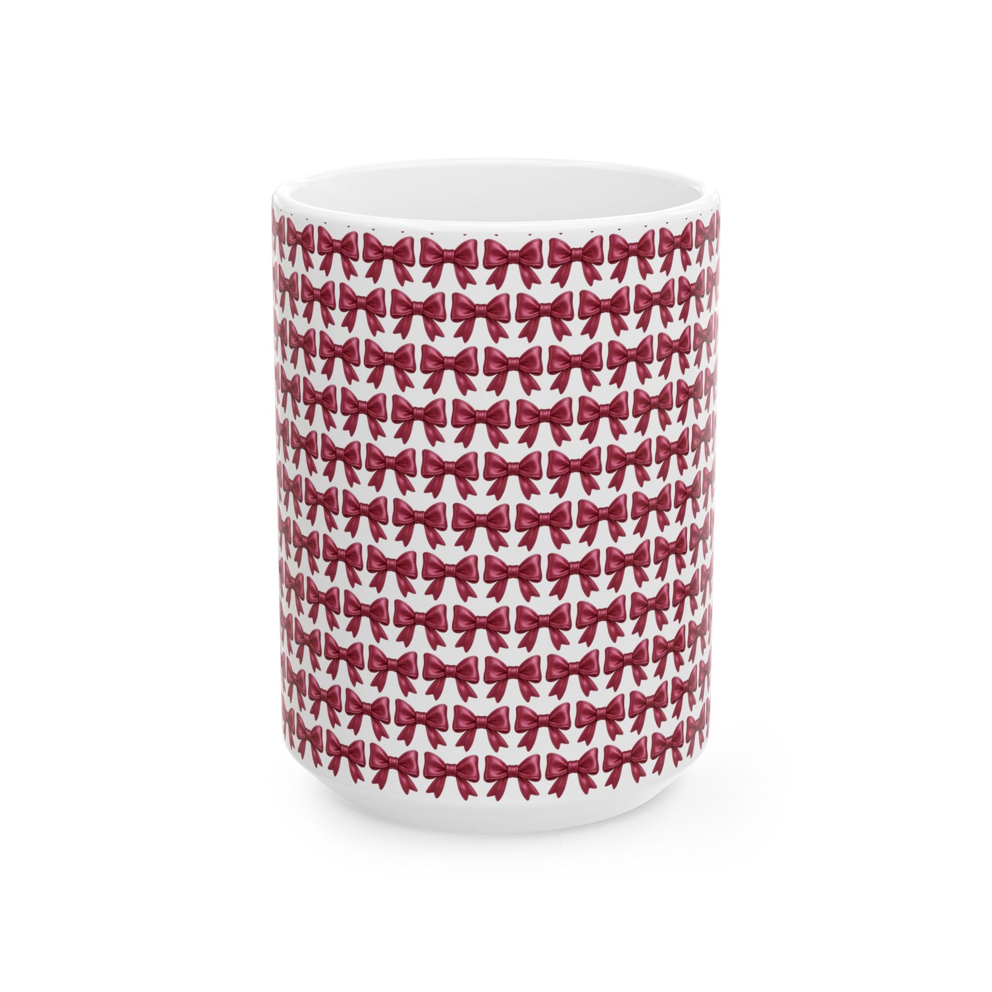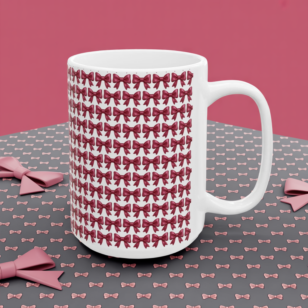 Coquette Bow Coffee Mug • Pink Ribbon Bow Pattern Cup • Girly Aesthetic Drinkware • Cute Coquette Kitchen Decor Gift • 11oz 15oz Mug