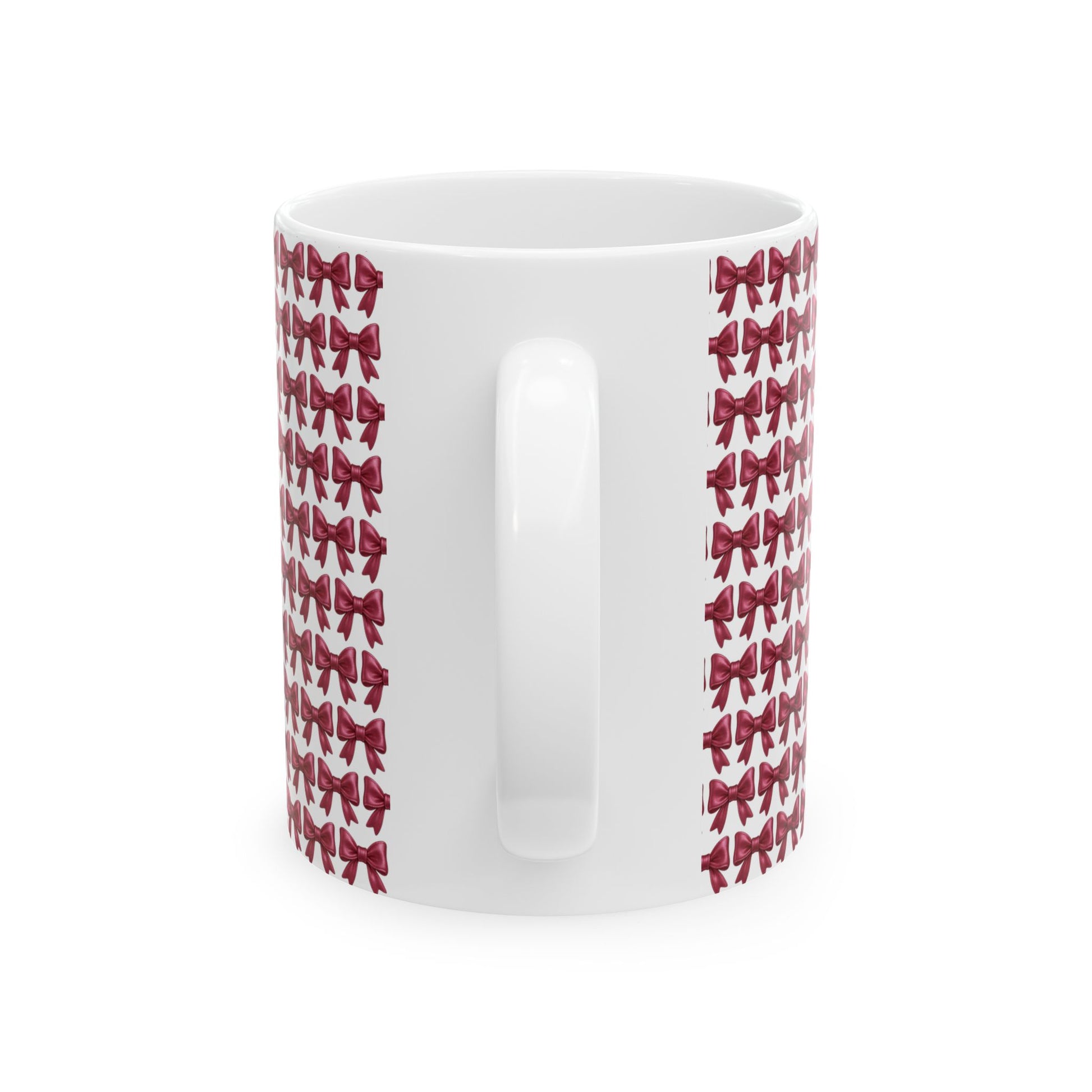 Sip in style with this Coquette Bow Coffee Mug, featuring a full-wrap pink ribbon bow pattern for the ultimate girly aesthetic.