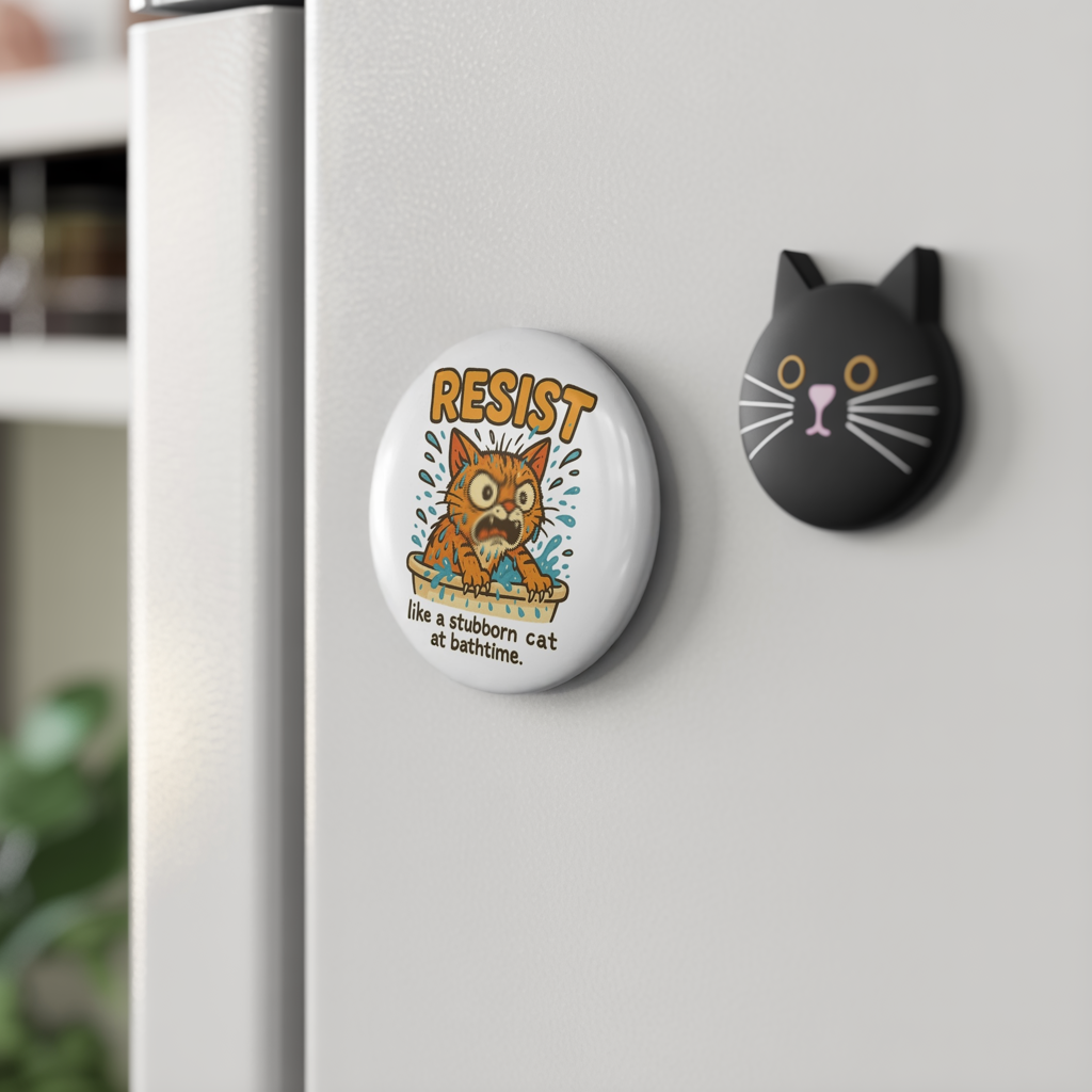 Resist Like a Stubborn Cat Magnet - Funny Cat Bath Time Quote - Humorous Kitchen Decor - Fridge Magnet Gift for Cat Lovers
