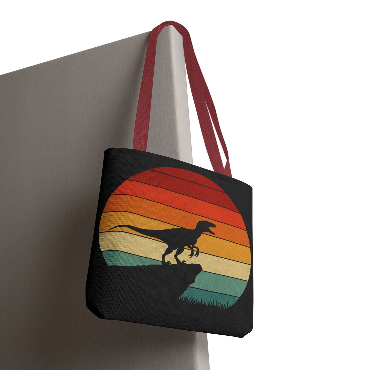 Retro Dino Sunset Tote Bag - Eco Canvas Dinosaur Beach Bag | Sustainable and Stylish Camping, Dino Lover Gift, Reusable Market Tote
