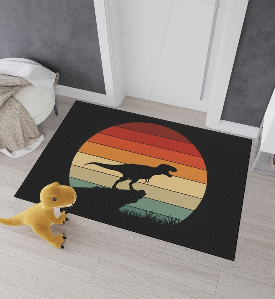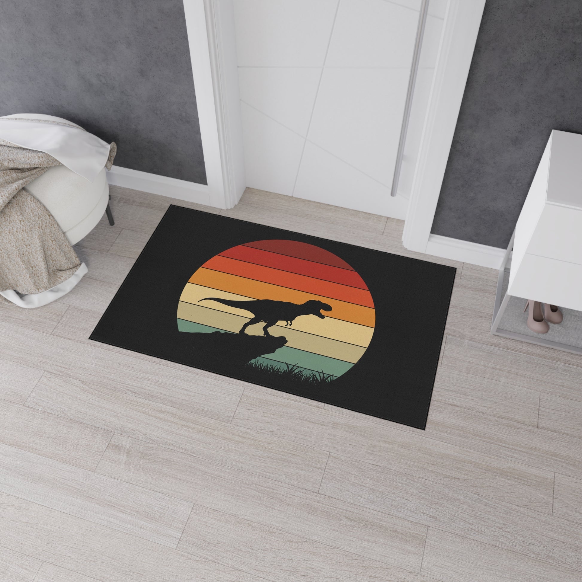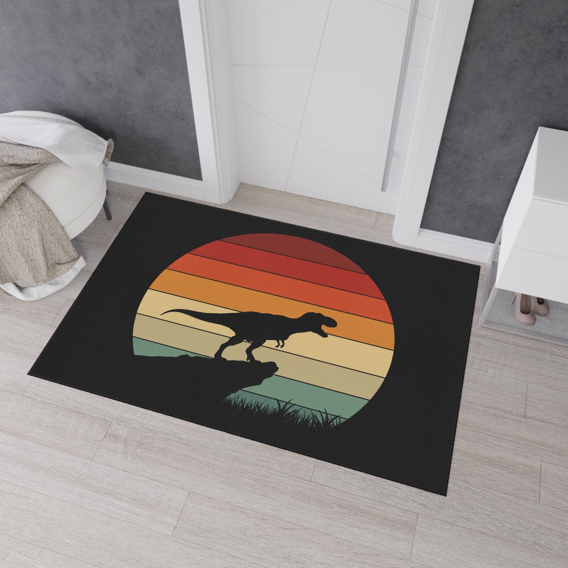 Retro T-Rex Sunset Floor Mat | Heavy Duty Playroom Rug - Non-Slip Dinosaur Entrance Mat for Kids Room, Home, Nursery Decor