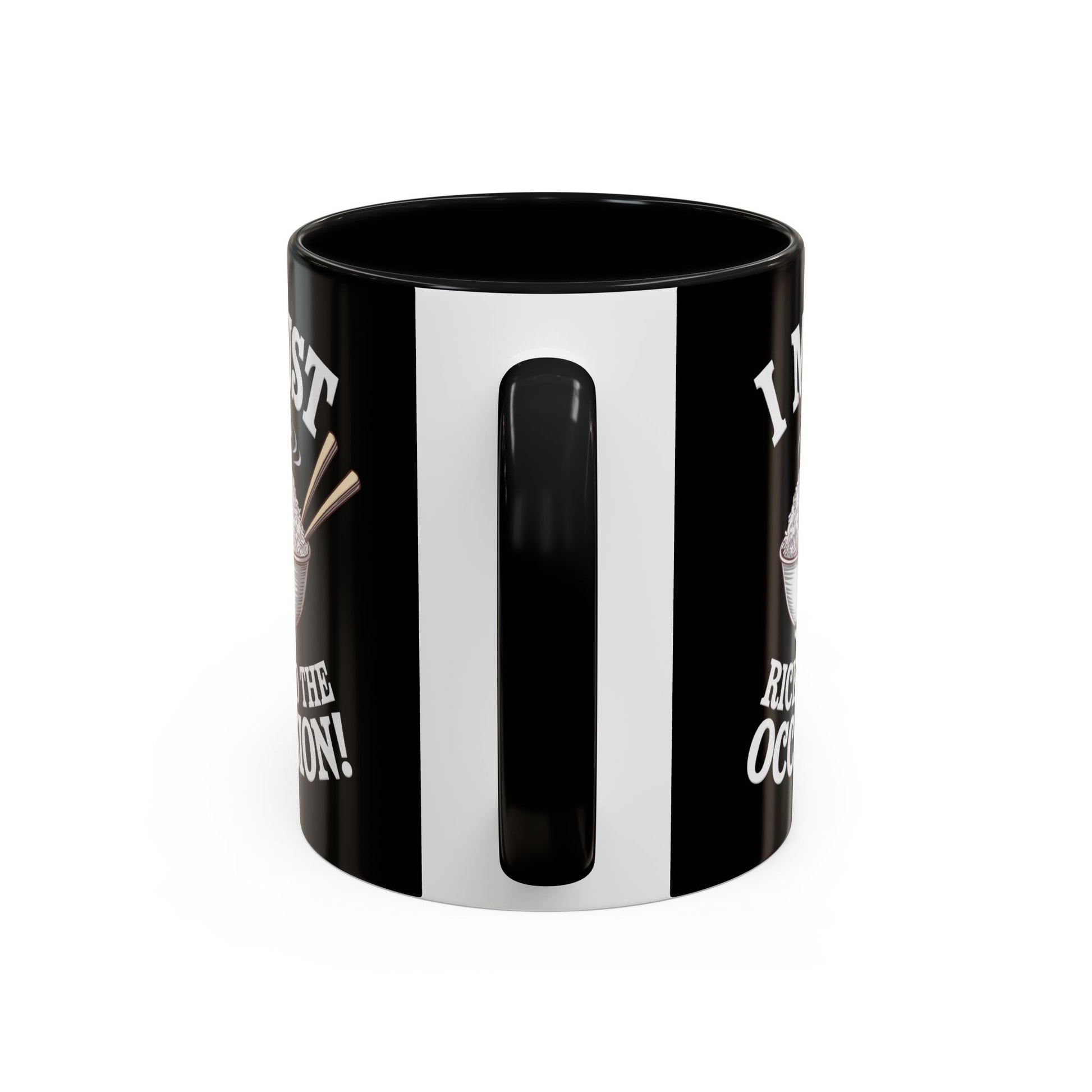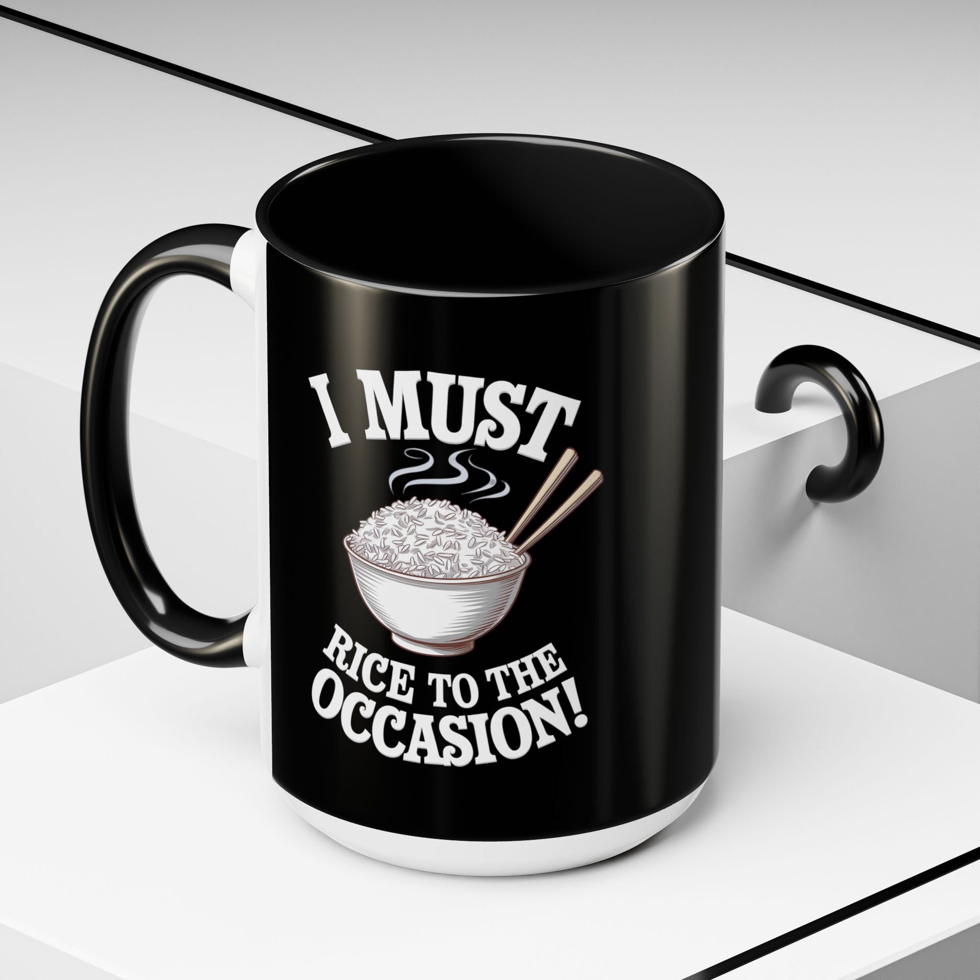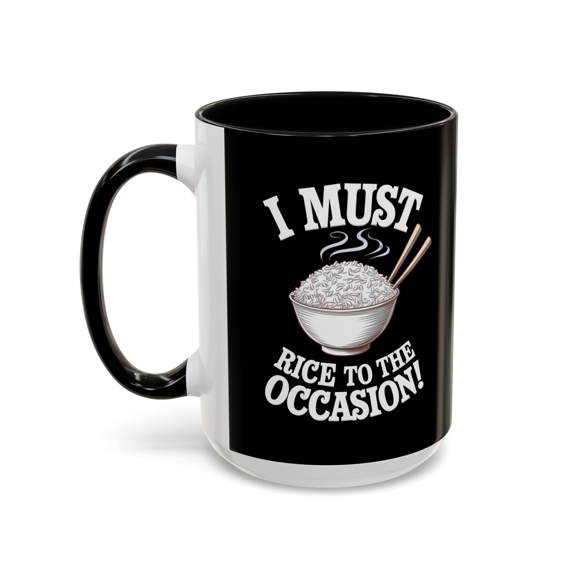 Start your day off right with our hilarious "I Must Rice to the Occasion!" mug, featuring a playful bowl of rice. Perfect for rice lovers, foodies, and anyone who appreciates a good pun!