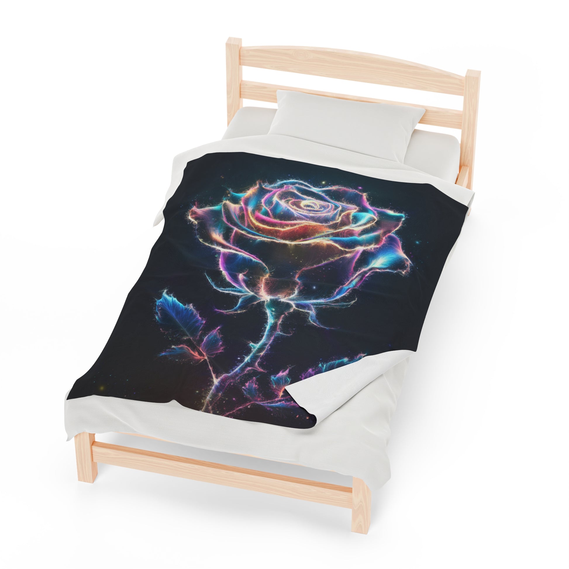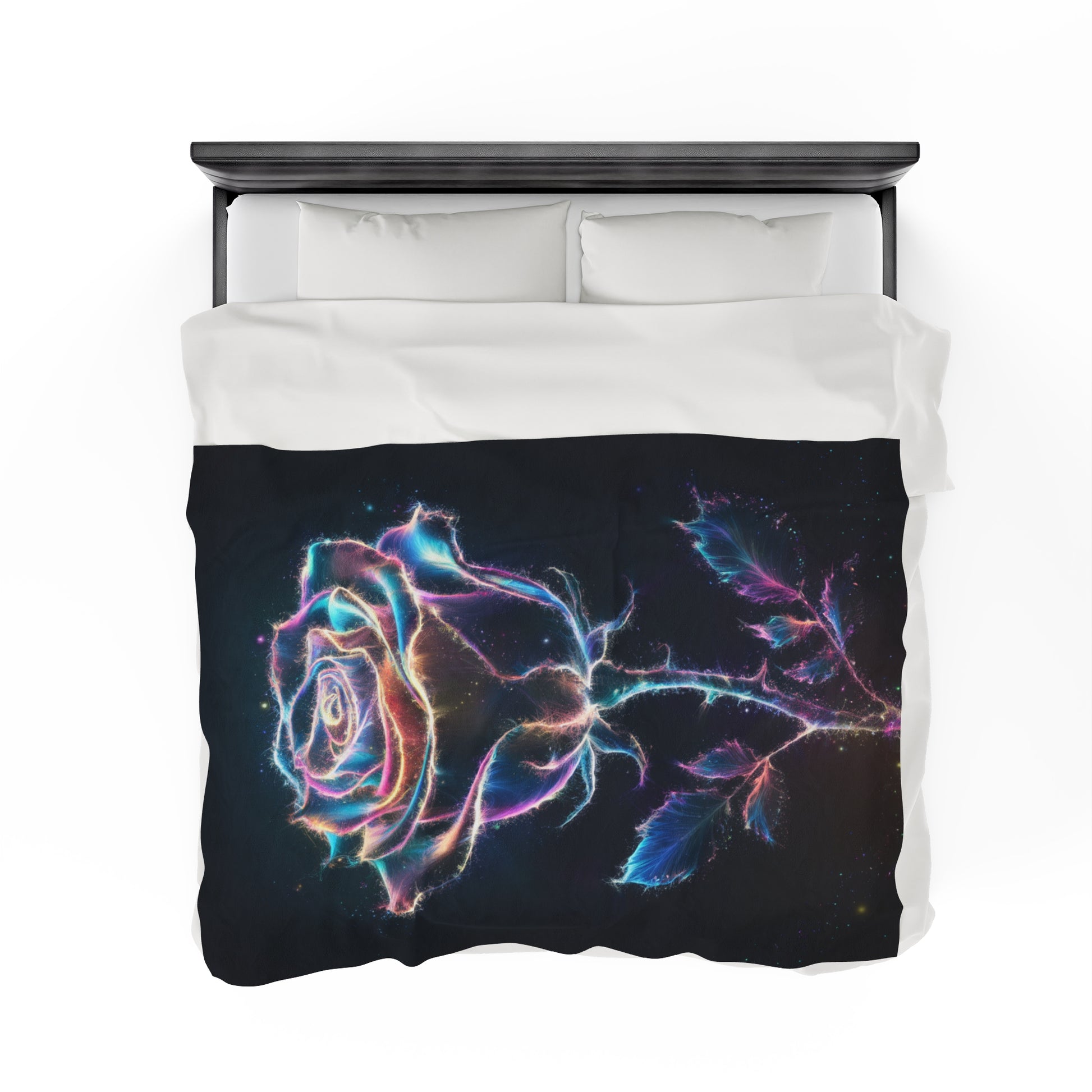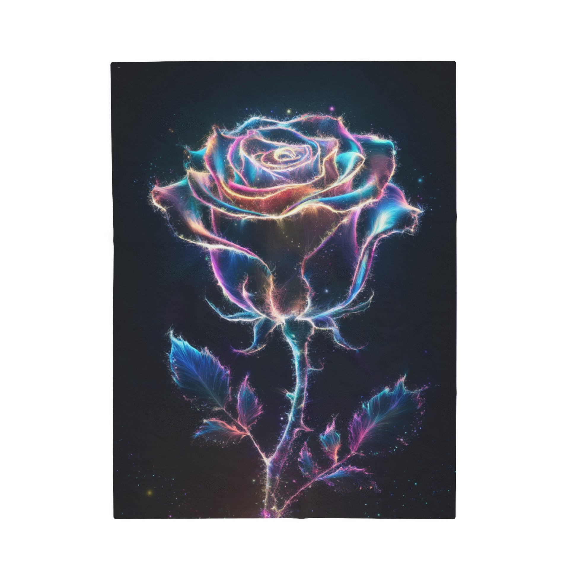 .: Your print goes on one side of the blanket in high detail and vibrant color, showcasing the beautiful bioluminescent rose design