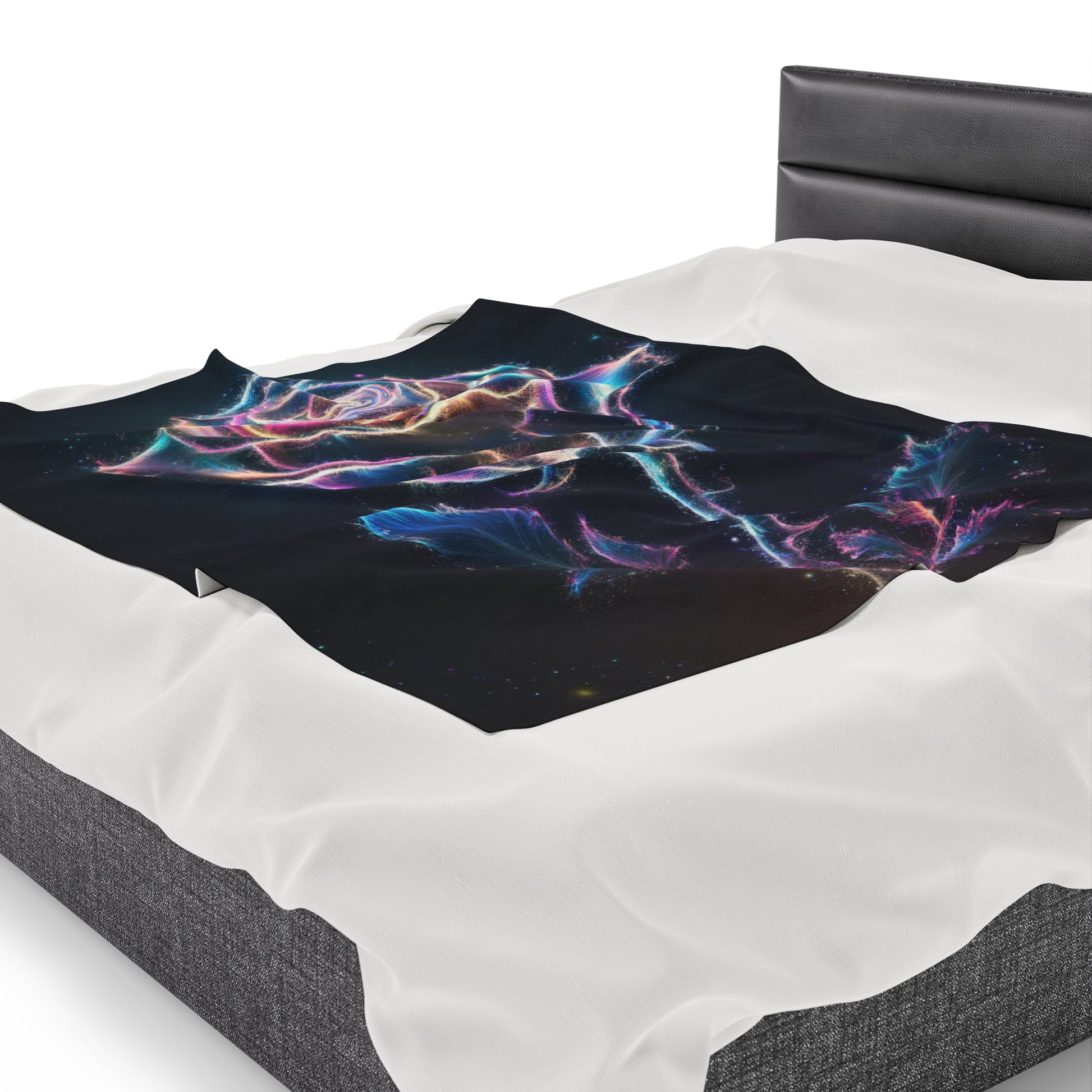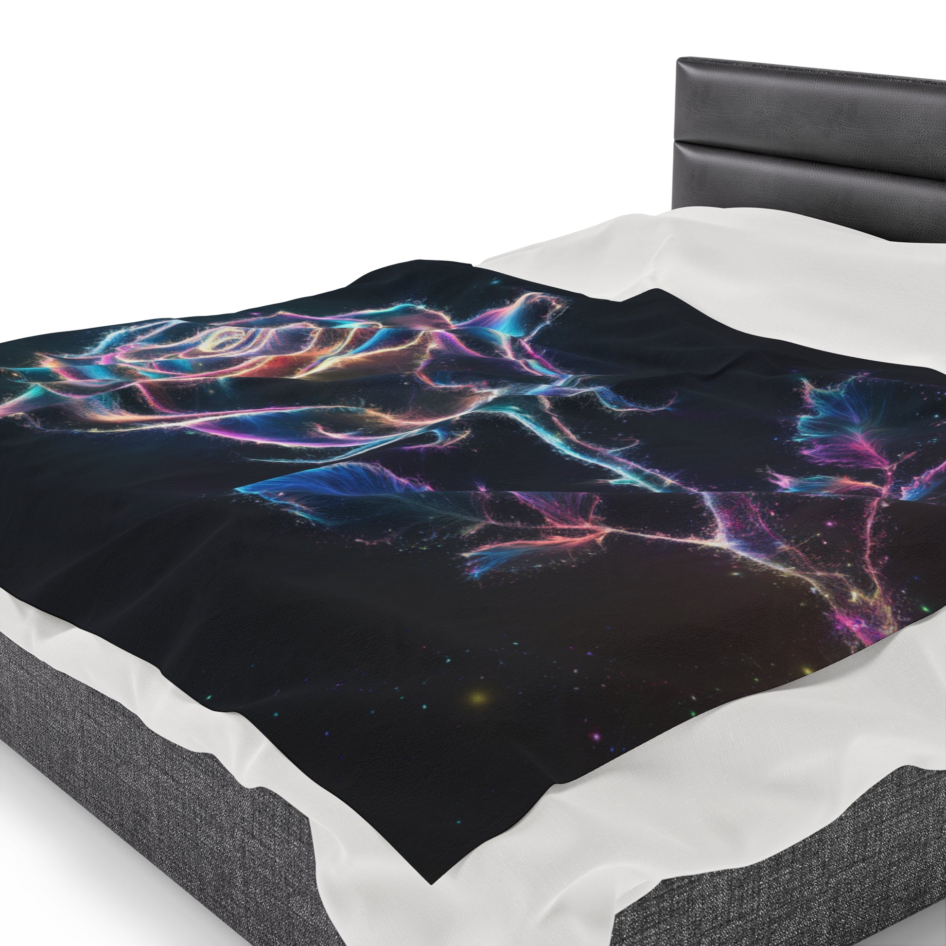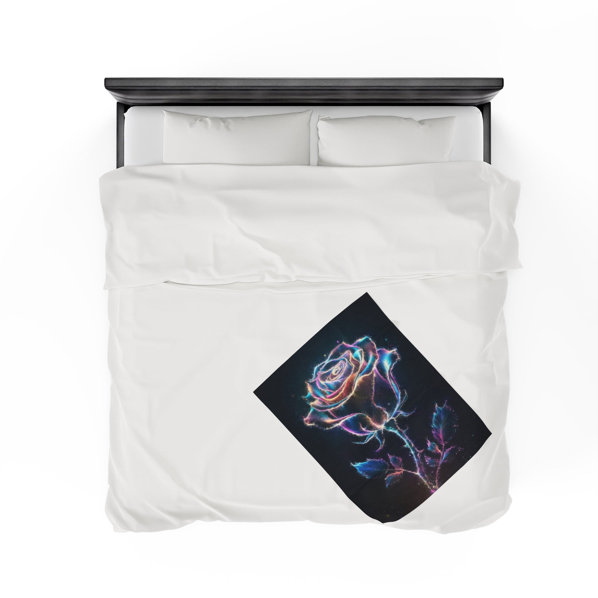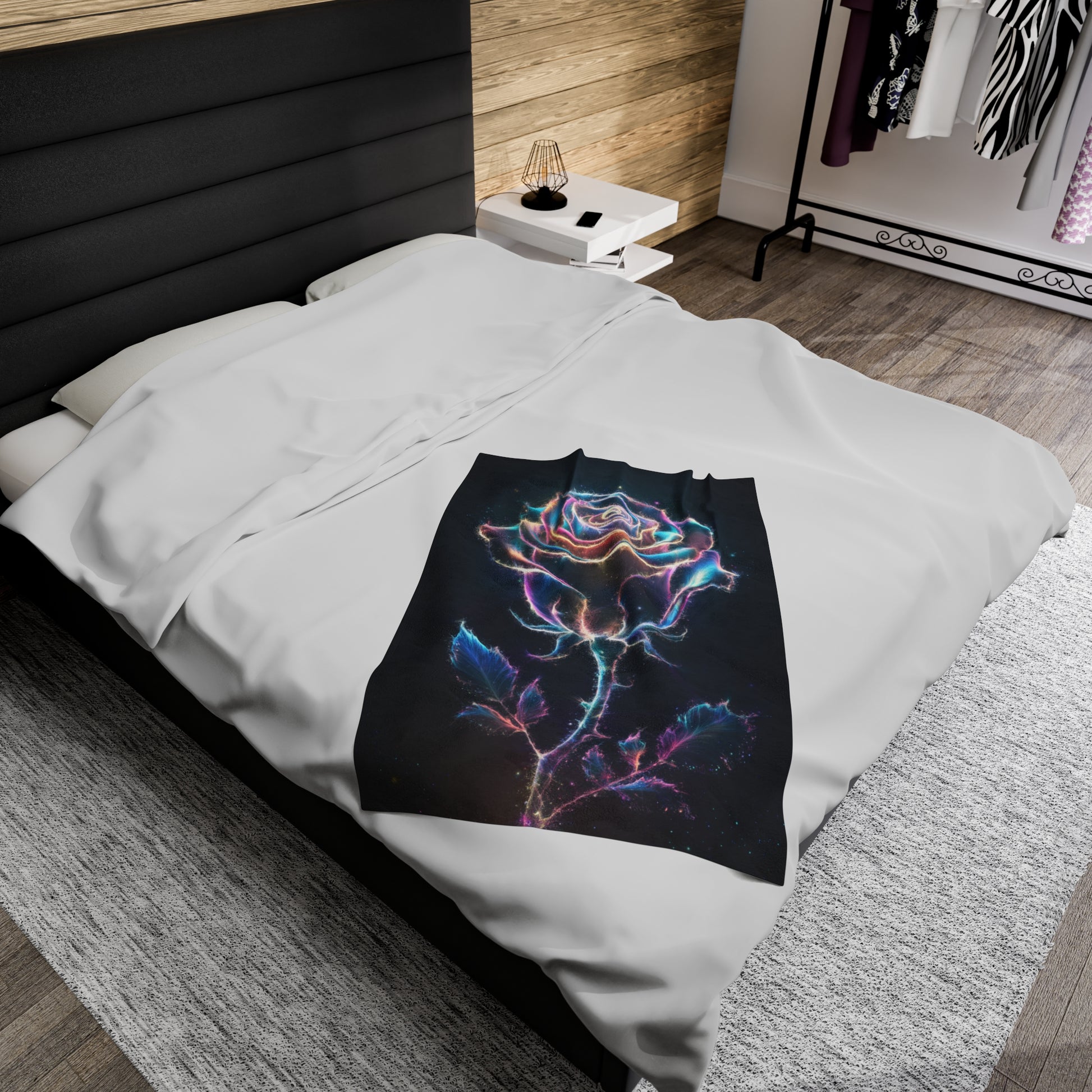 .: Your print goes on one side of the blanket in high detail and vibrant color, showcasing the beautiful bioluminescent rose design