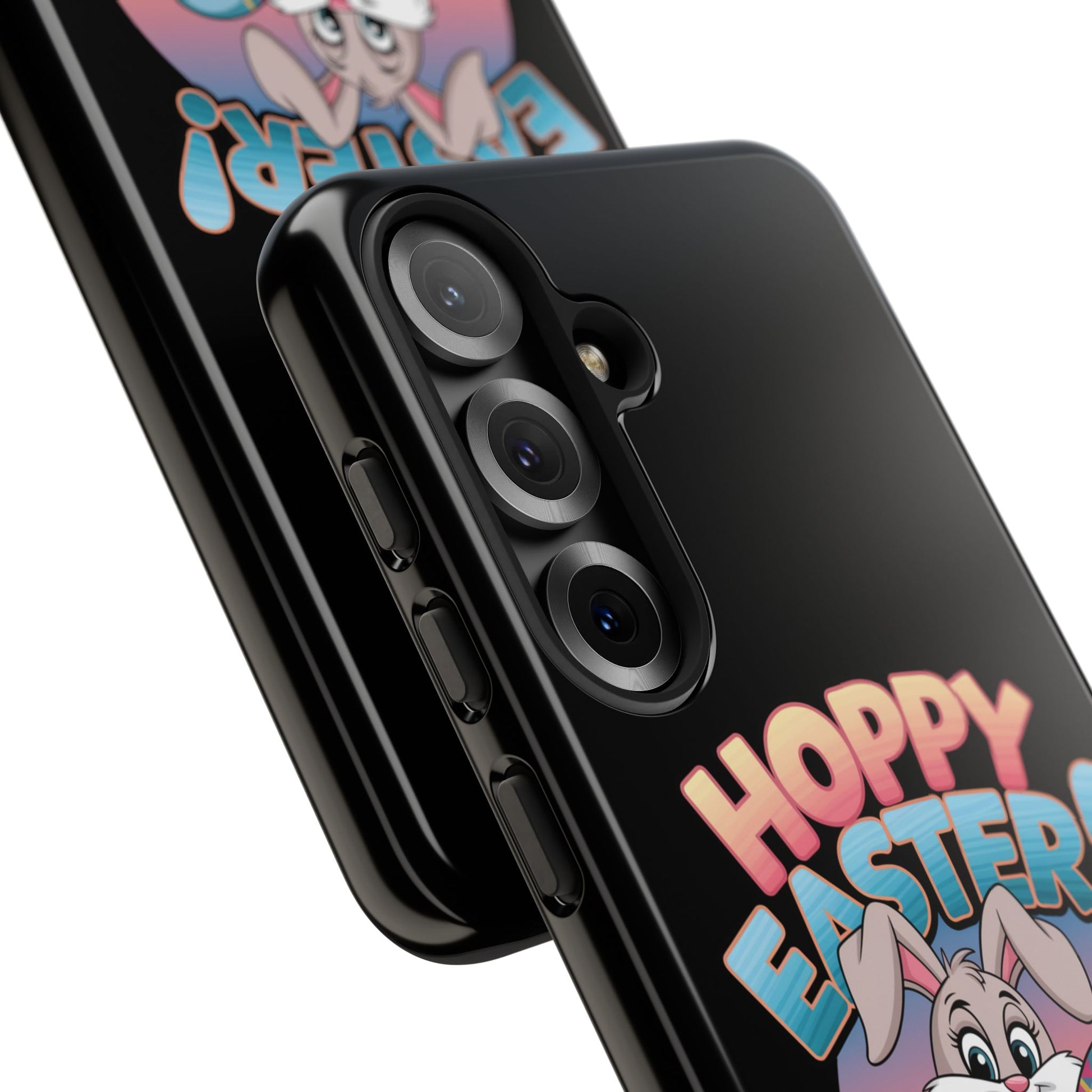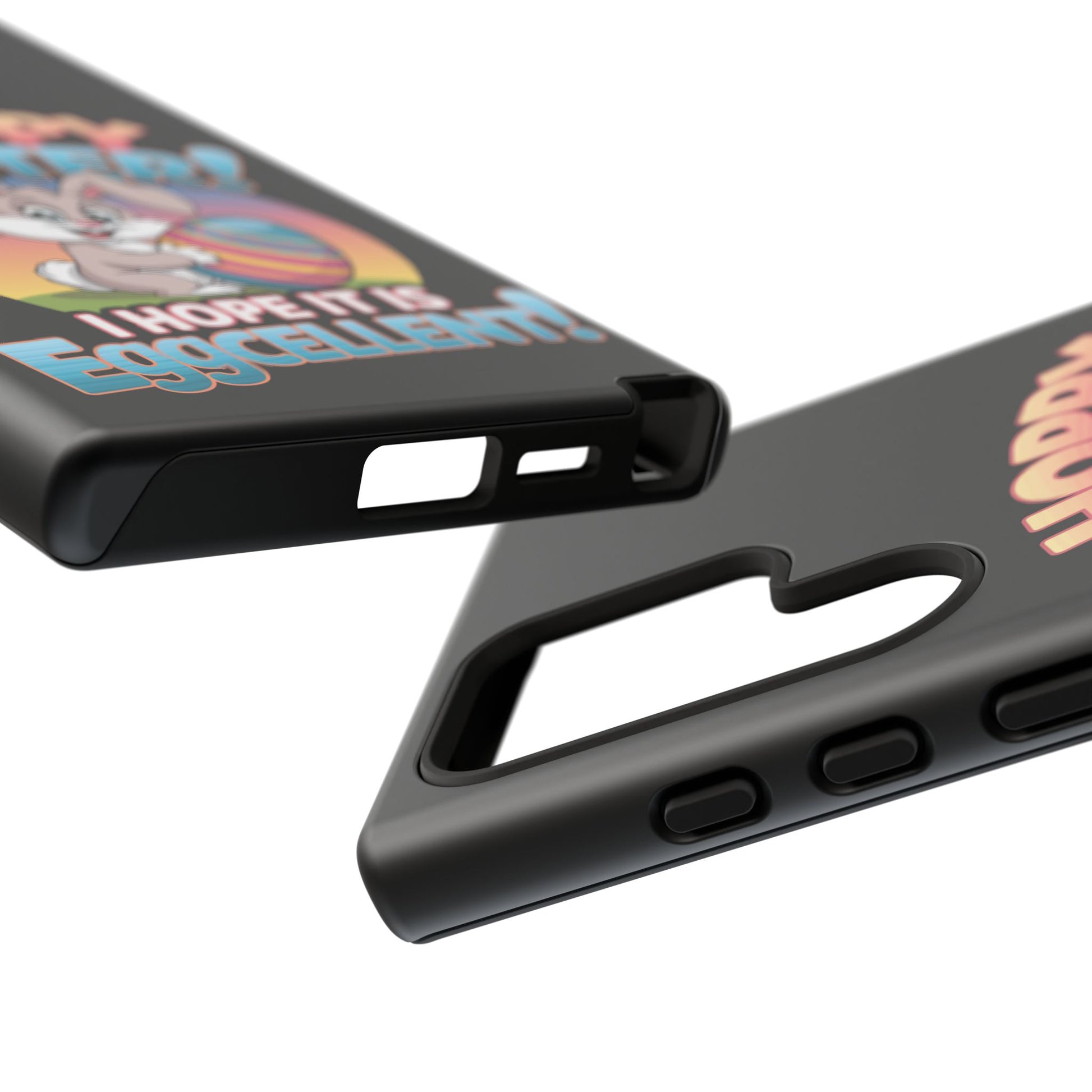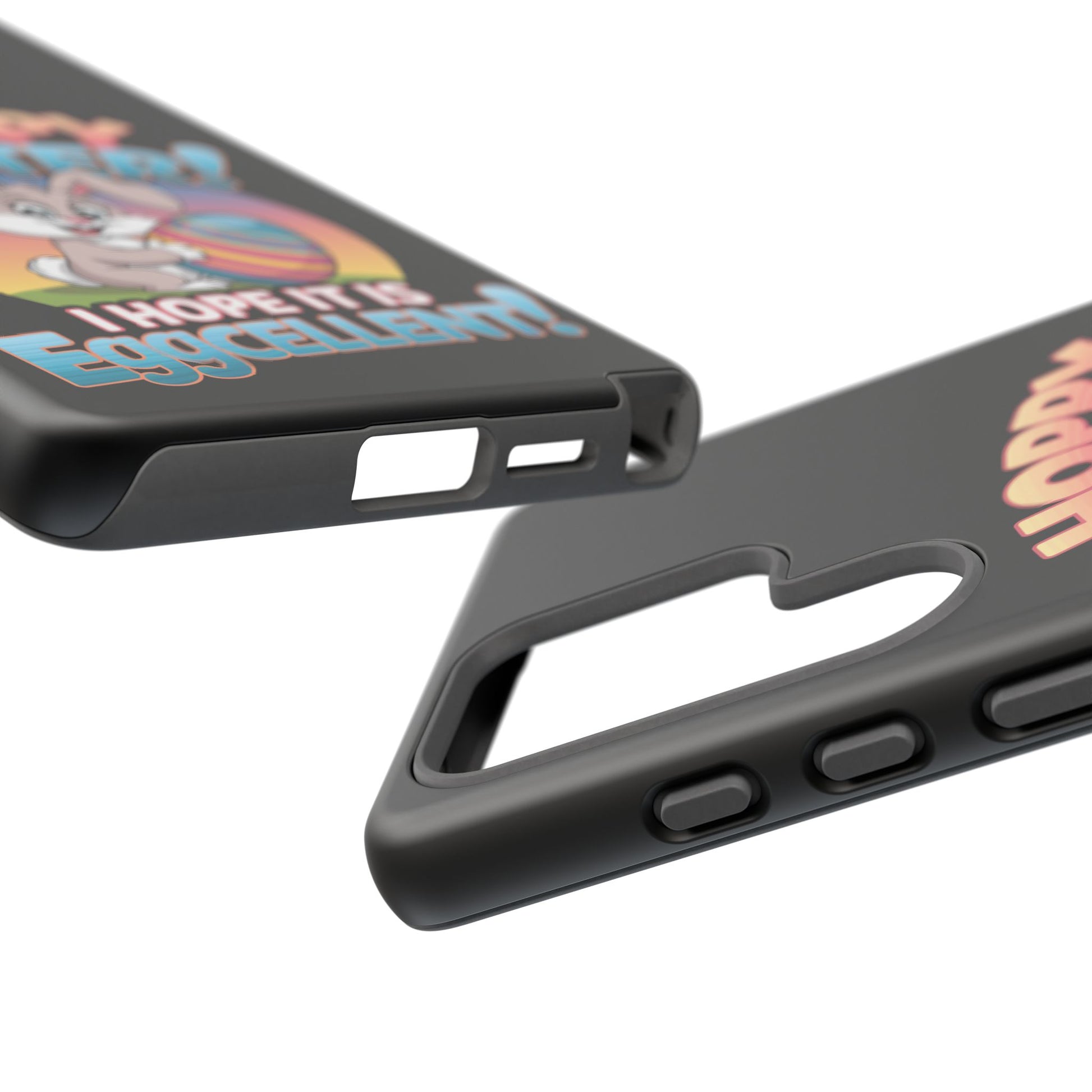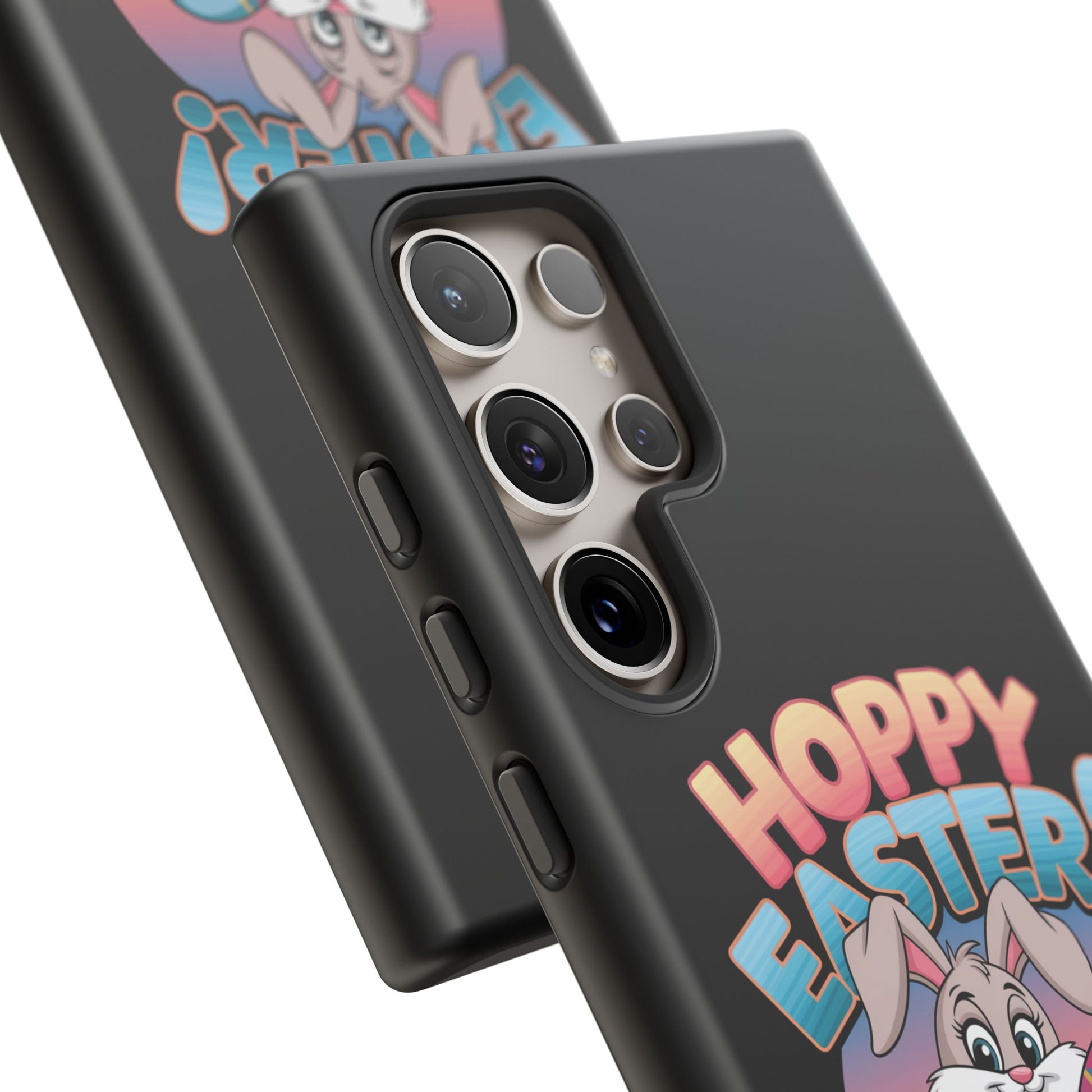 A fun Samsung Phone Case with the Easter Bunny on it that states "Hoppy Easter I Hope it is Eggcellent". This phone case exudes a playful and festive vibe, perfect for Easter celebrations. It is relevant to adults looking for a durable and impact-resistant phone case with a cute Easter design.