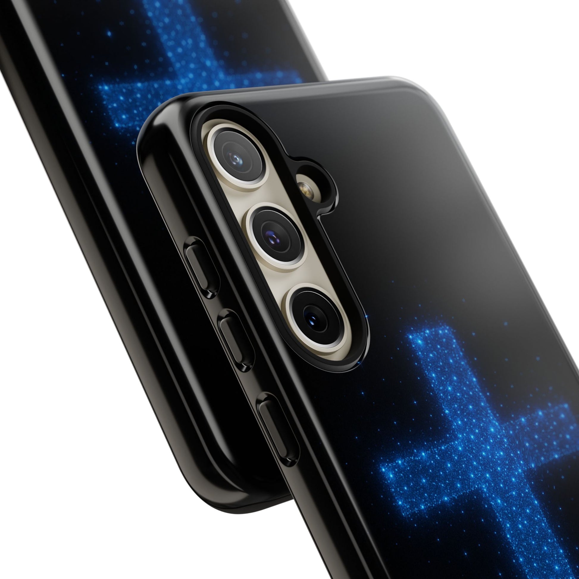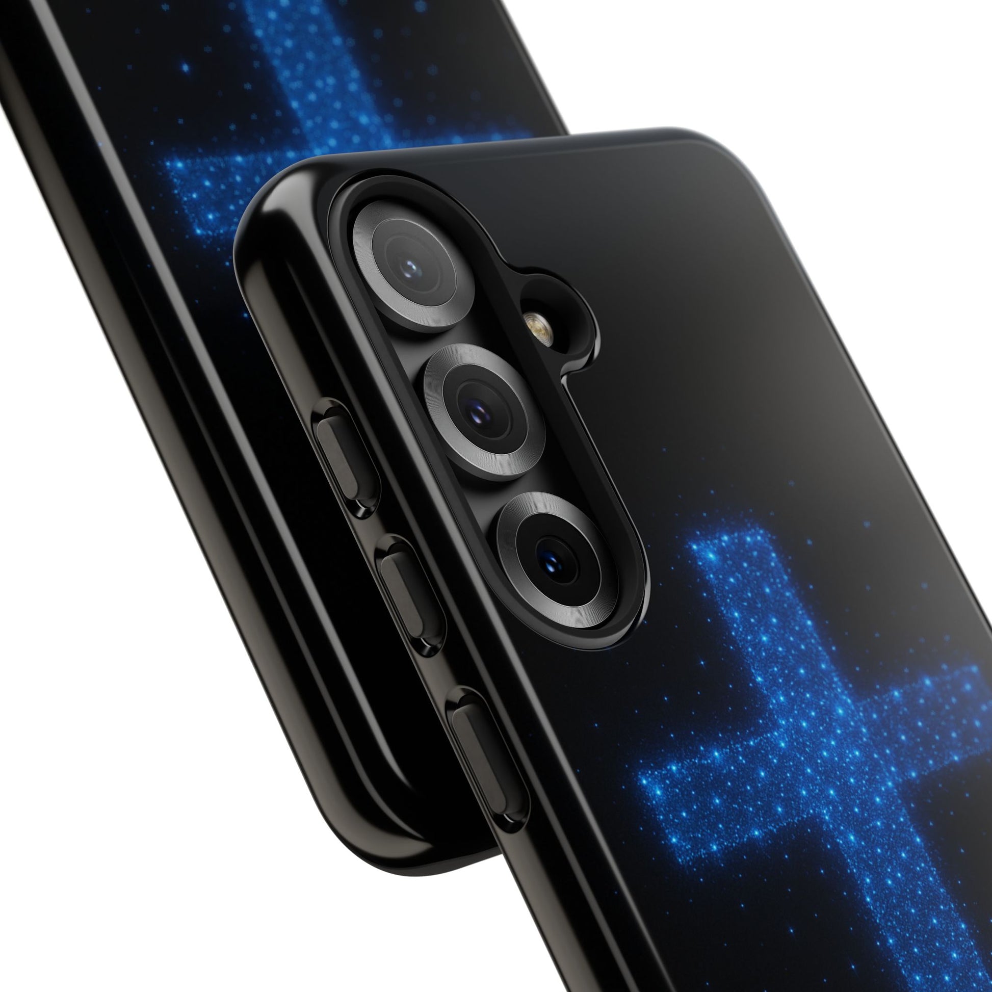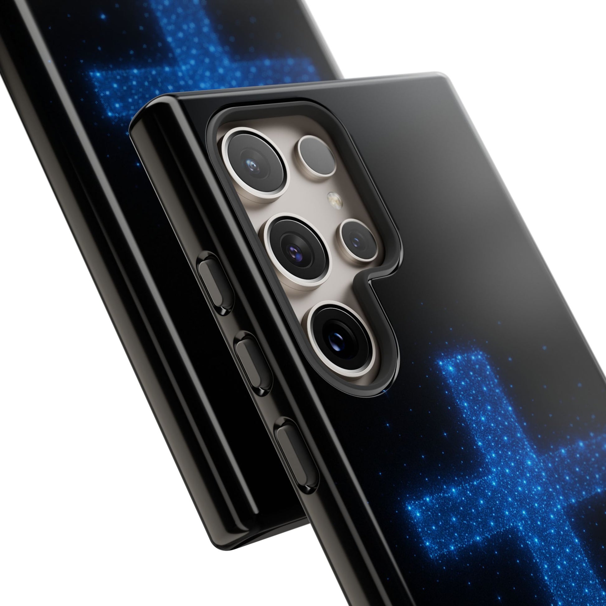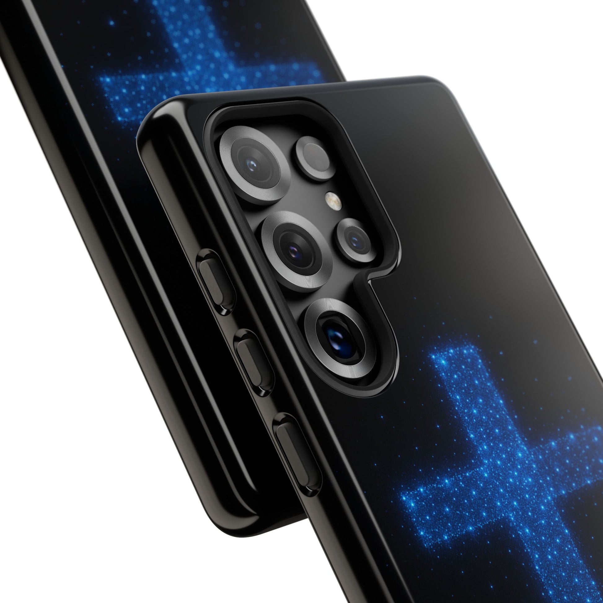 A fun Phone Case with a Bioluminescent Cross design, providing a unique and stylish look. Perfect for adults looking for a durable and impact-resistant case to protect their Samsung phone. Ideal for those who appreciate bioluminescent designs, suitable for everyday use or as a gift for technology enthusiasts.