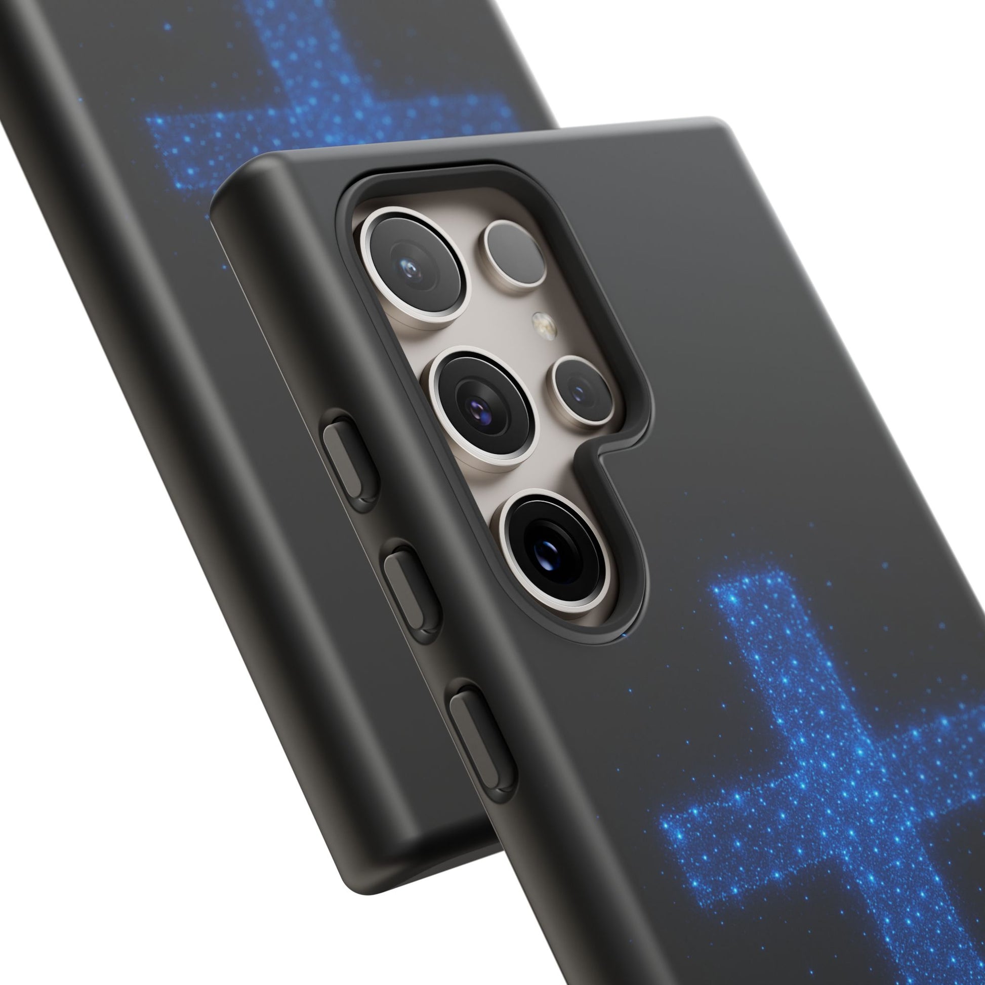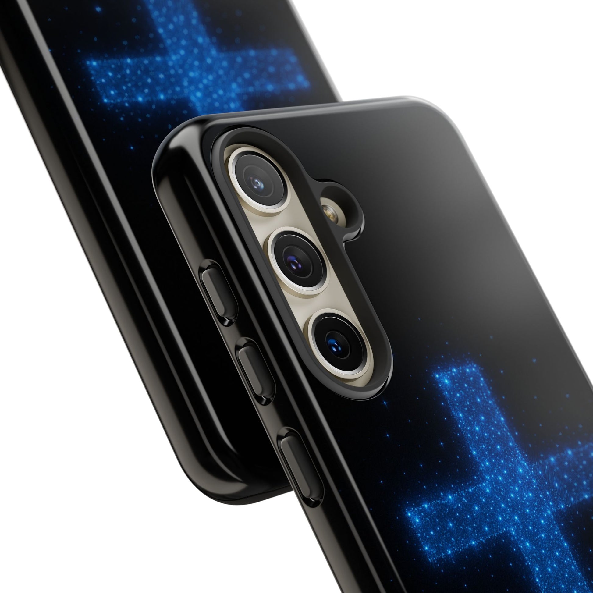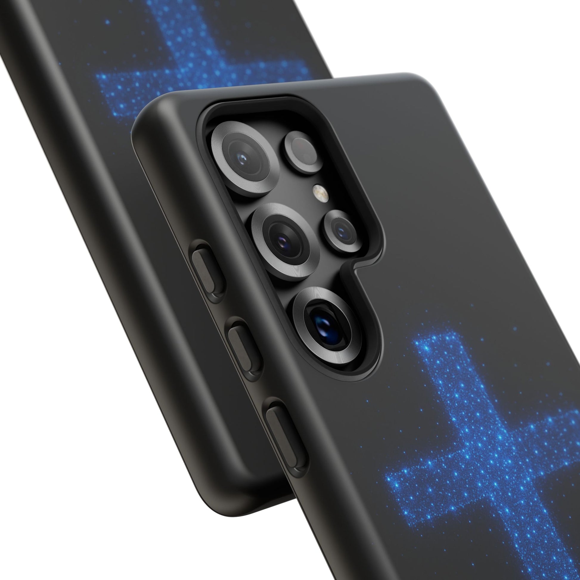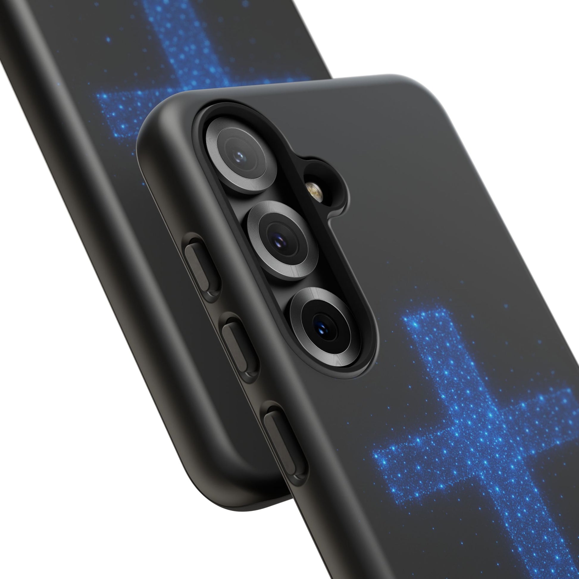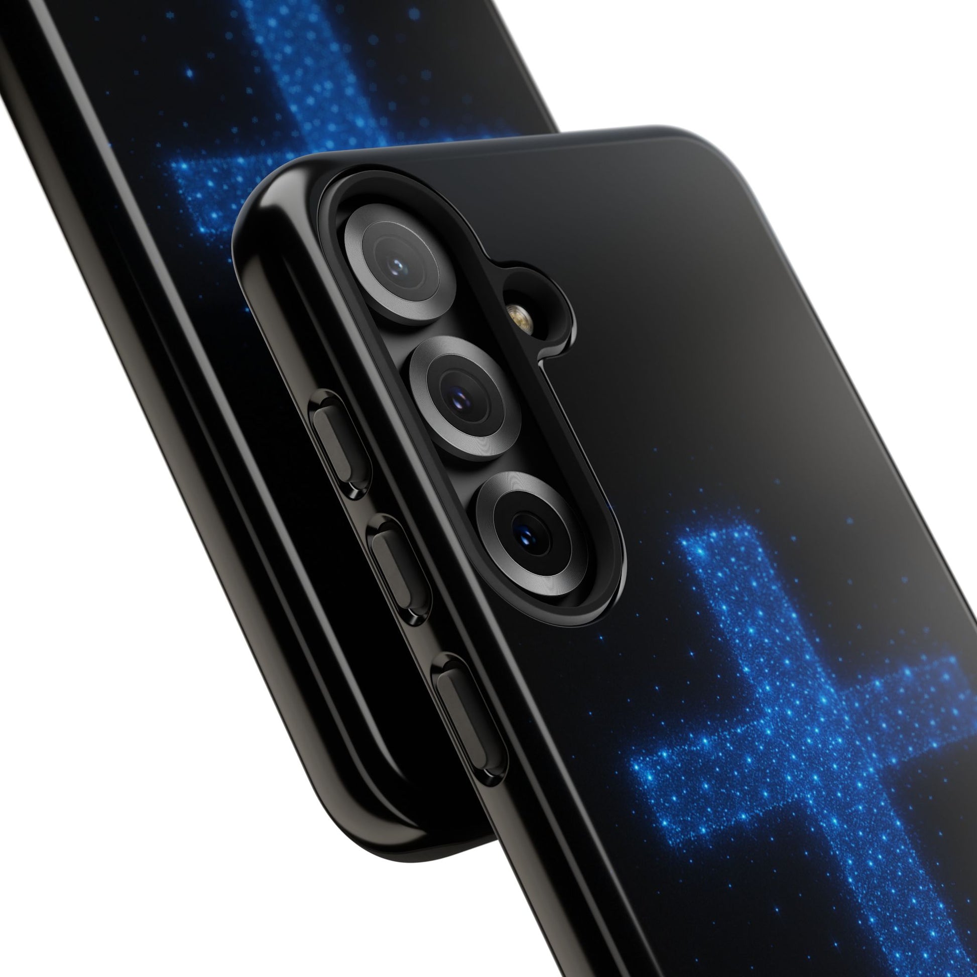 A fun Phone Case with a Bioluminescent Cross design, providing a unique and stylish look. Perfect for adults looking for a durable and impact-resistant case to protect their Samsung phone. Ideal for those who appreciate bioluminescent designs, suitable for everyday use or as a gift for technology enthusiasts.