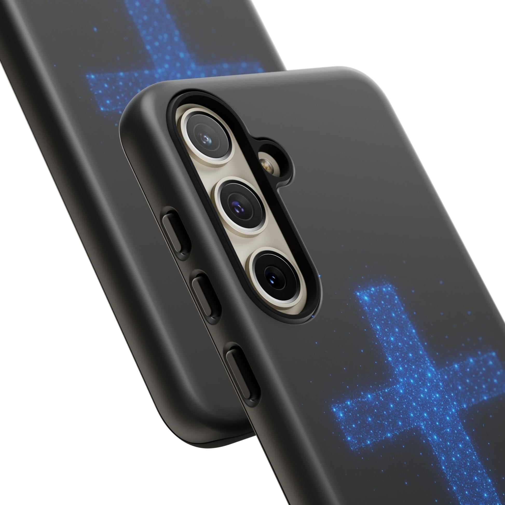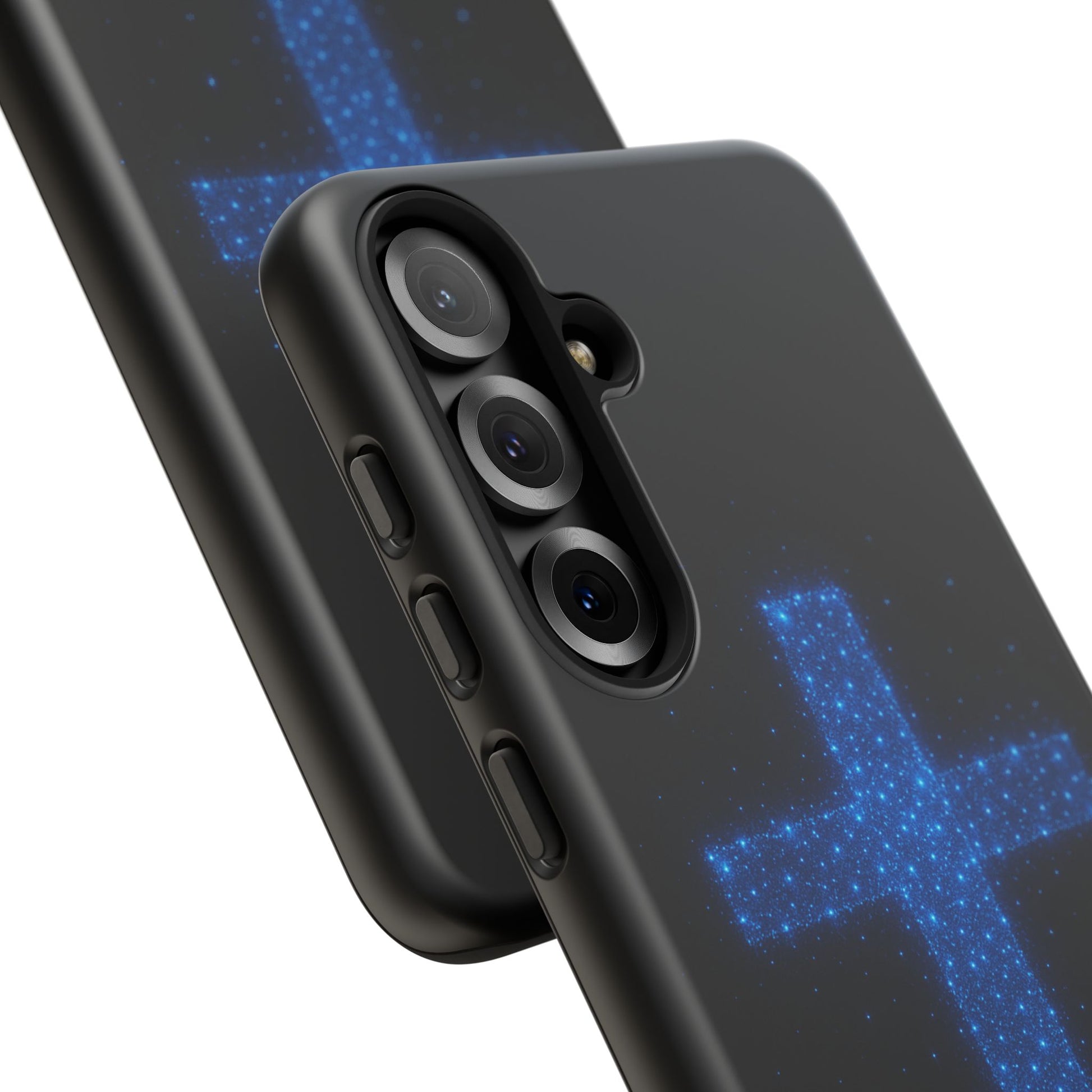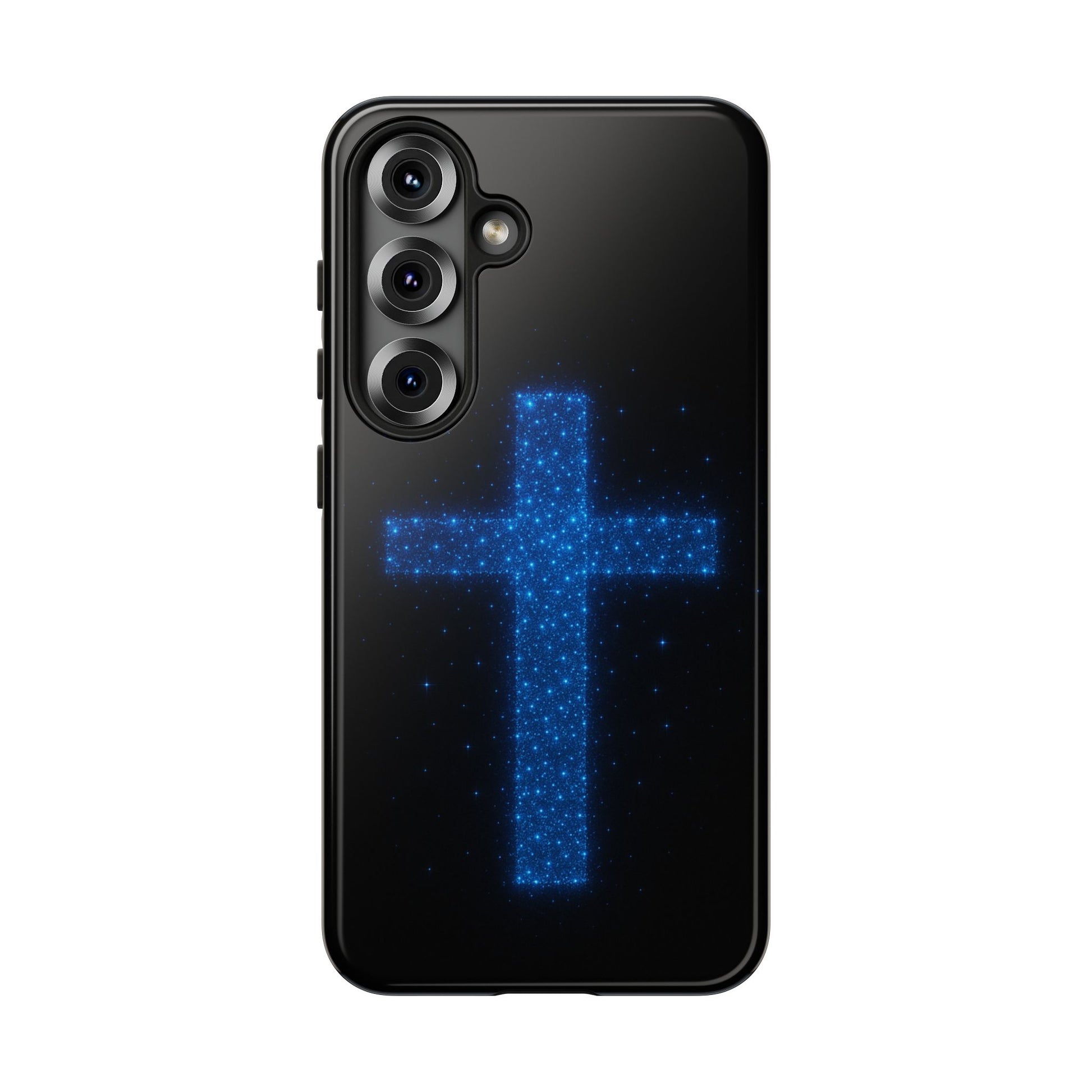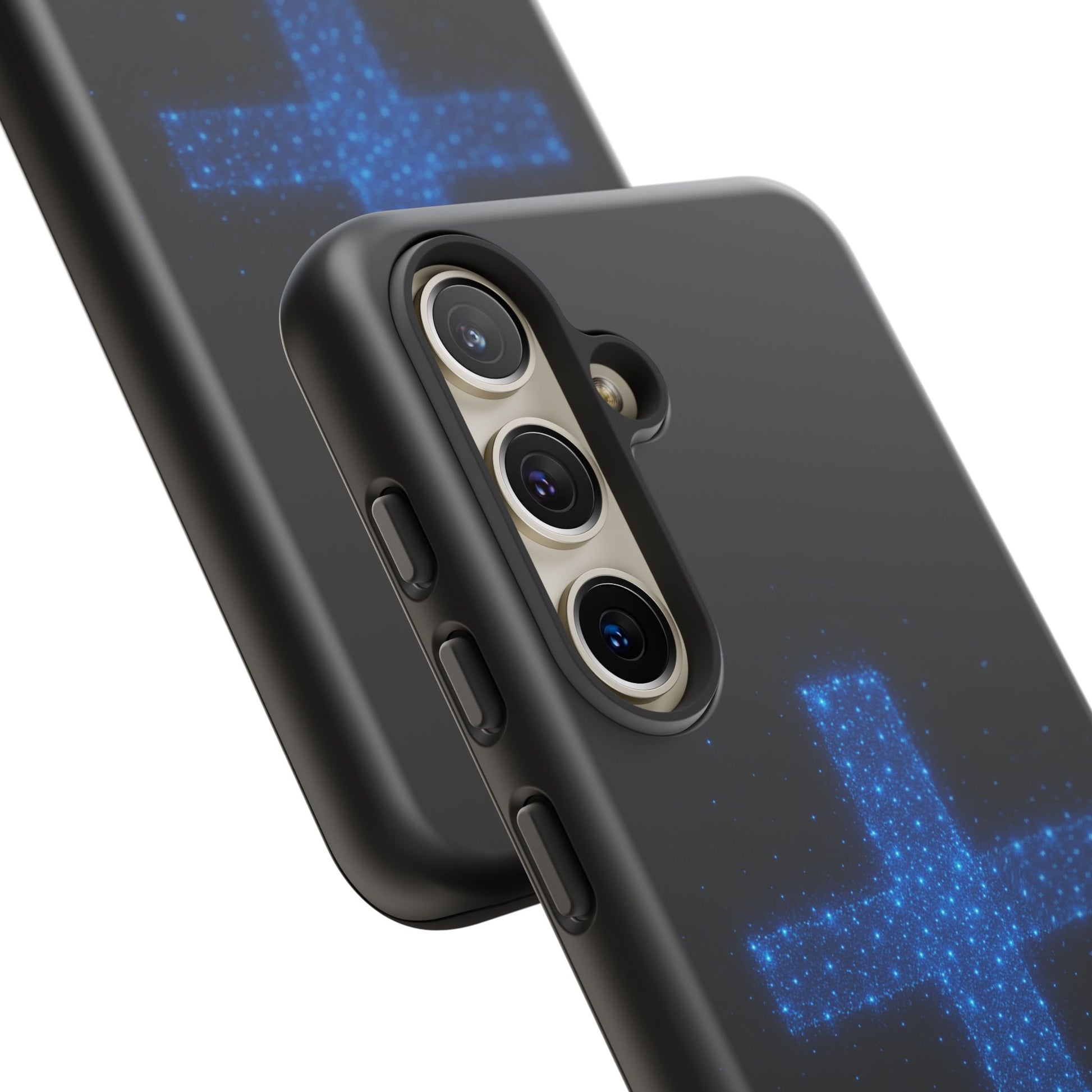A fun Phone Case with a Bioluminescent Cross design, providing a unique and stylish look. Perfect for adults looking for a durable and impact-resistant case to protect their Samsung phone. Ideal for those who appreciate bioluminescent designs, suitable for everyday use or as a gift for technology enthusiasts.