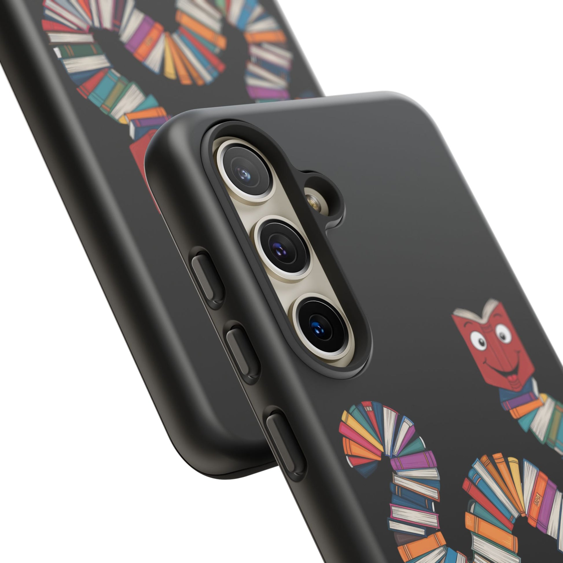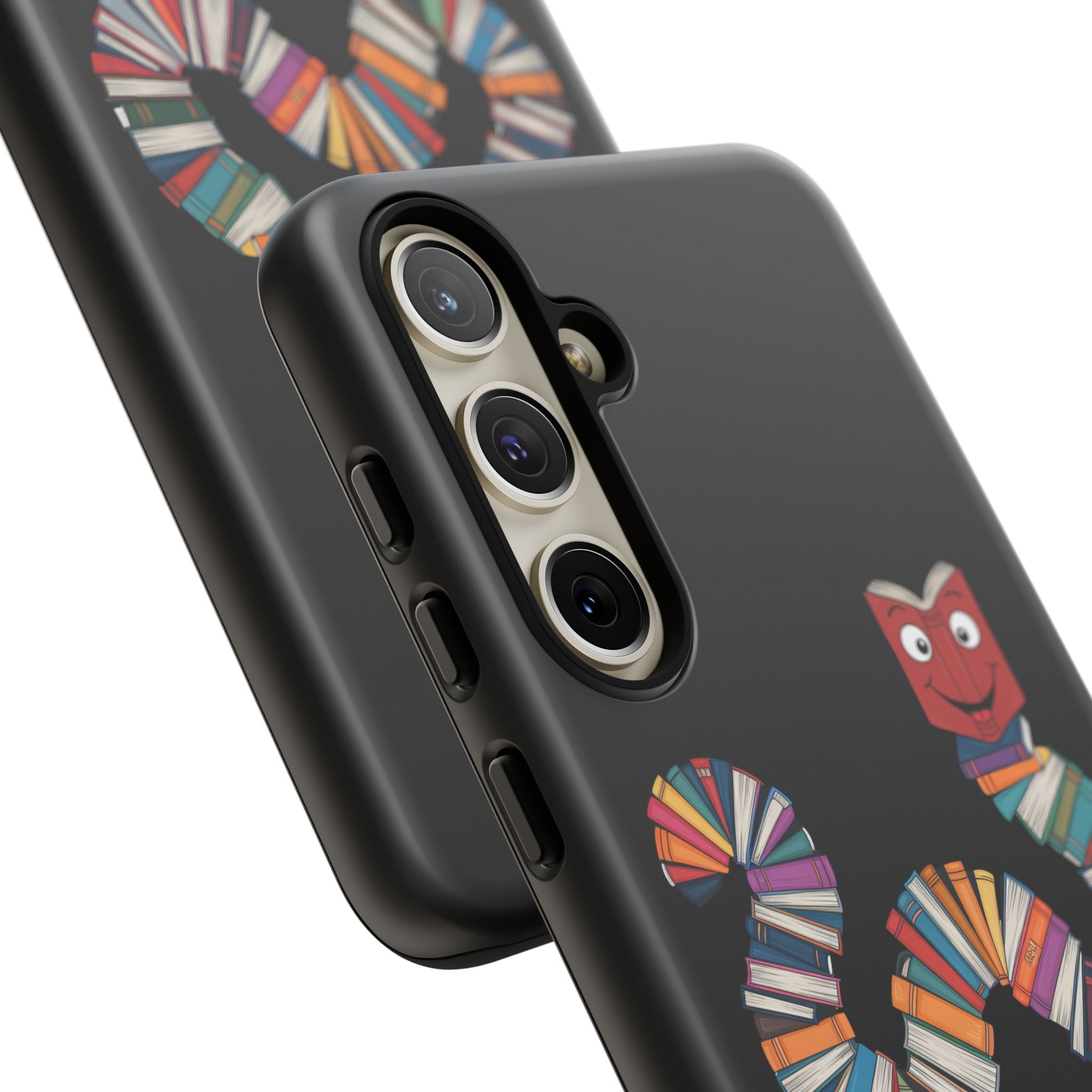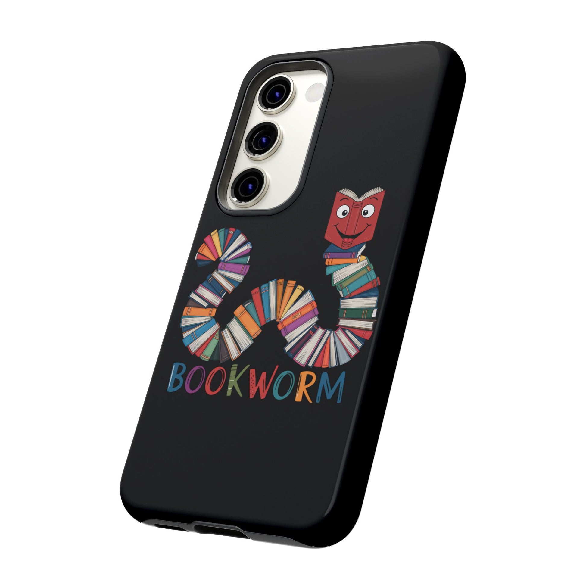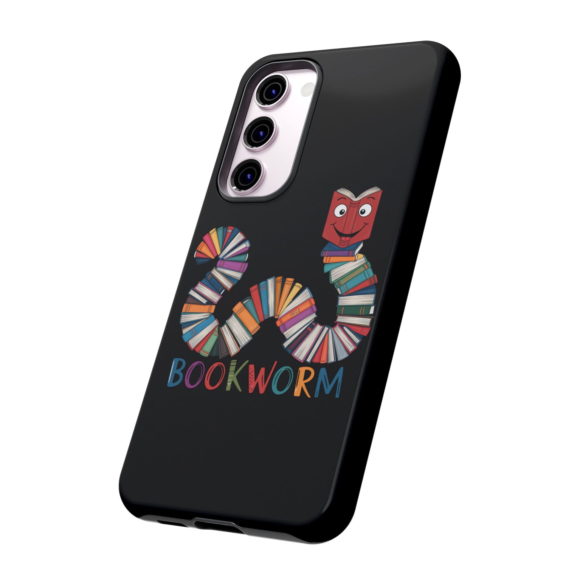 A fun Samsung Galaxy phone case featuring a worm made out of books that says 'Bookworm'. This durable and impact-resistant case offers excellent shock absorption and protection against drops and tears. Perfect for adults who love books and reading, this phone case is a great gift for book lovers and can be a fun accessory for any bookish occasion.