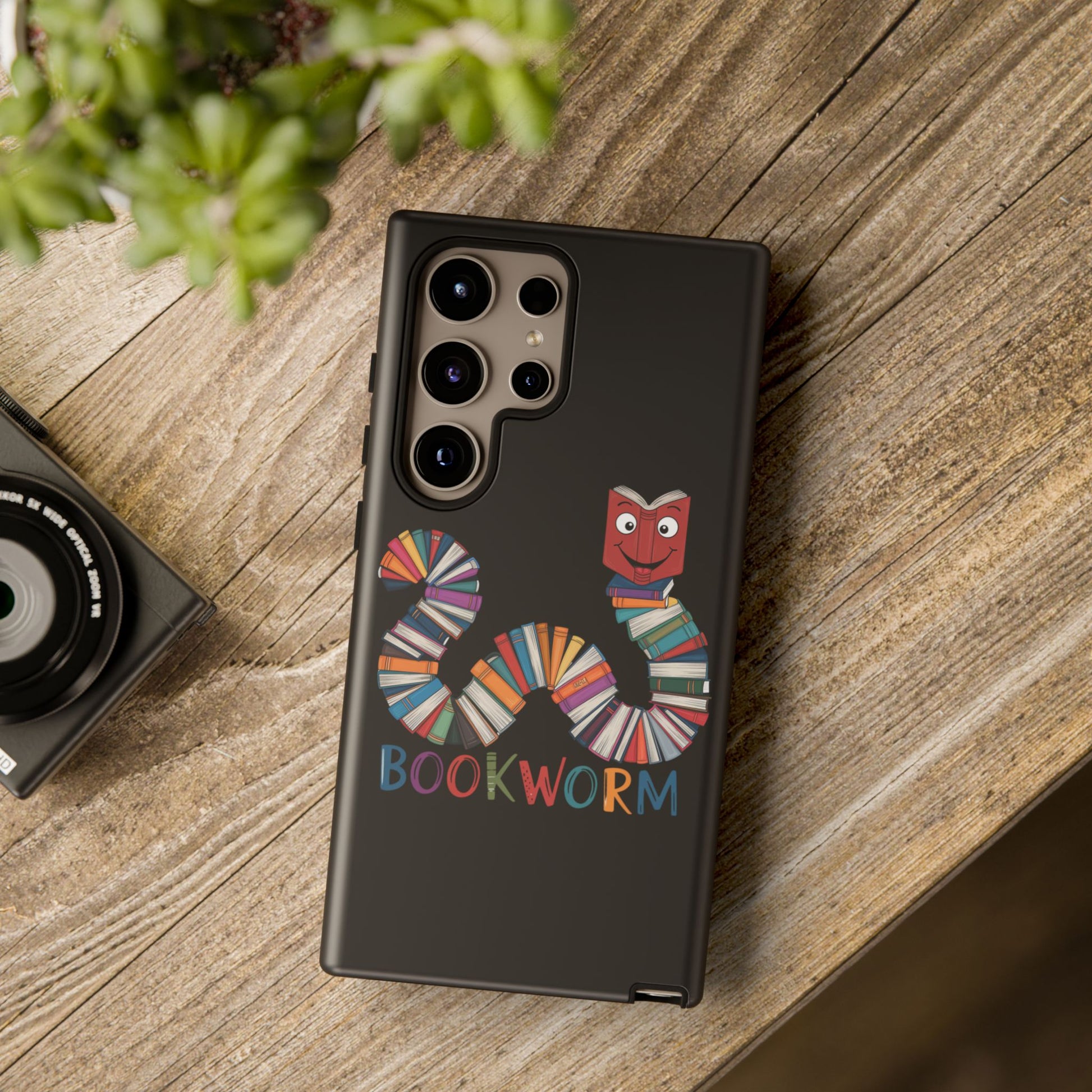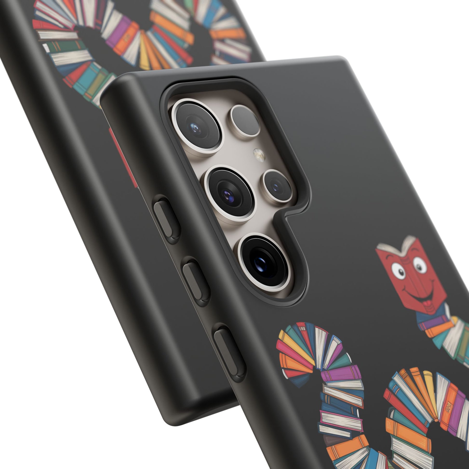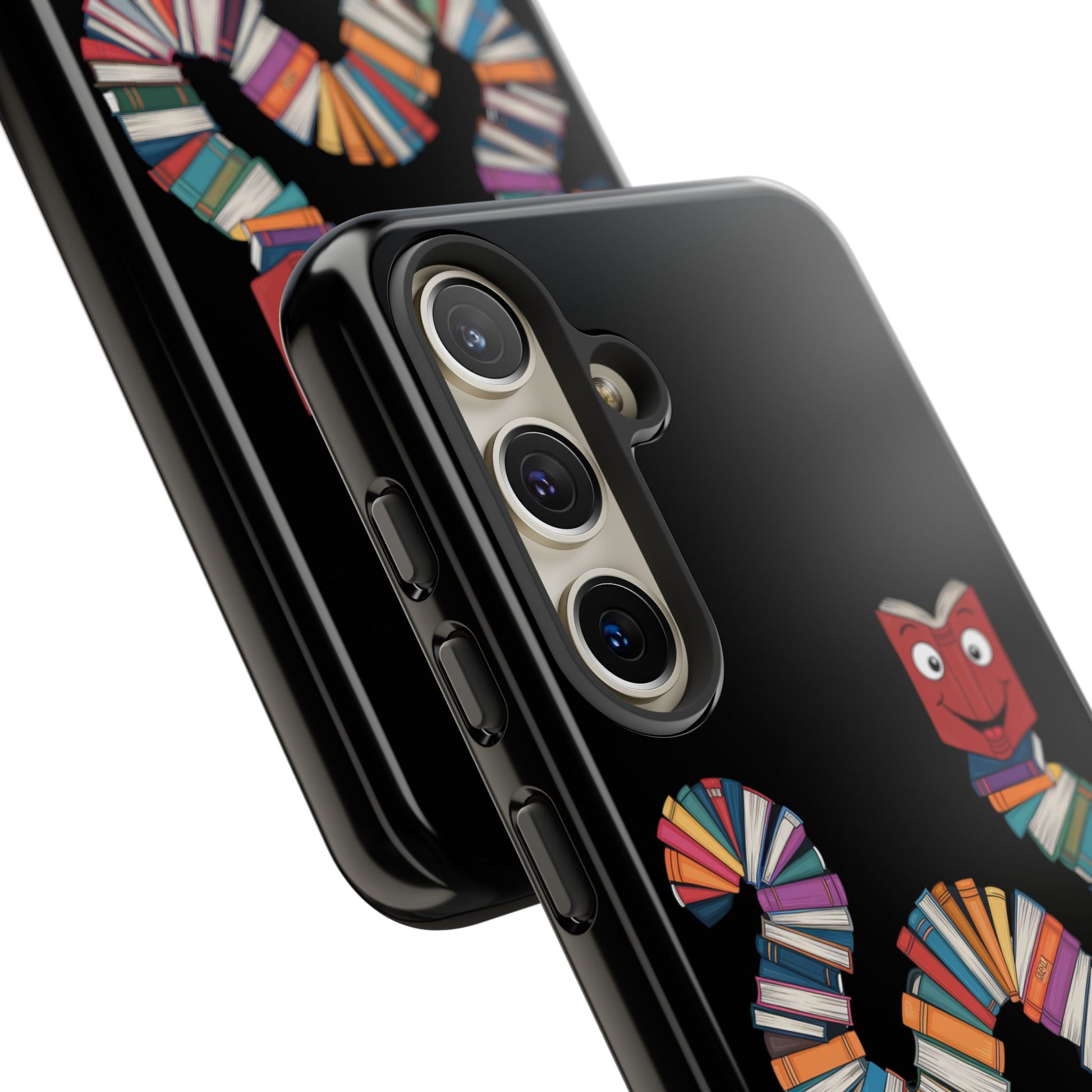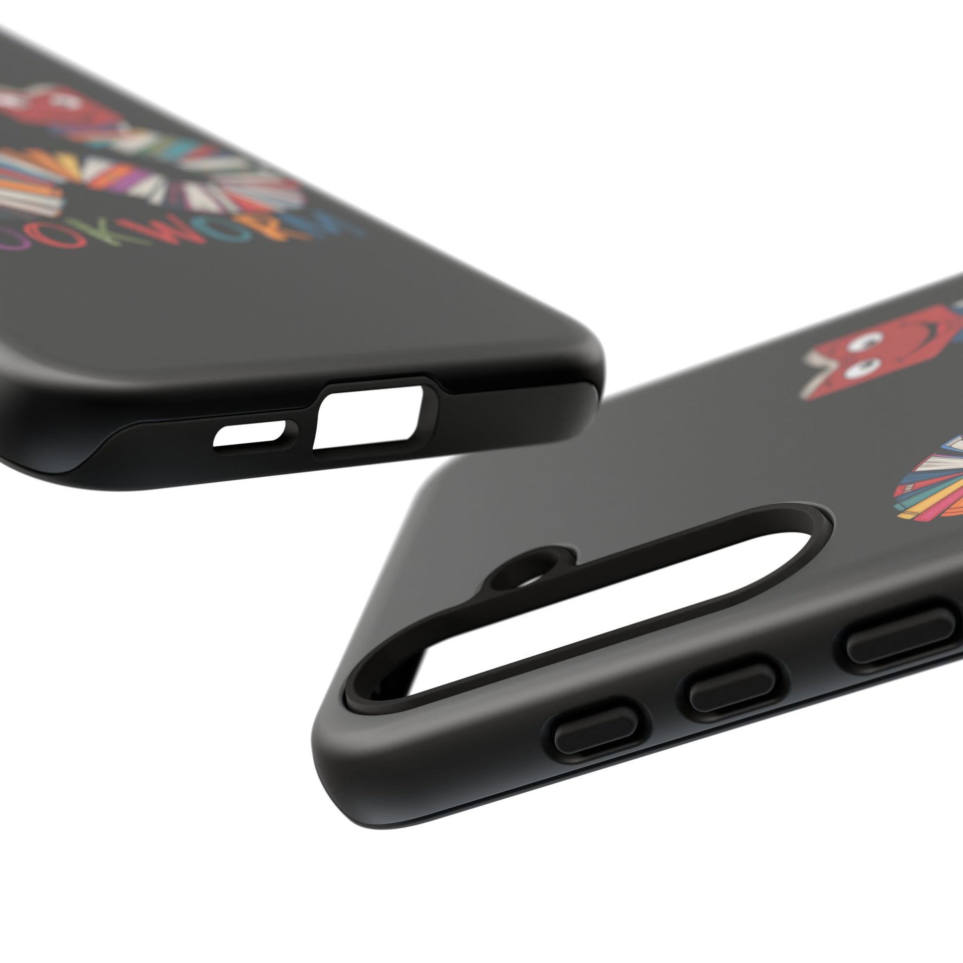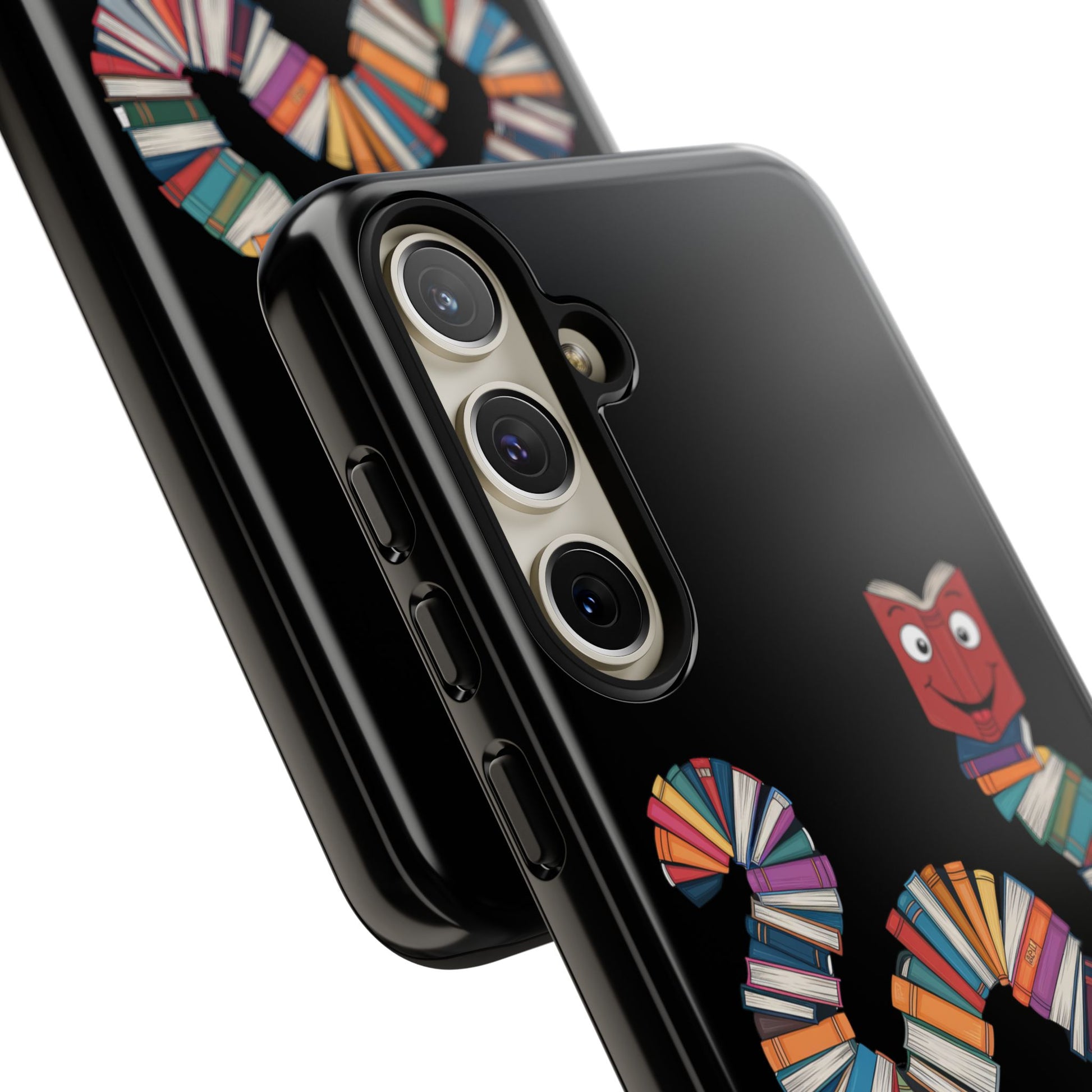 A fun Samsung Galaxy phone case featuring a worm made out of books that says 'Bookworm'. This durable and impact-resistant case offers excellent shock absorption and protection against drops and tears. Perfect for adults who love books and reading, this phone case is a great gift for book lovers and can be a fun accessory for any bookish occasion.