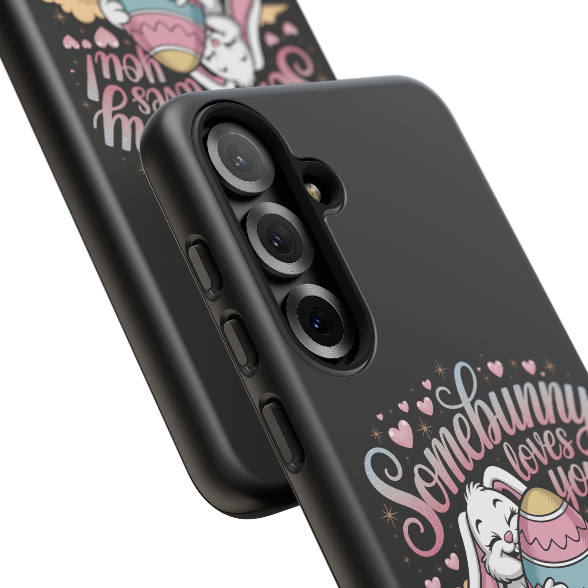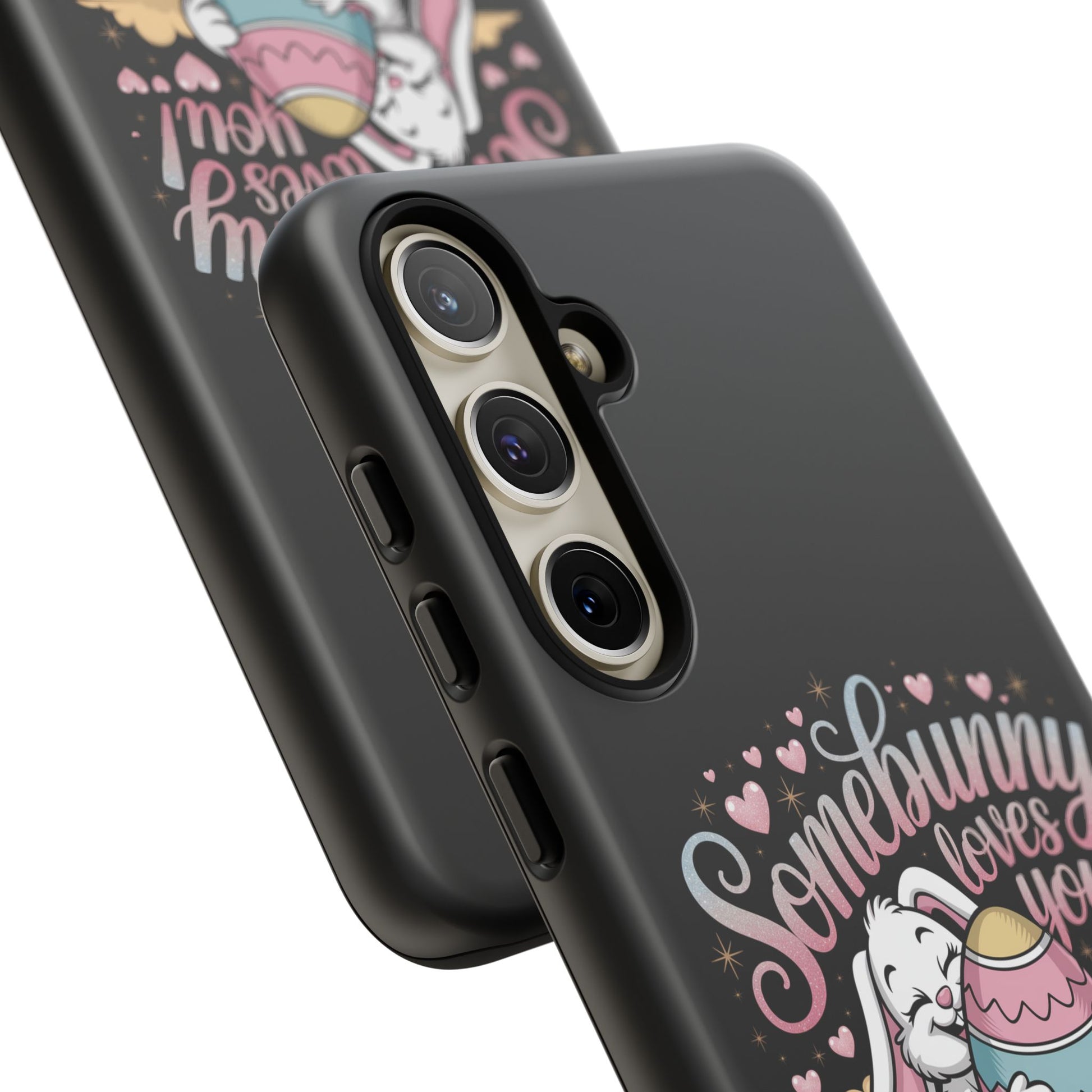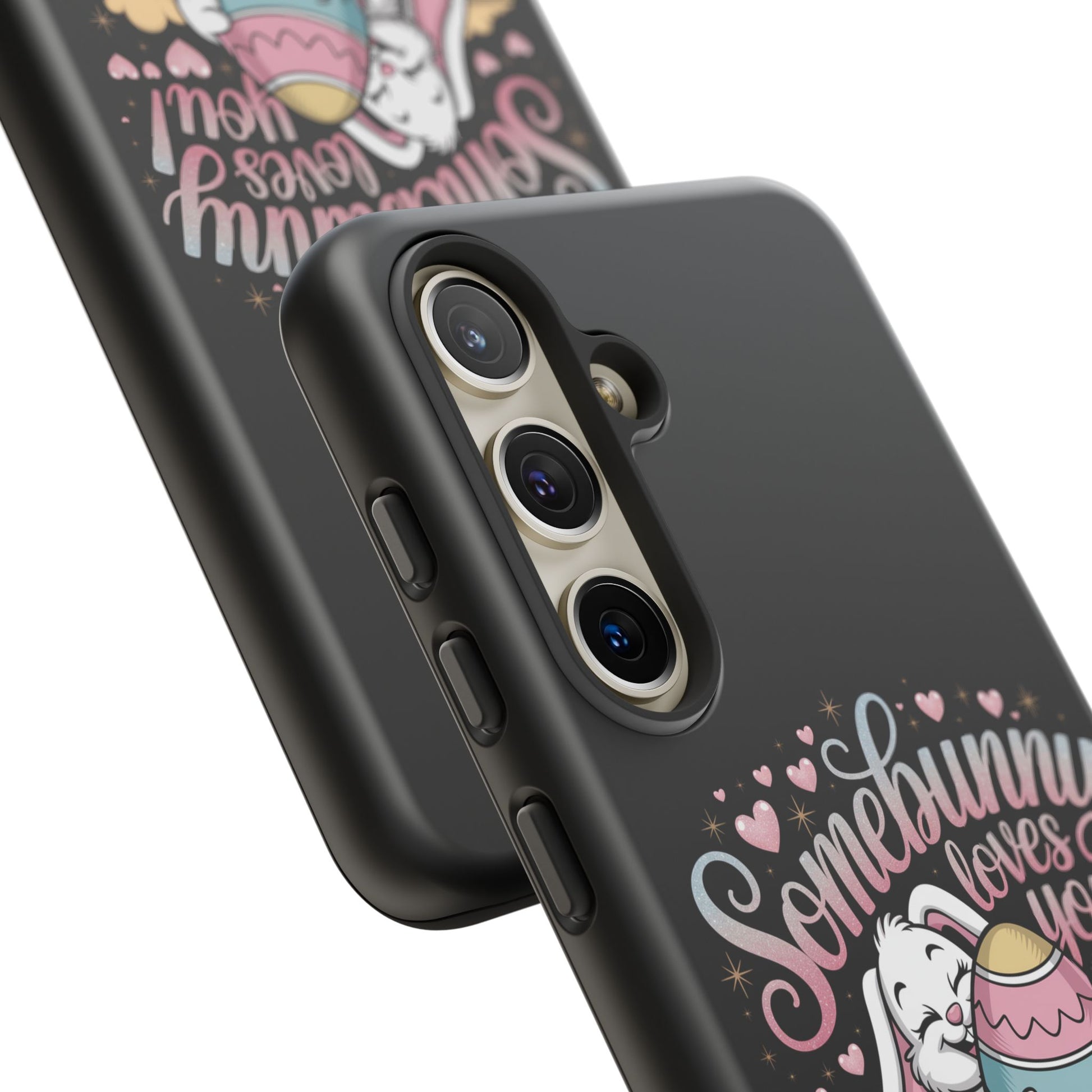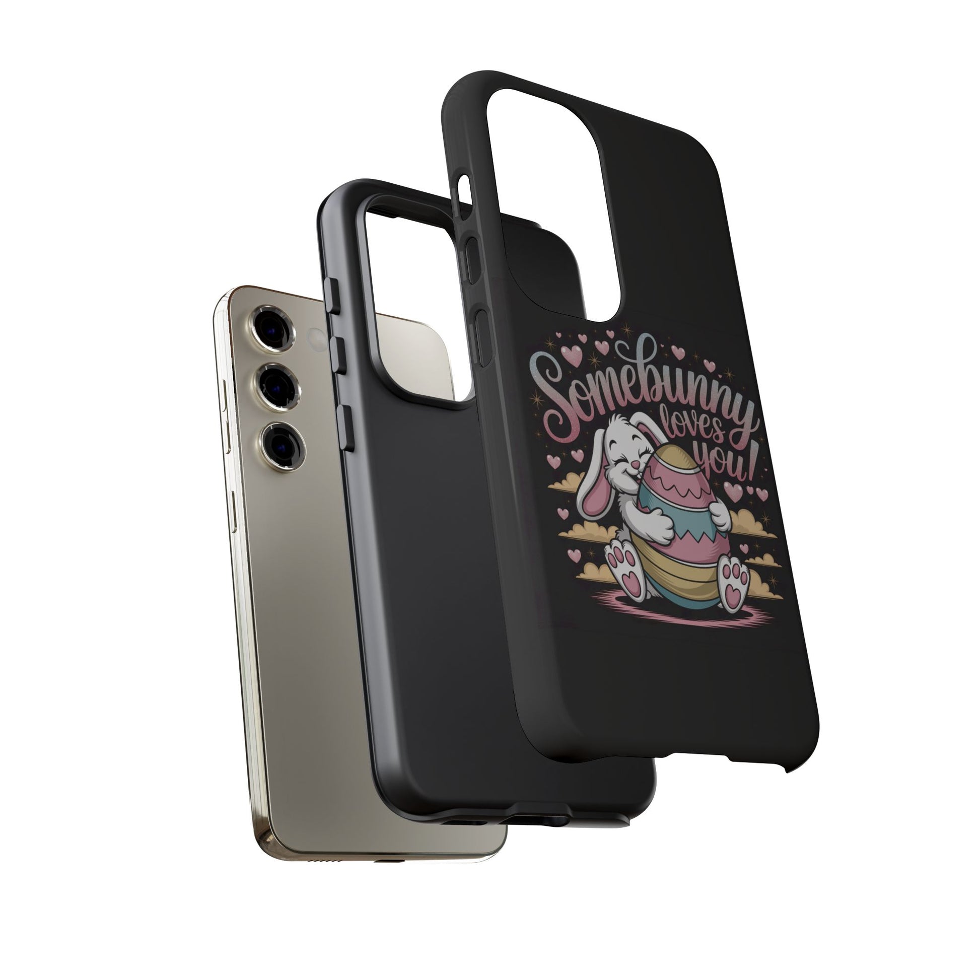 A fun Samsung Galaxy Phone Case with the Easter Bunny on it that states "Somebunny Loves You". This cute and durable phone case is perfect for adults looking to protect their phone while adding a touch of Easter spirit. Ideal for gifting during Easter celebrations.