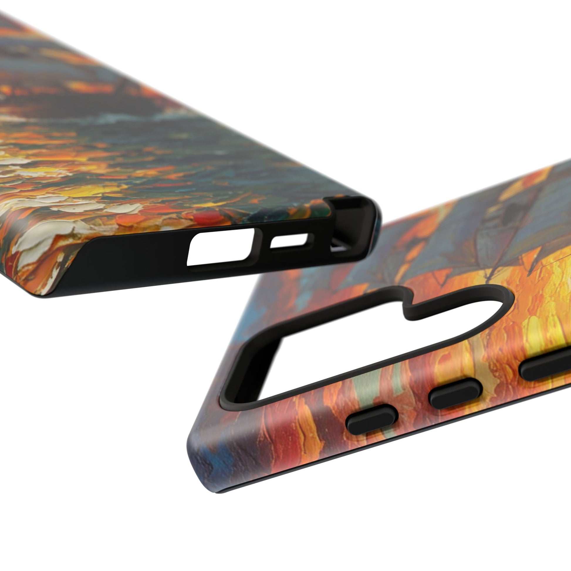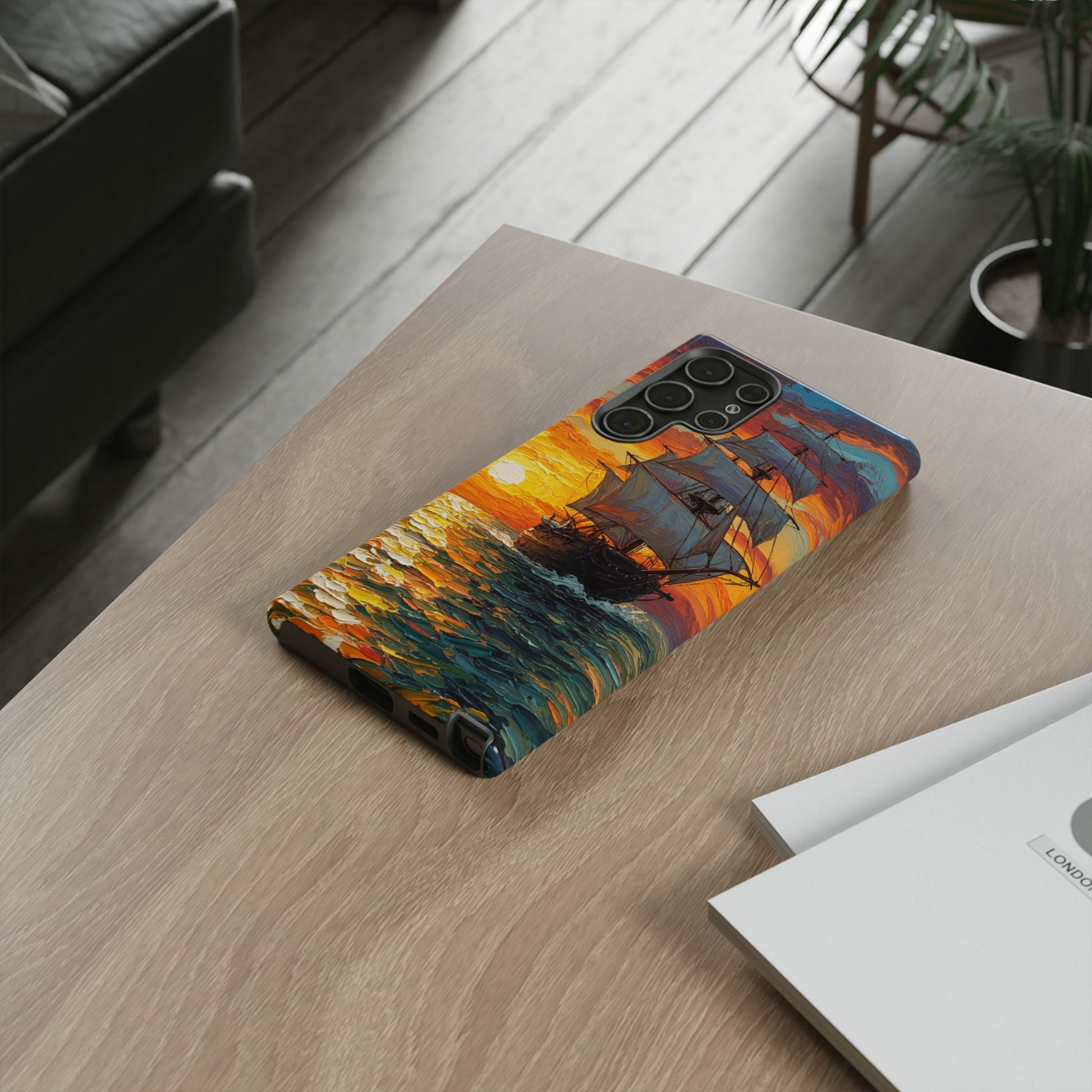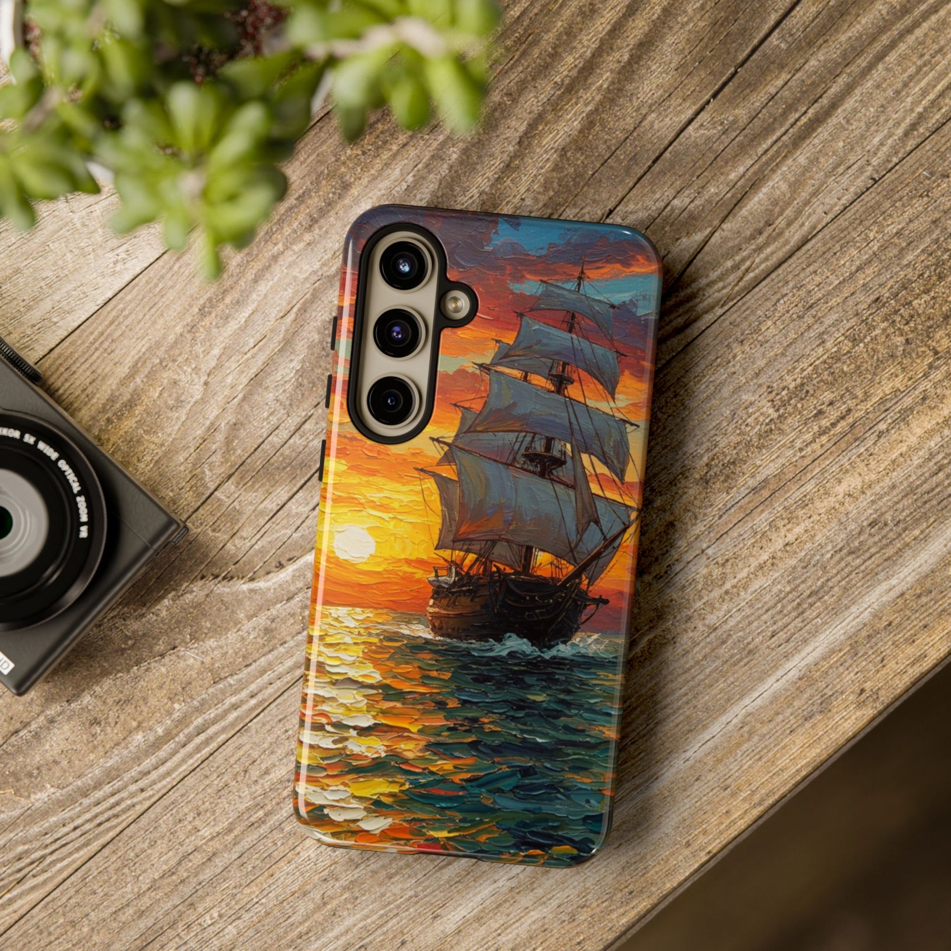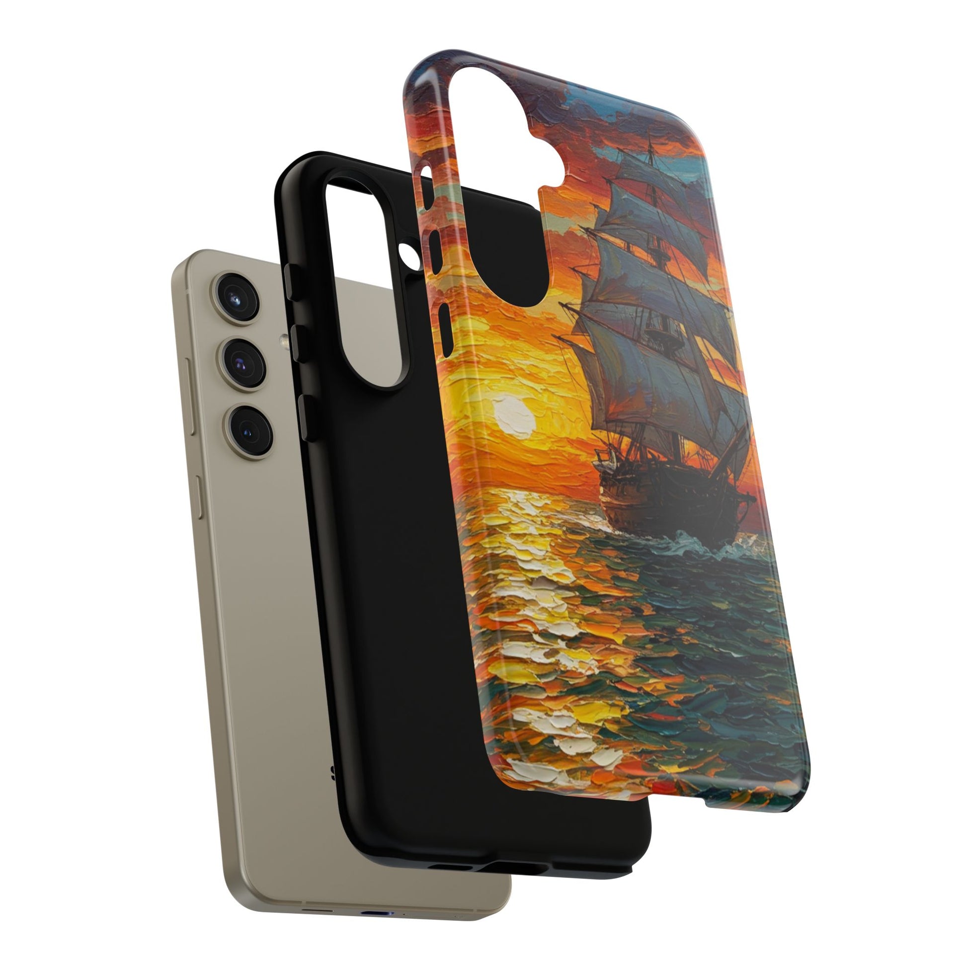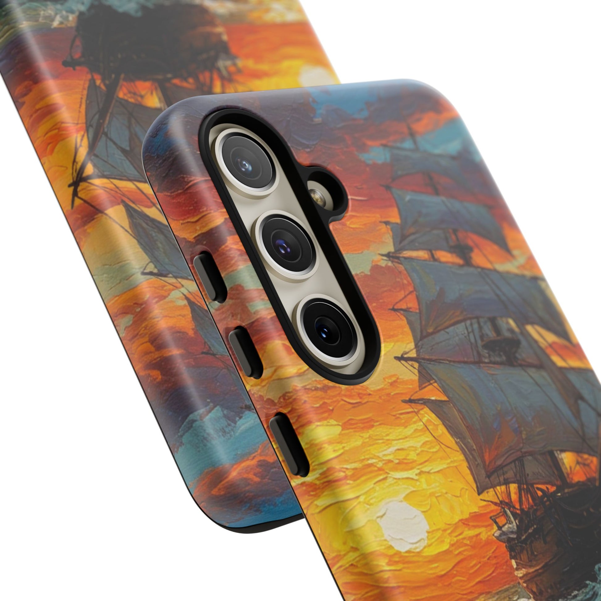 A fun Samsung Galaxy Case featuring a ship sailing at sunset, perfect for those who love nautical themes. This durable case offers excellent protection against drops and tears, making it ideal for adults looking to keep their phone safe while showcasing their personality. Great for summer vibes, coastal enthusiasts, and beach lovers. Perfect for gifting on birthdays, holidays, or as a treat for yourself.
