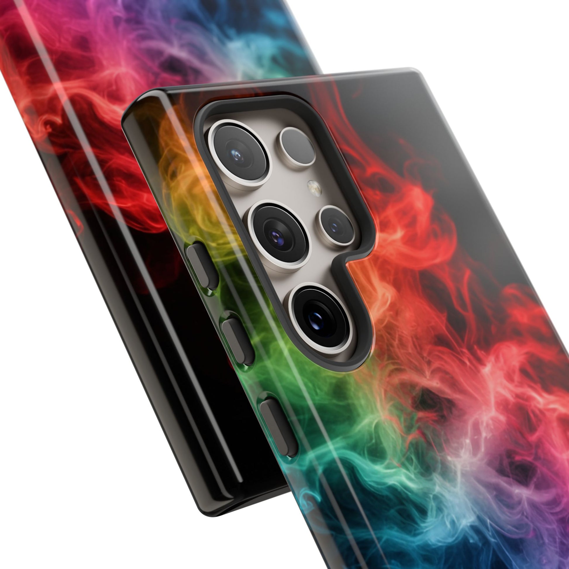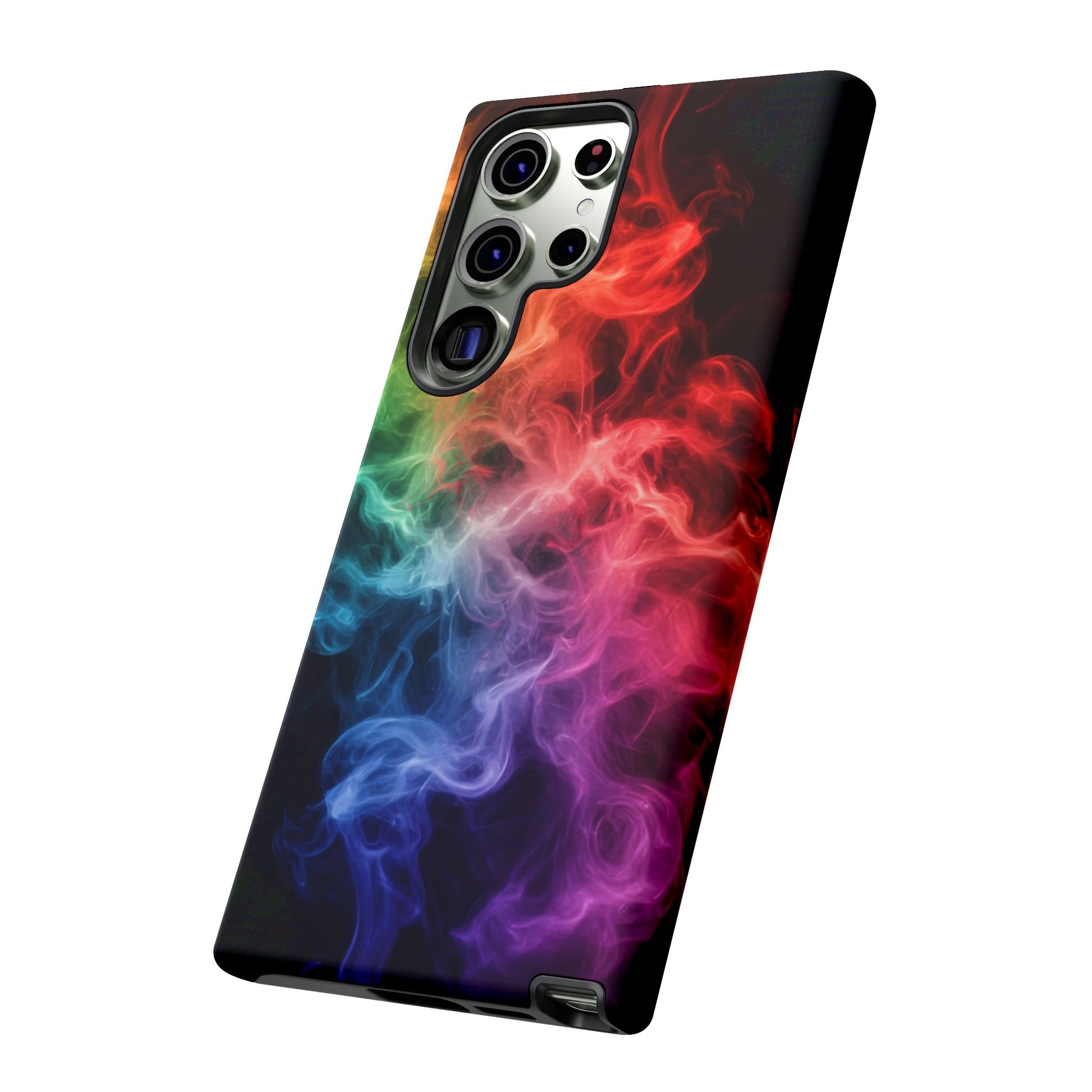 A fun Samsung Galaxy Phone Case with colorful streaks of smoke running across it. This phone case gives off a playful and vibrant vibe, perfect for adding a pop of color to your everyday life. Ideal for adults who want to protect their phone in style. Relevant for birthdays, holidays, and everyday use.