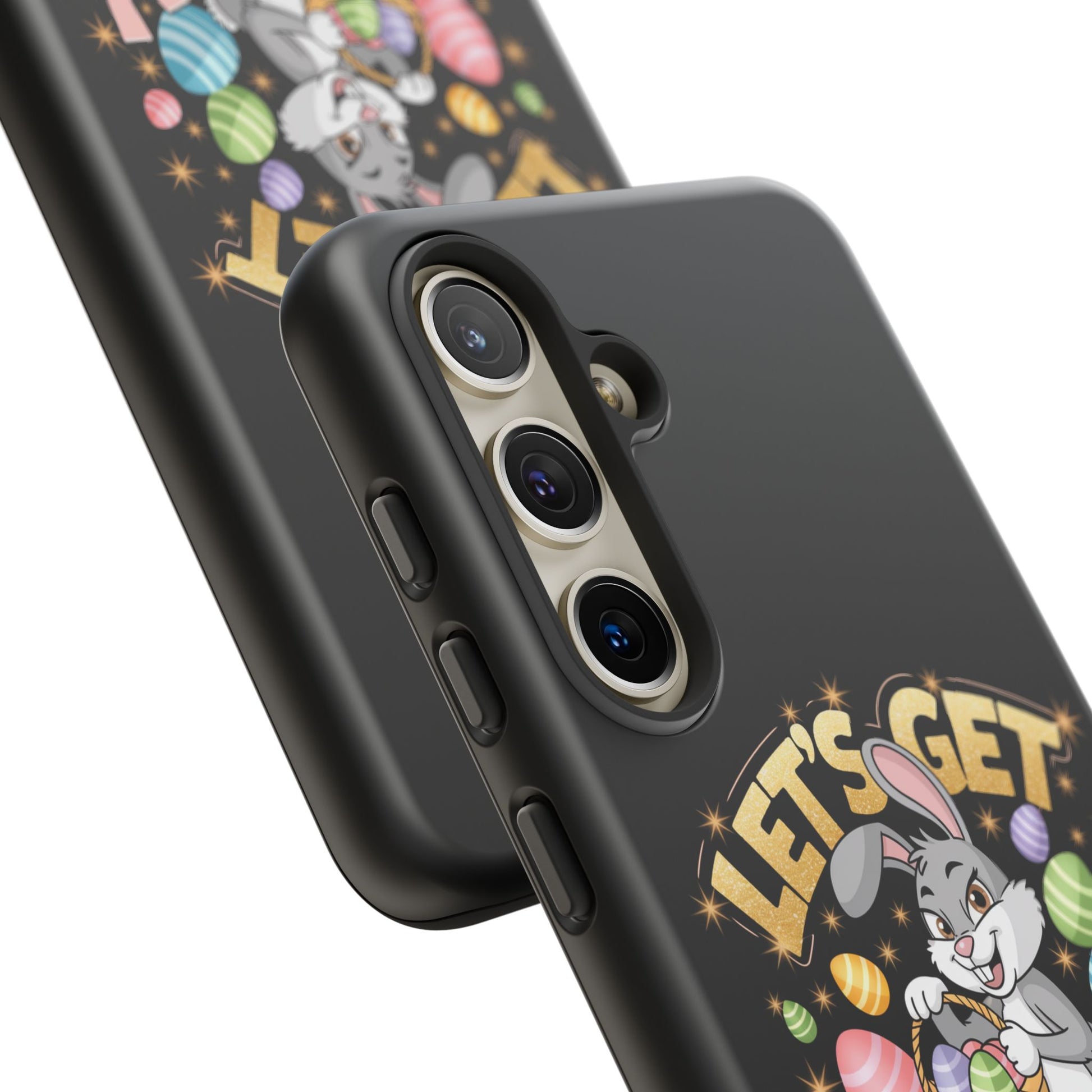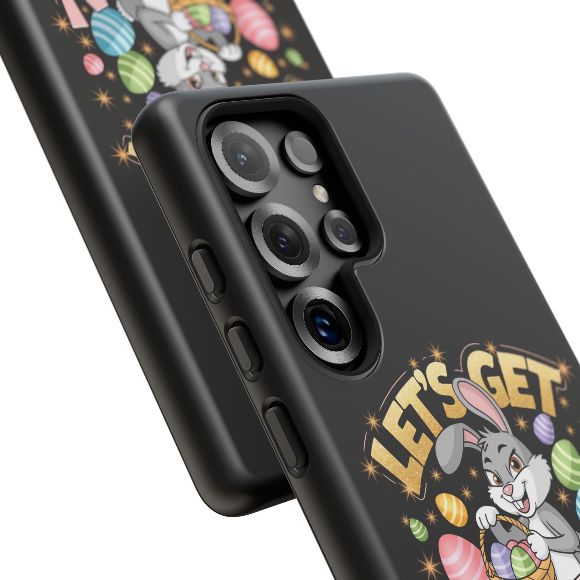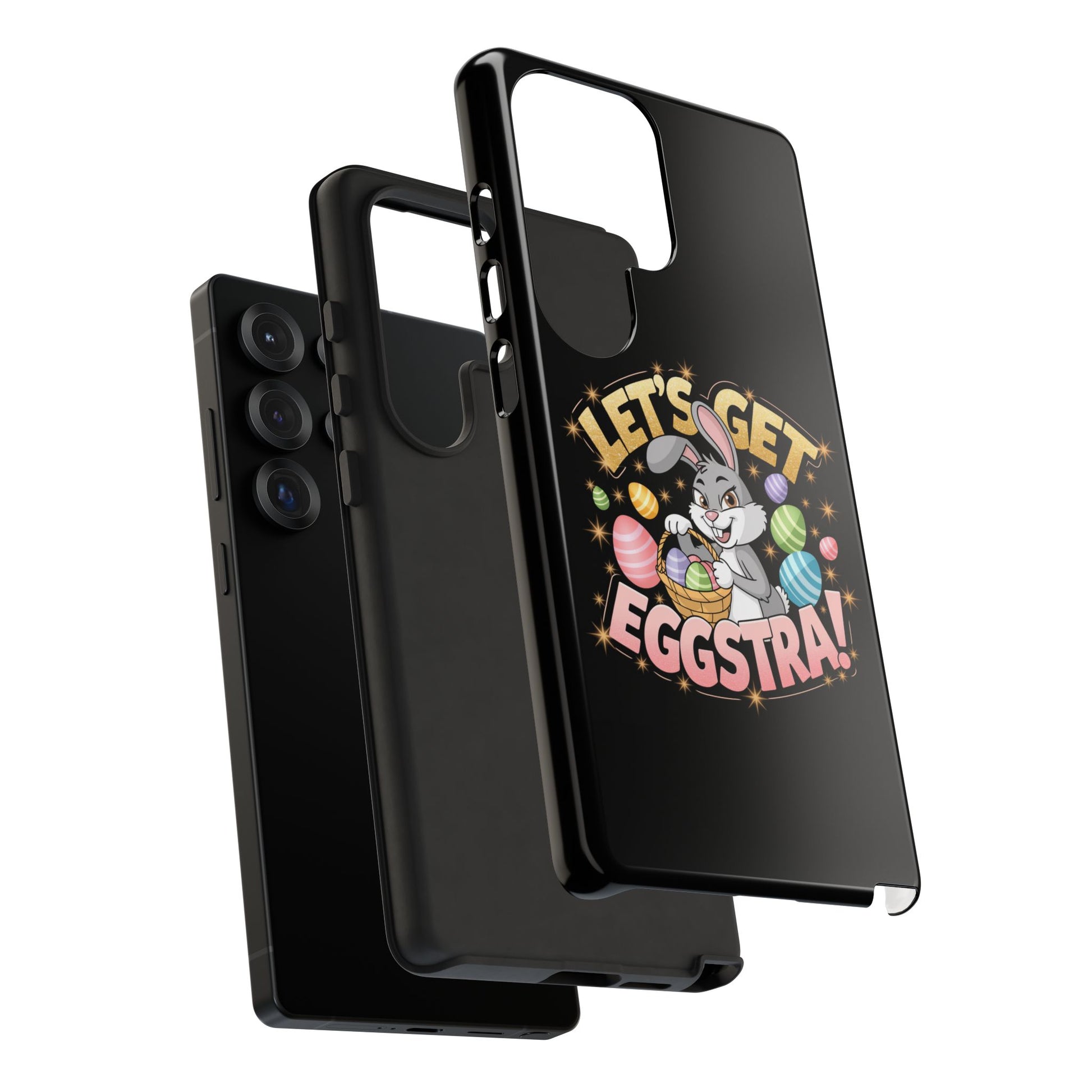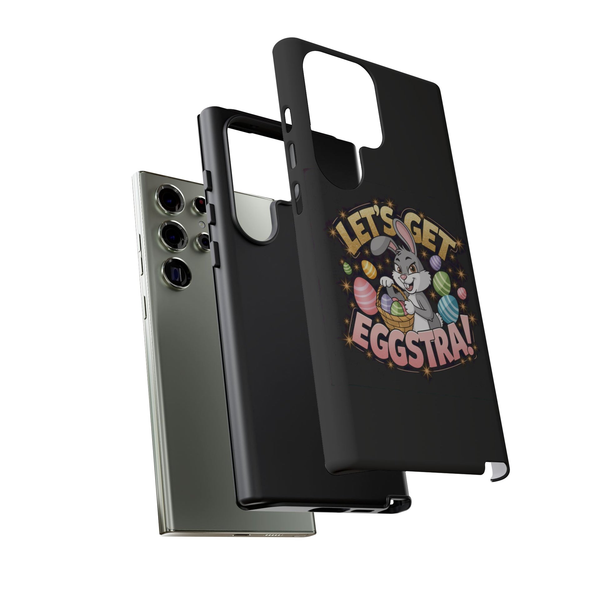 A fun Samsung Phone Case with the Easter Bunny on it that states 'Let's Get Eggstra'. This phone case exudes a playful and festive vibe, perfect for Easter celebrations. It is relevant to adults looking to add a touch of holiday spirit to their phone accessories.