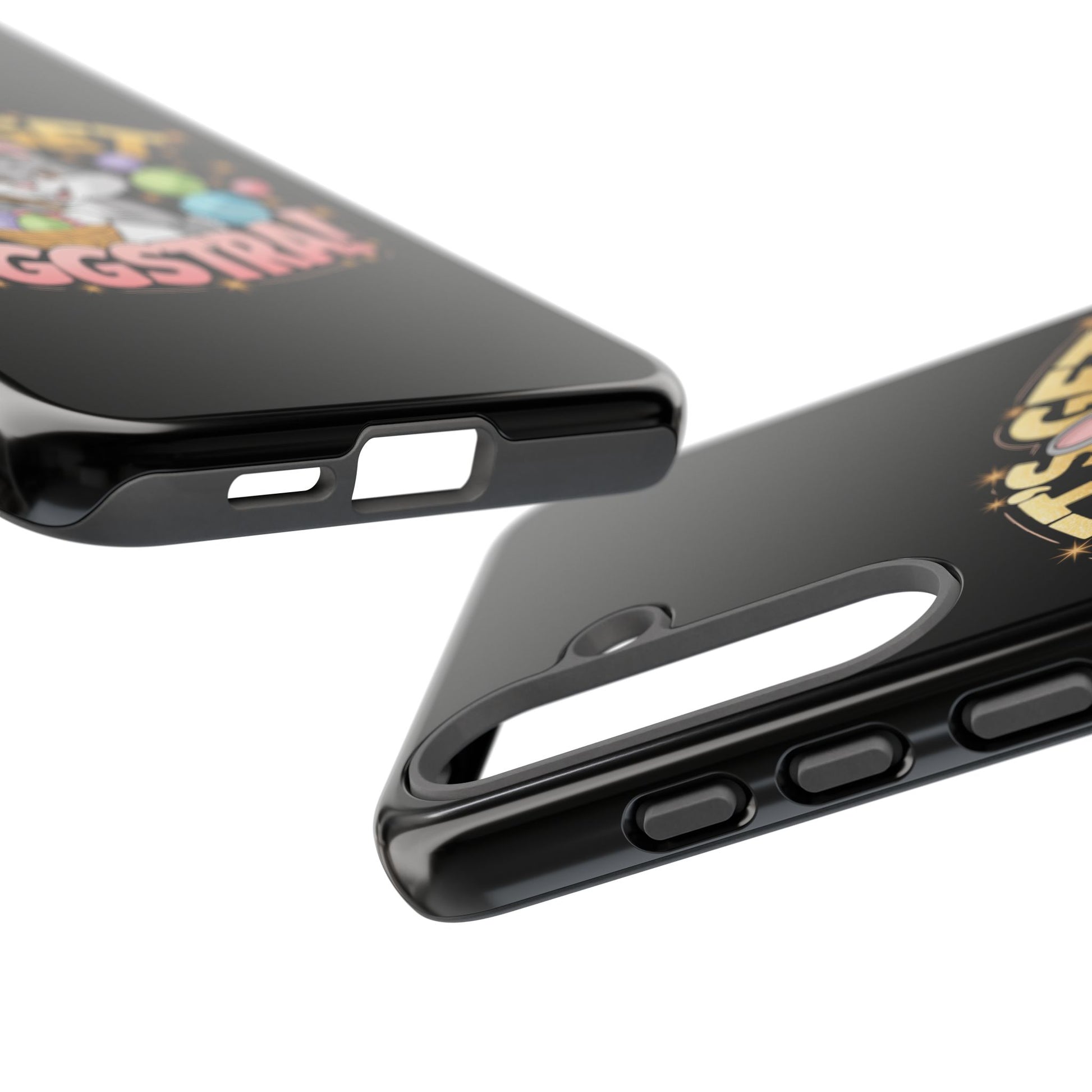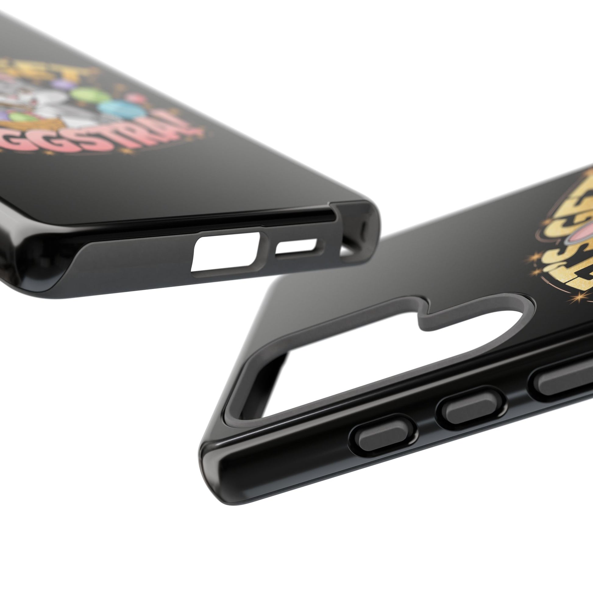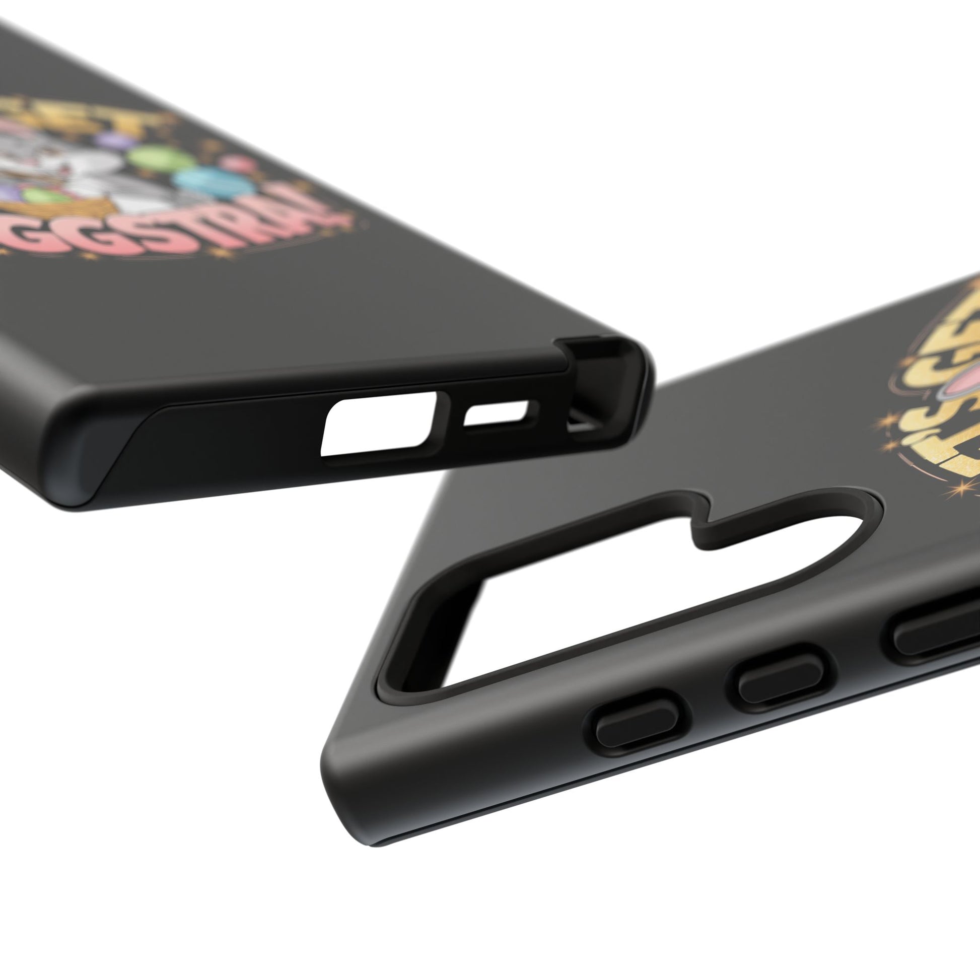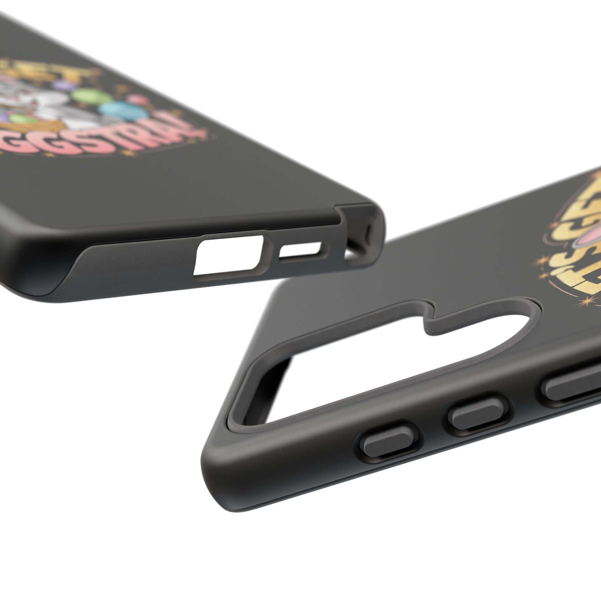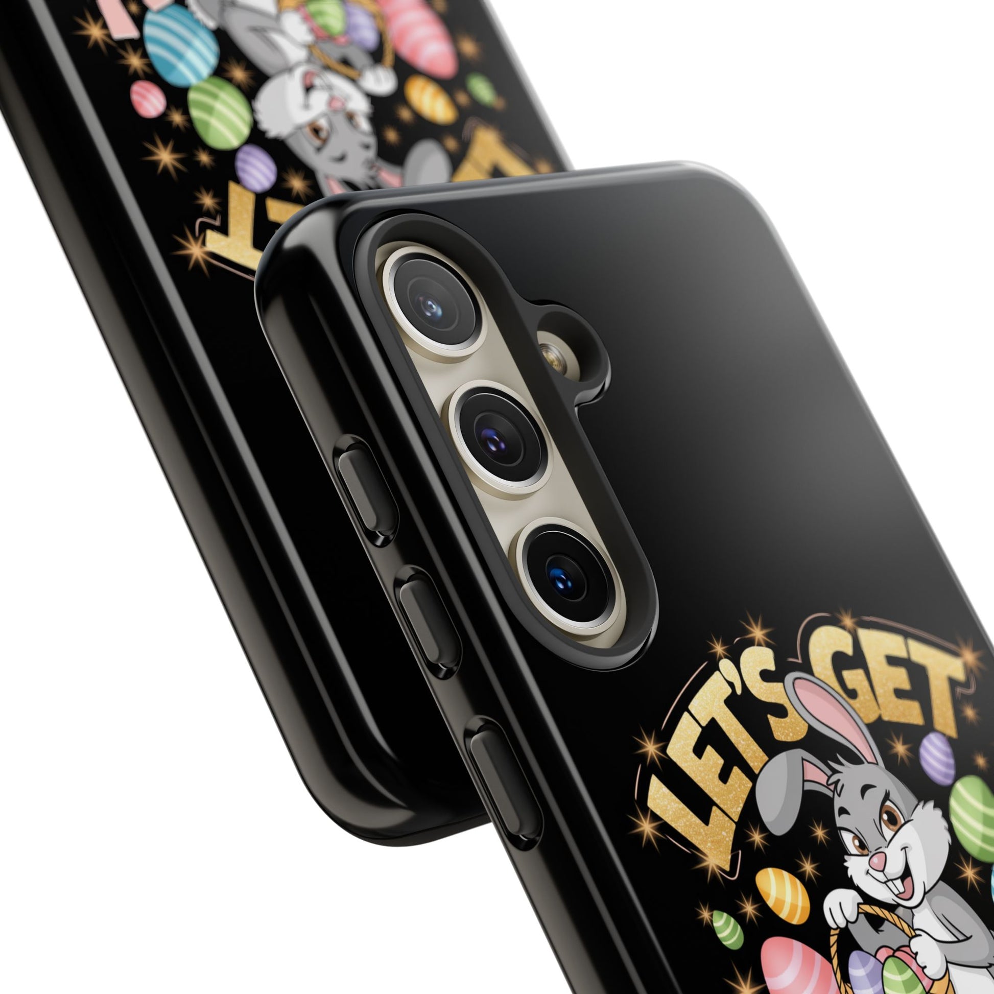 A fun Samsung Phone Case with the Easter Bunny on it that states 'Let's Get Eggstra'. This phone case exudes a playful and festive vibe, perfect for Easter celebrations. It is relevant to adults looking to add a touch of holiday spirit to their phone accessories.