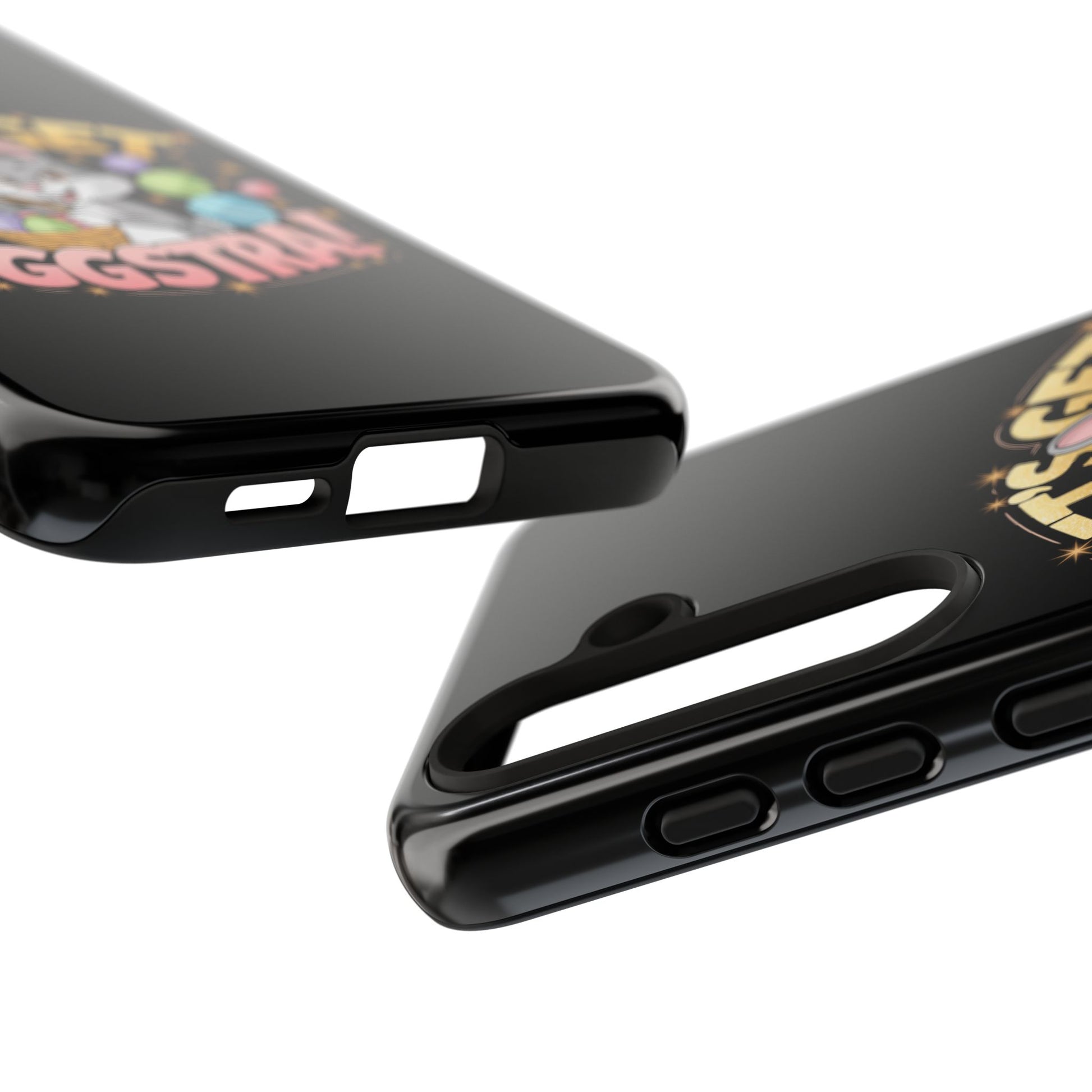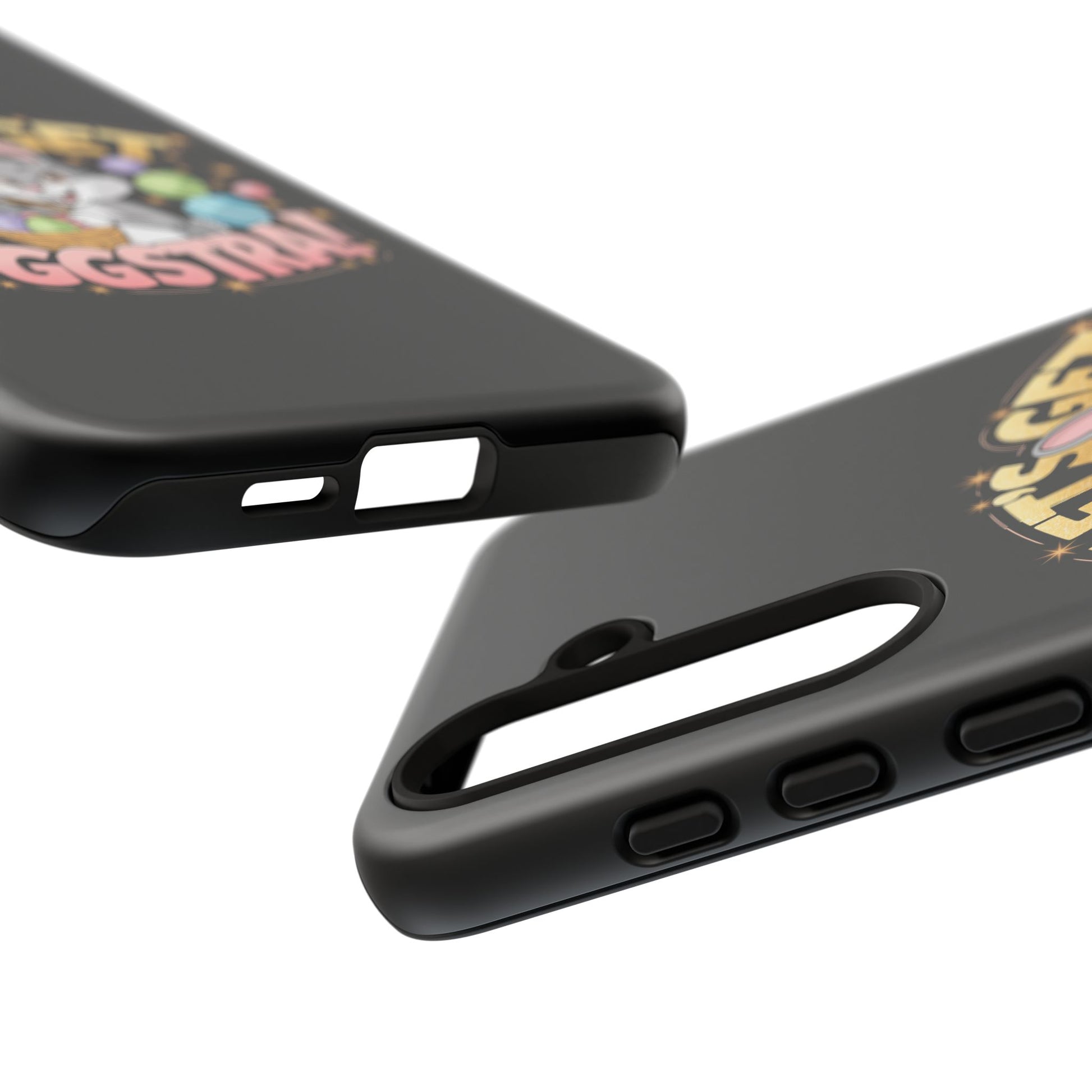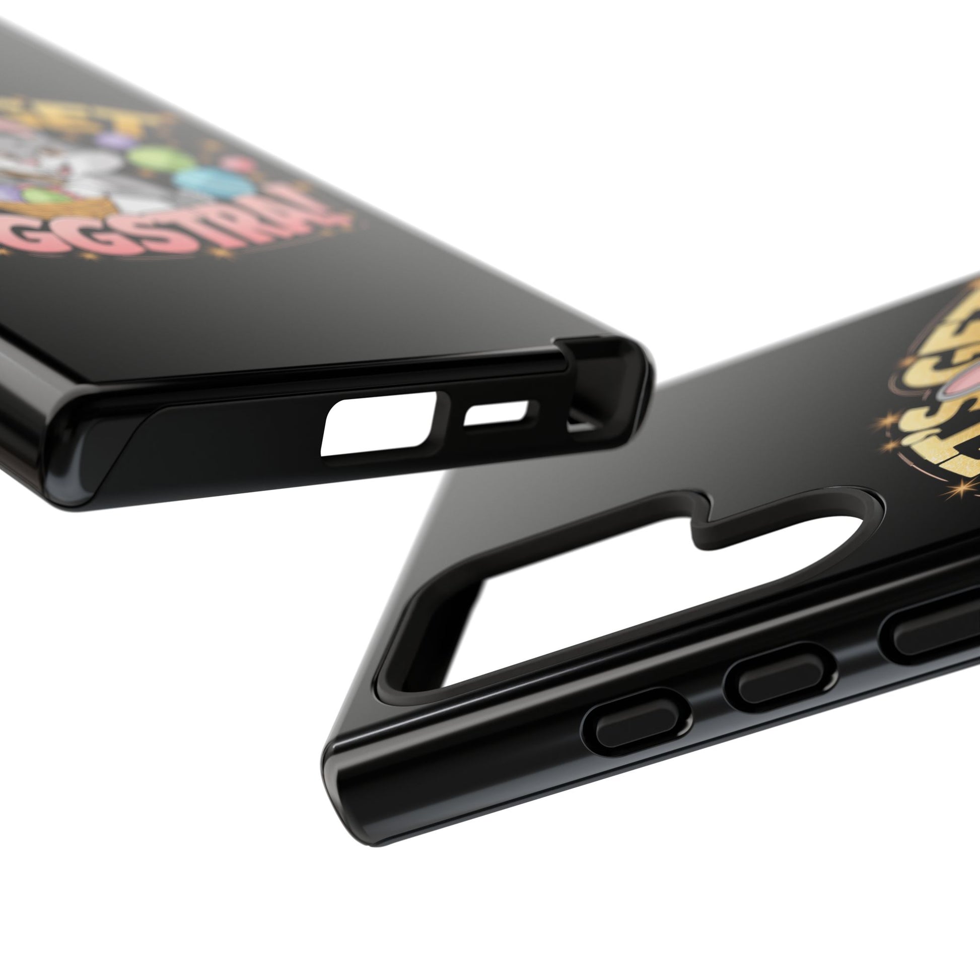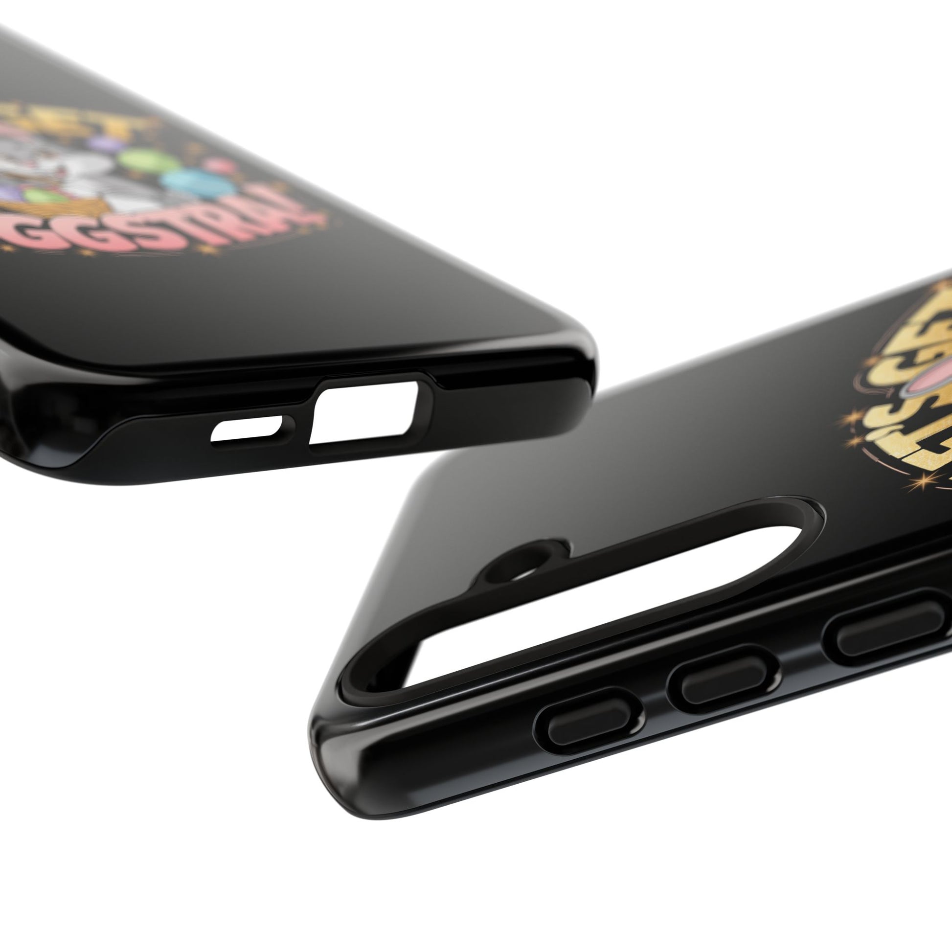 A fun Samsung Phone Case with the Easter Bunny on it that states 'Let's Get Eggstra'. This phone case exudes a playful and festive vibe, perfect for Easter celebrations. It is relevant to adults looking to add a touch of holiday spirit to their phone accessories.