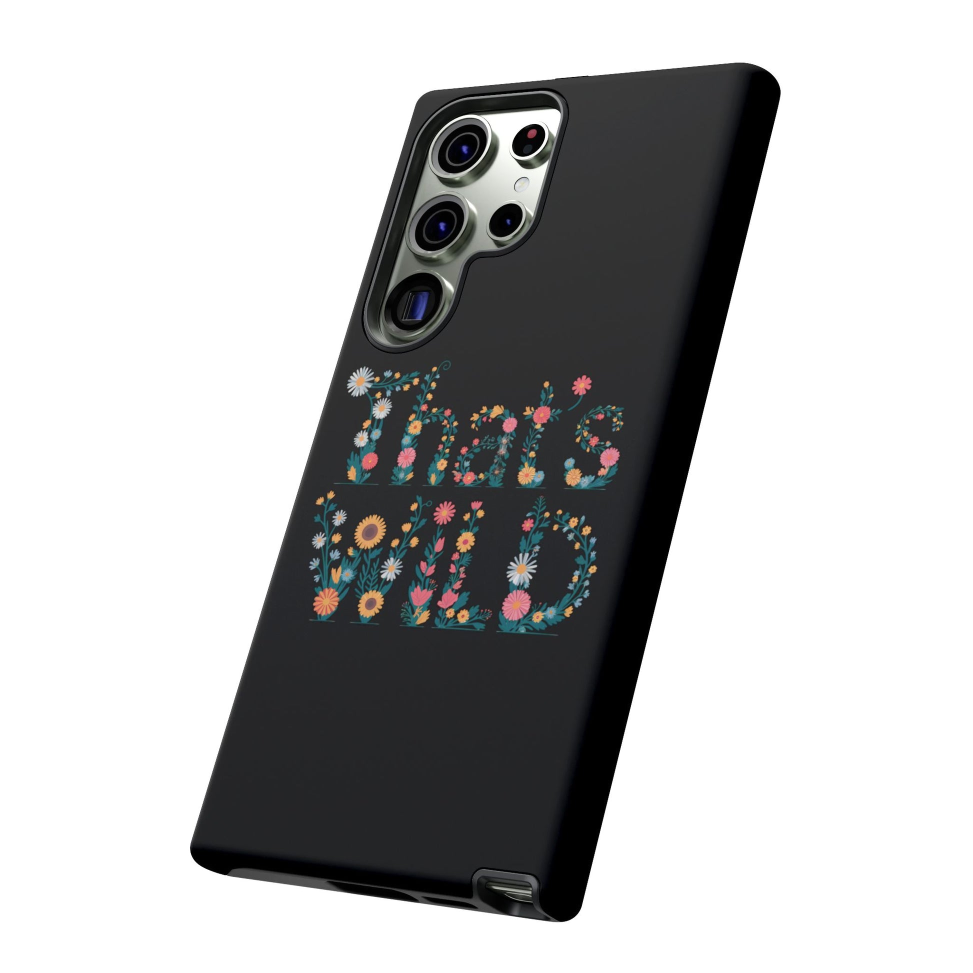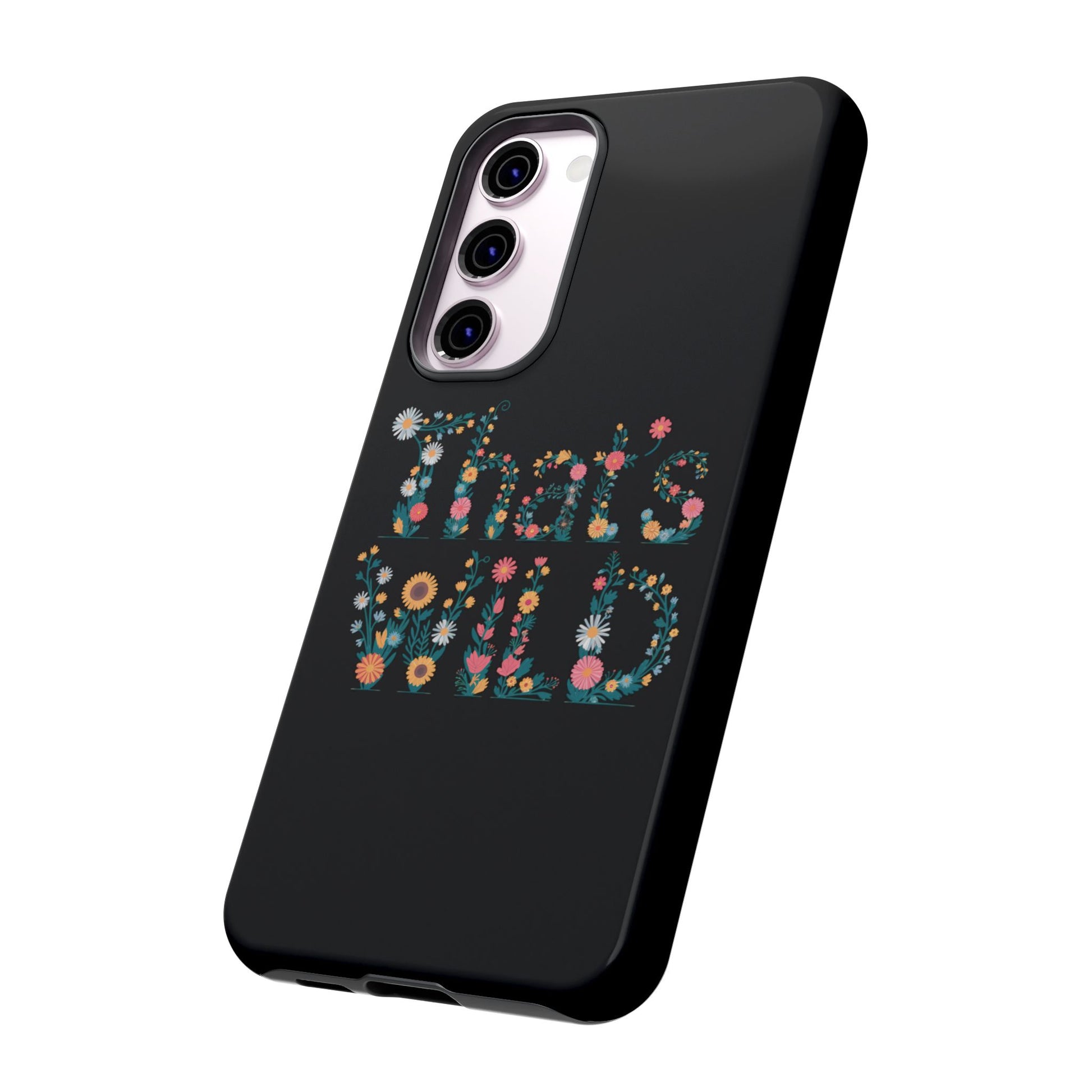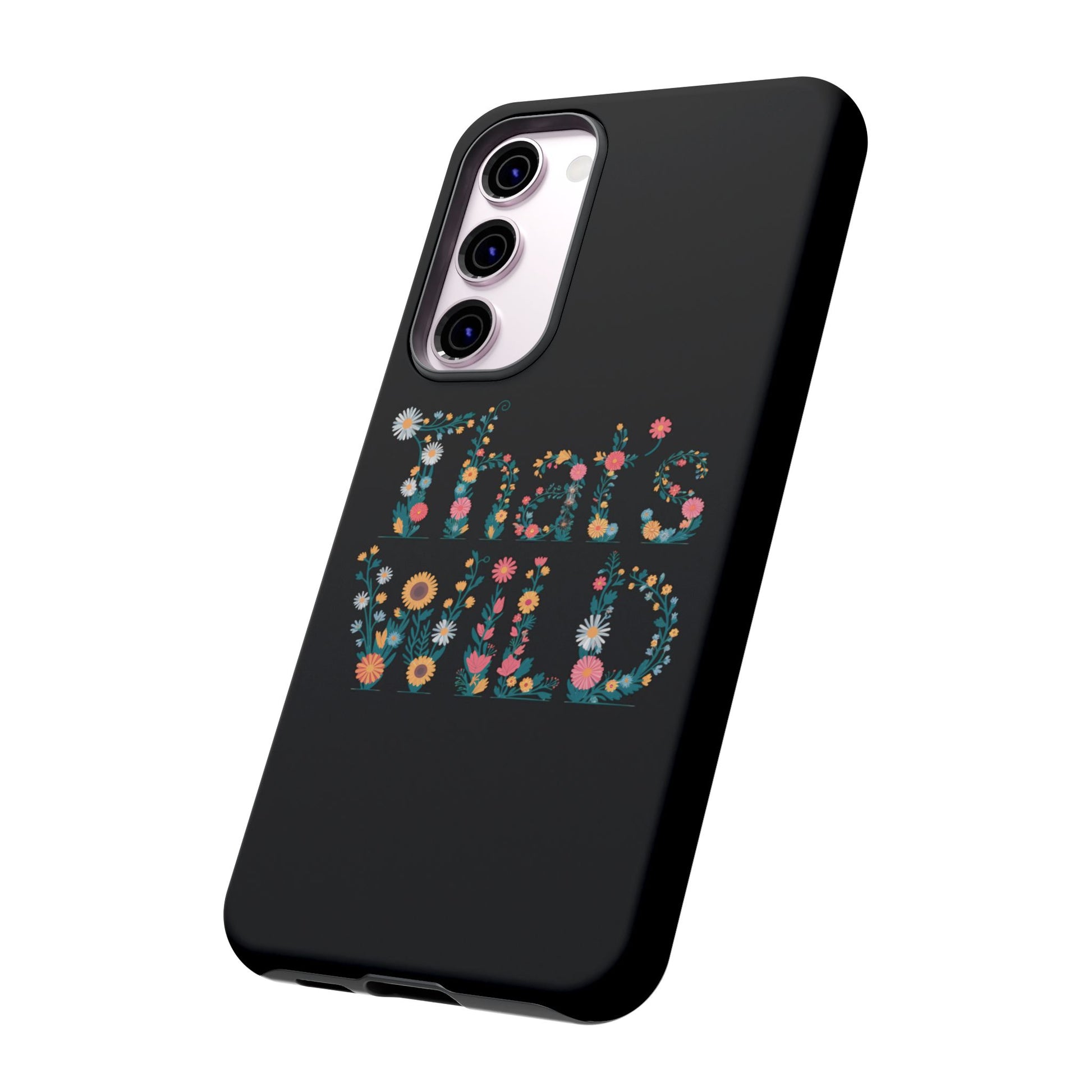 A fun Samsung Phone Case with "That's Wild" placed on it with letters made out of flowers. This phone case gives off a trendy and nature-inspired vibe, perfect for anyone looking to add a touch of whimsy to their everyday essentials. Ideal for adults who appreciate floral designs and want to protect their phone in style. Relevant for birthdays, Mother's Day, or as a thoughtful gift for a nature lover.