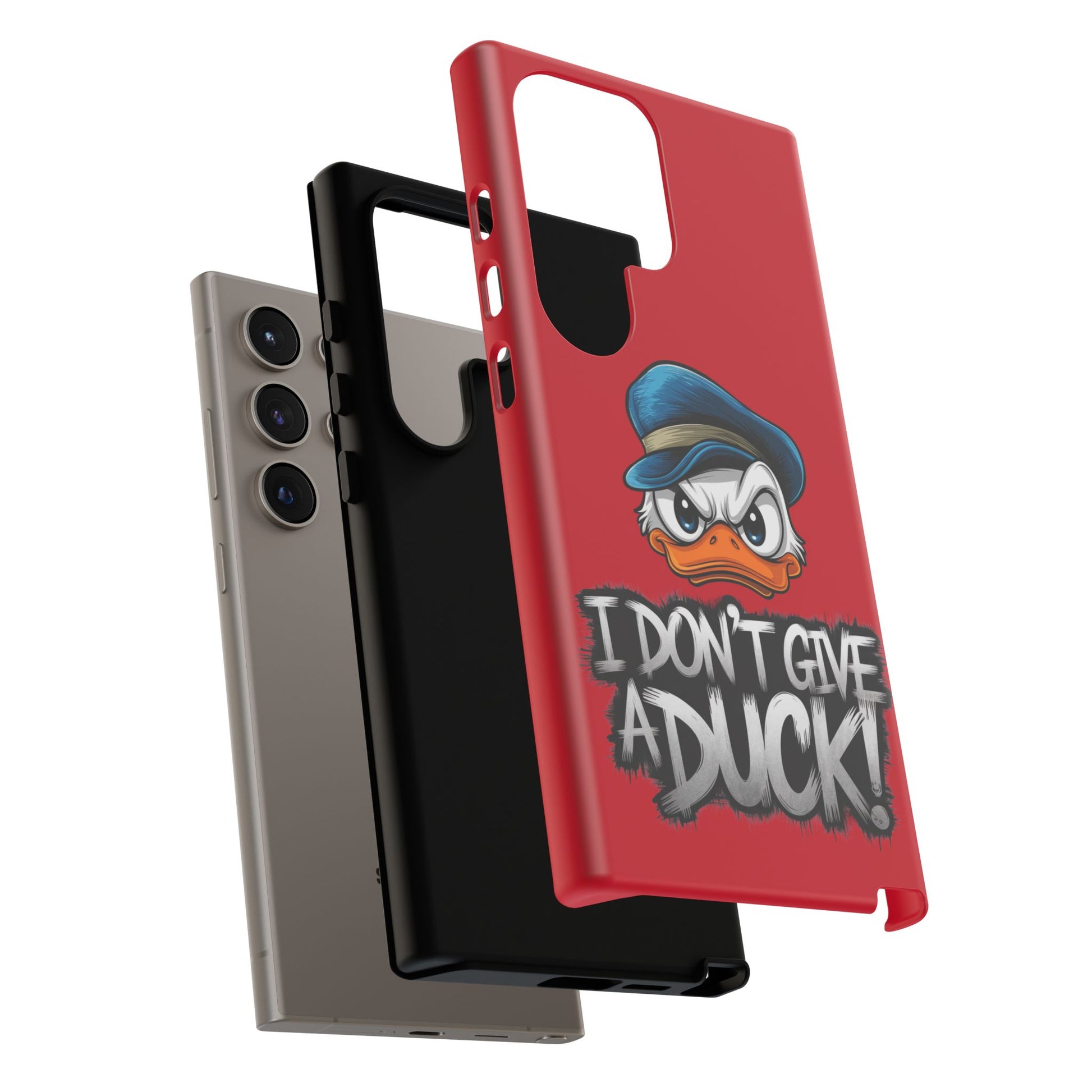 This custom protective phone case features a fun pun of an angry duck saying 'I Don't Give a Duck.' It provides excellent durability and protection against drops and tears, making it perfect for adults with a sense of humor. Great for everyday use or as a gift for friends and family during birthdays, holidays, or special occasions.