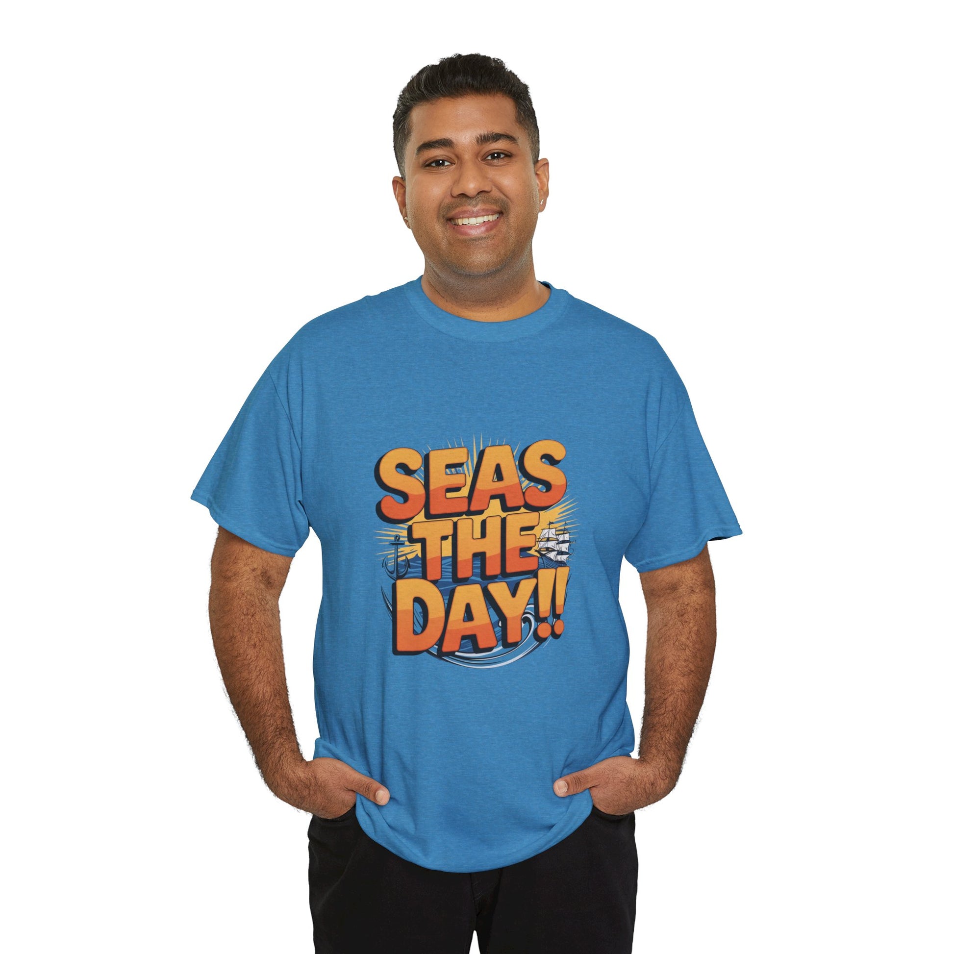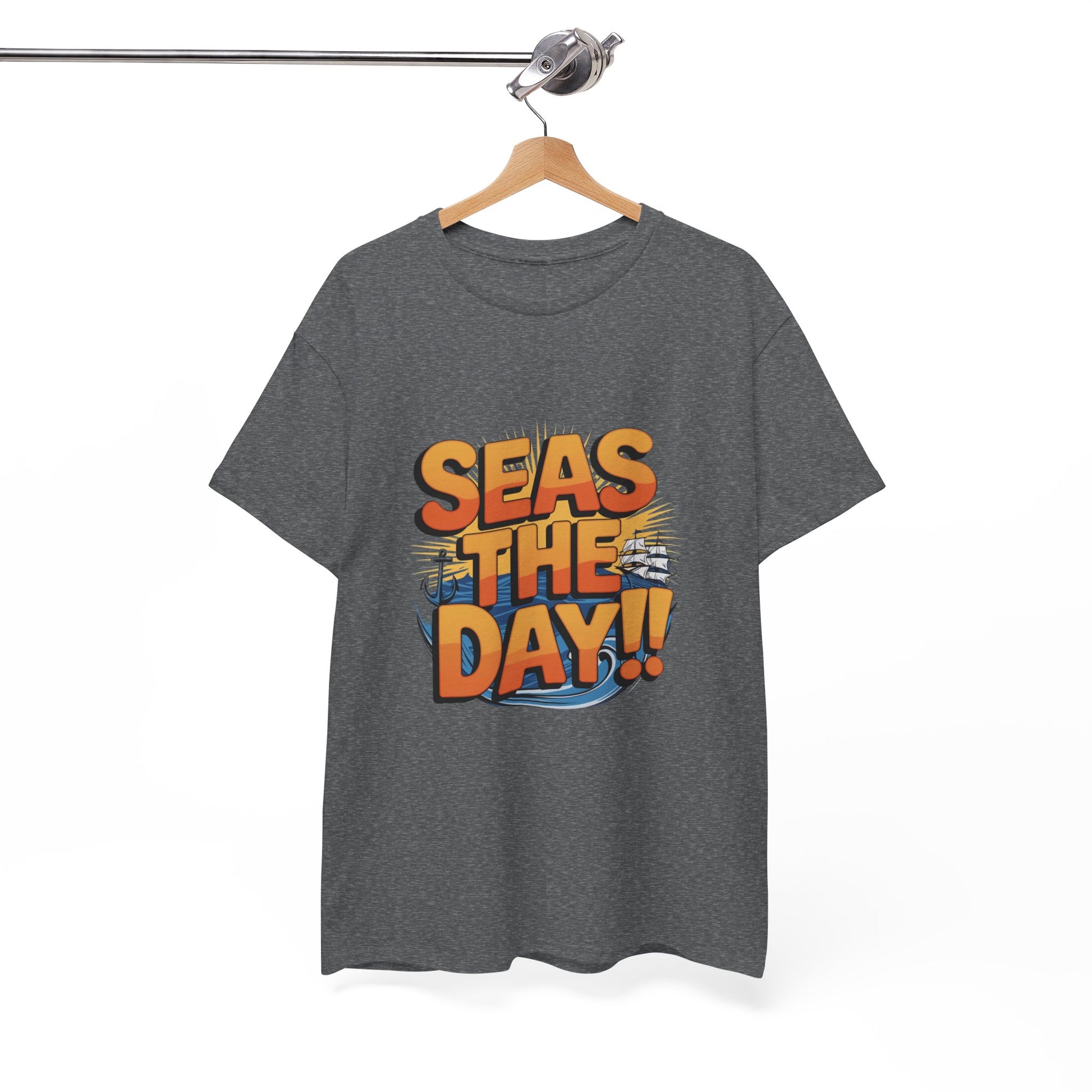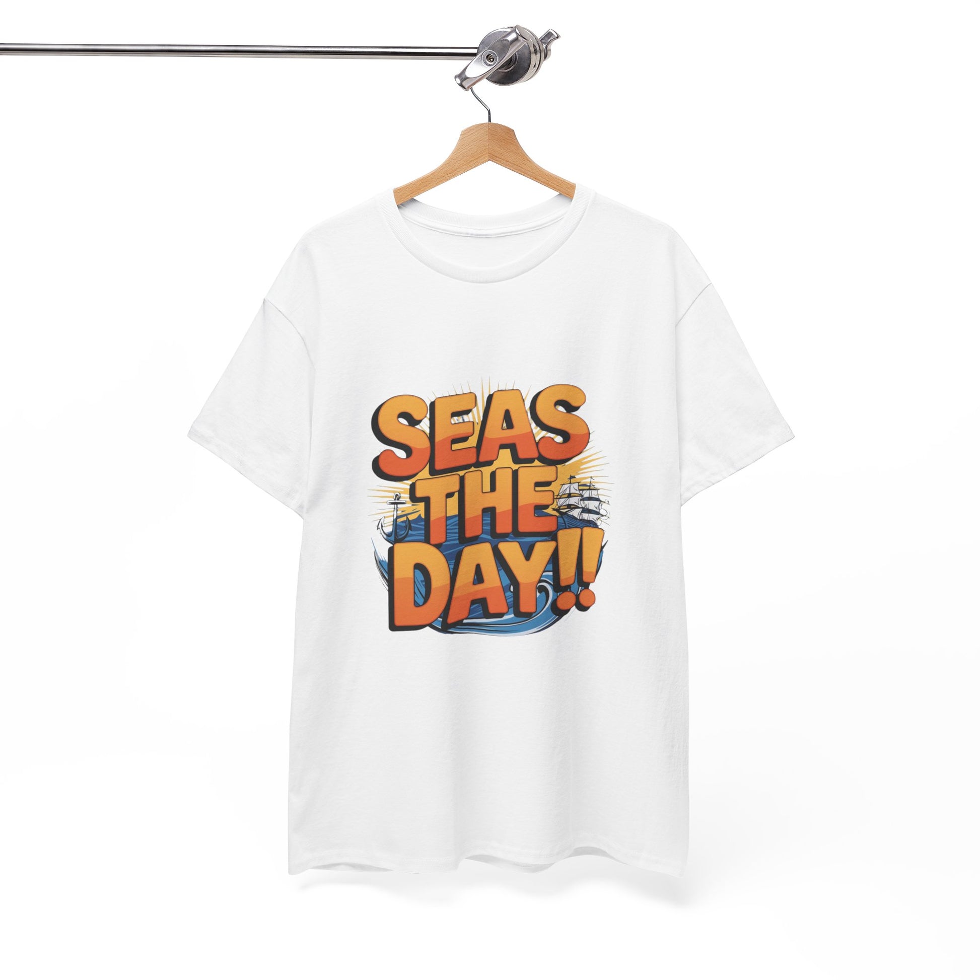 Catchy Phrase – The classic pun “Seas The Day!!” speaks optimism, sunshine, and sea-breeze vibes—seen in top sellers of ocean pun tees Etsy.