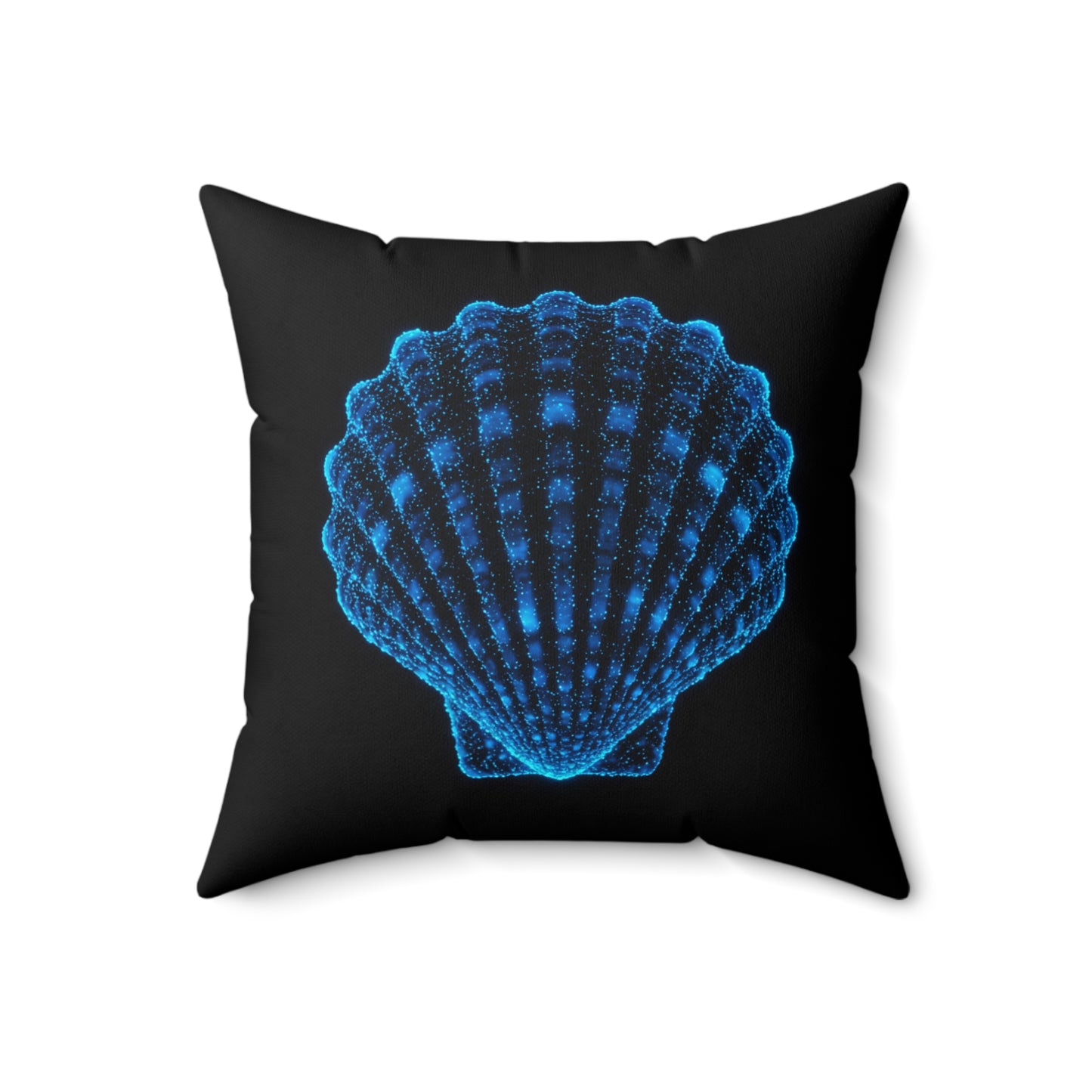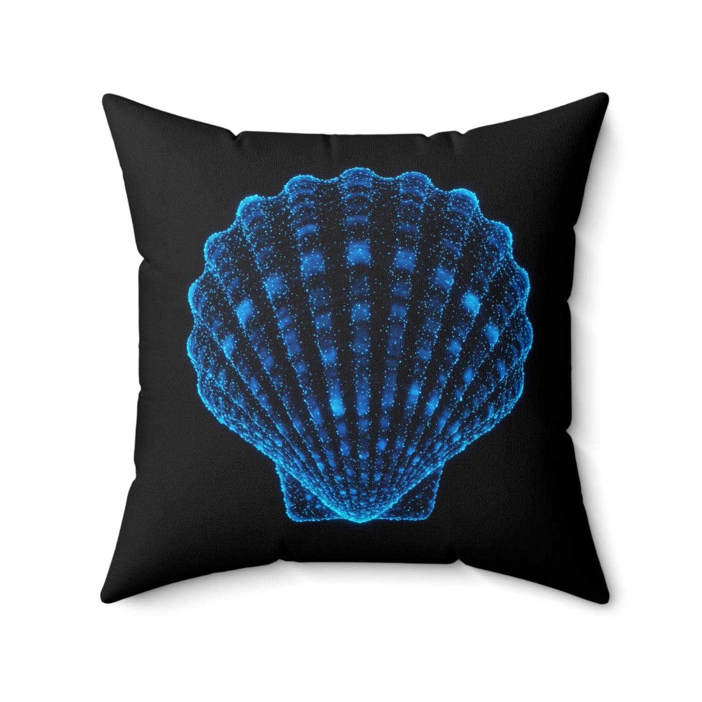 A fun pillow with a bioluminescent seashell design that adds a whimsical touch to any room. Perfect for those who love coastal decor and beach vibes. Ideal for decorating during summer, beach-themed parties, or as a unique gift for sea lovers.
