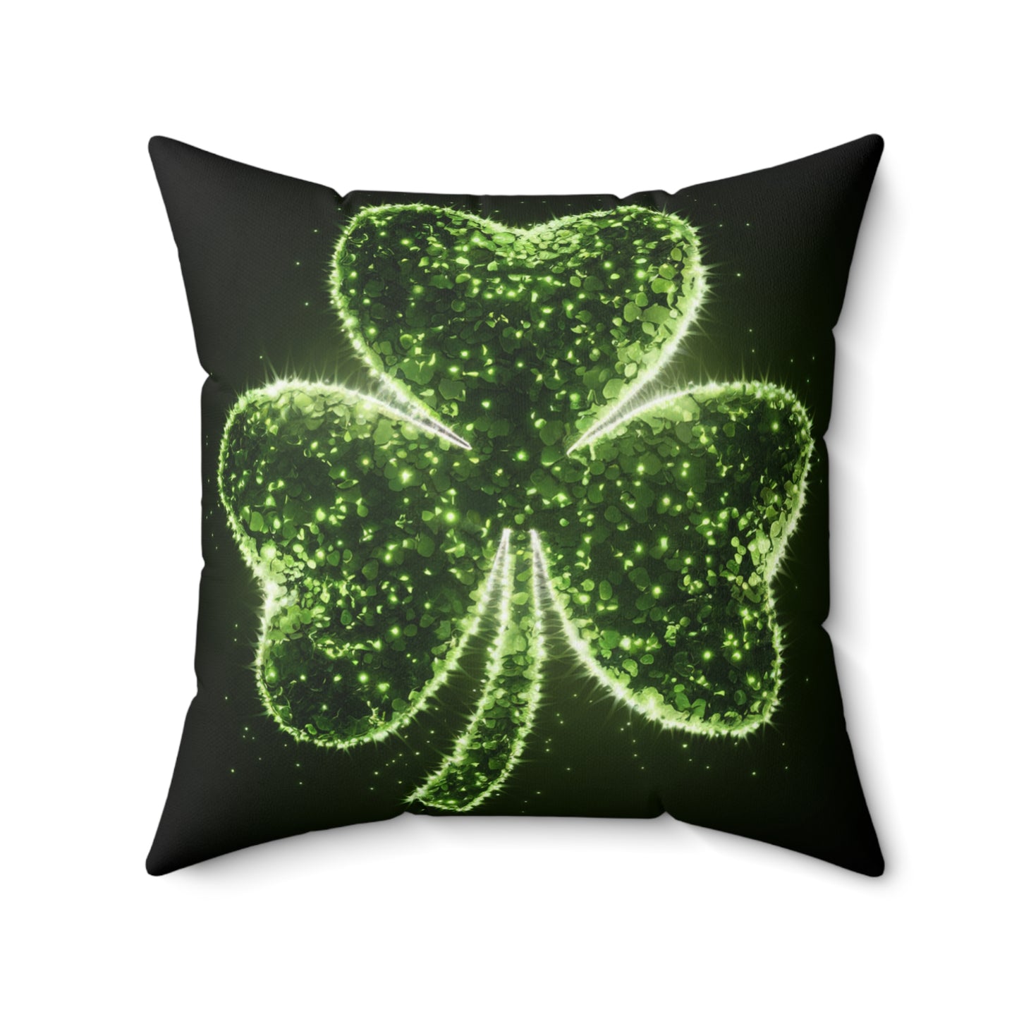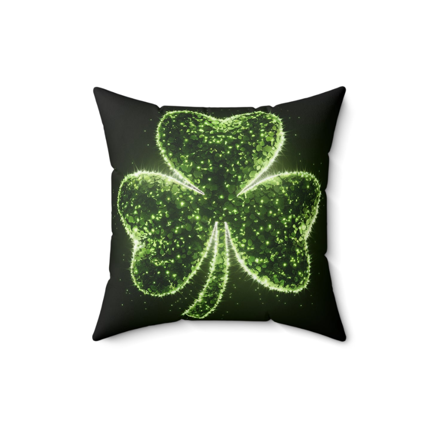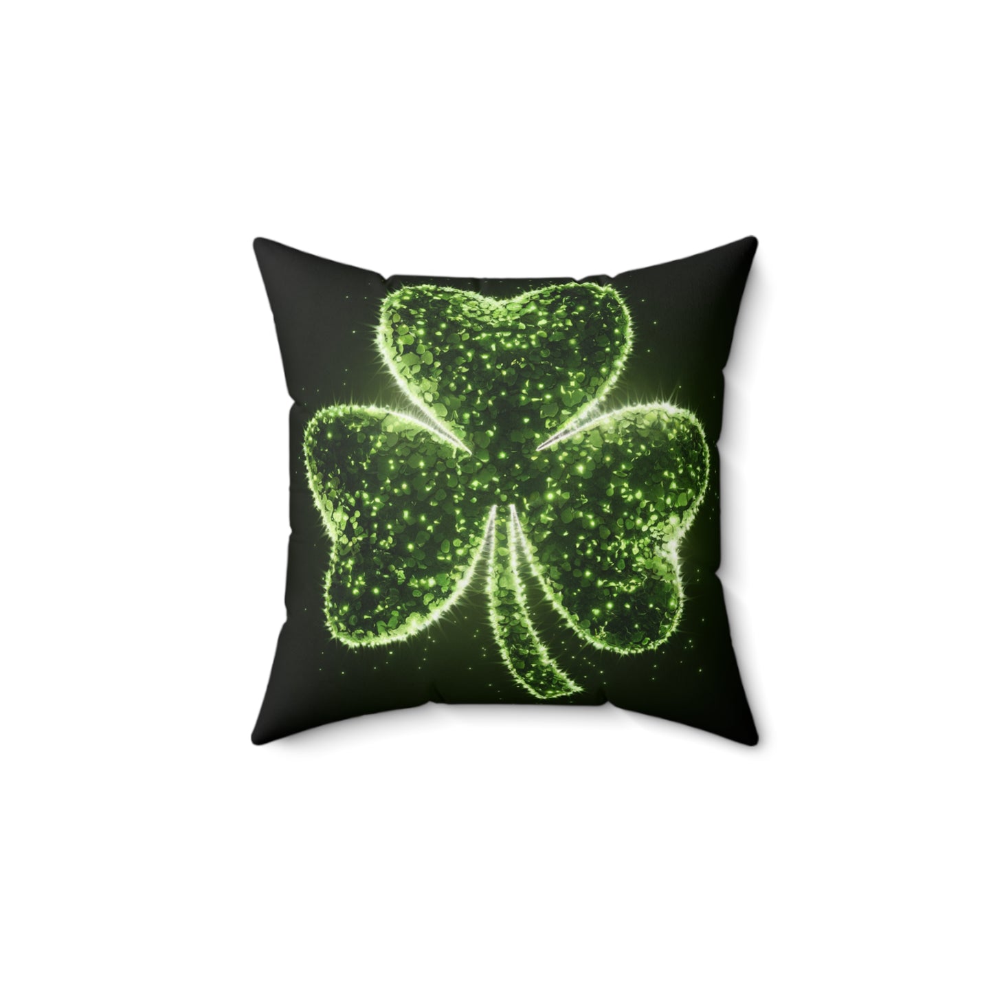 A fun pillow featuring a Shiny Shamrock design, perfect for adding a touch of whimsy to your home decor. Ideal for those who love St. Patrick's Day celebrations or simply enjoy a vibrant and unique aesthetic in their living spaces.