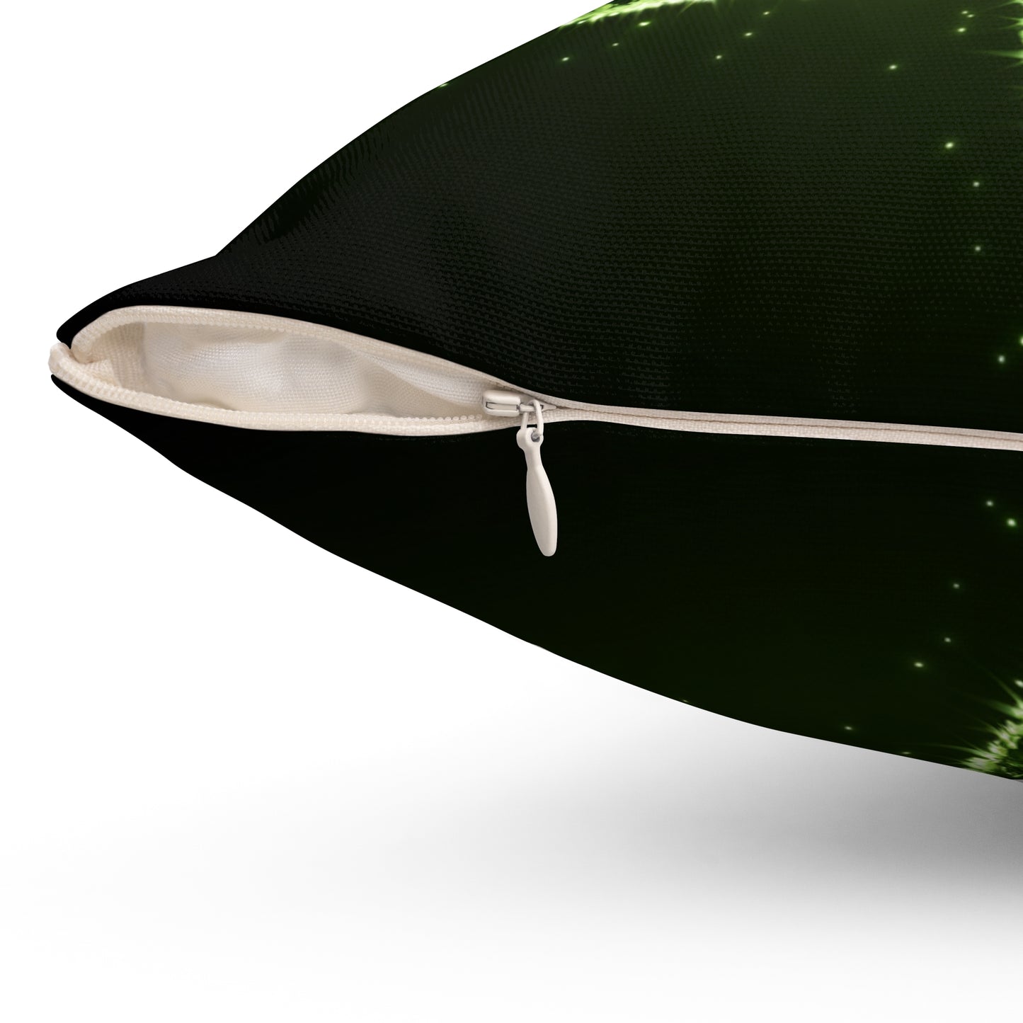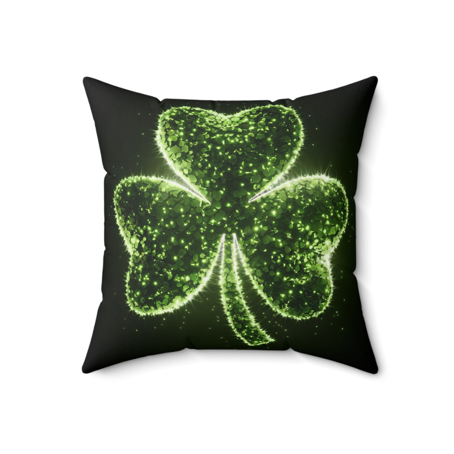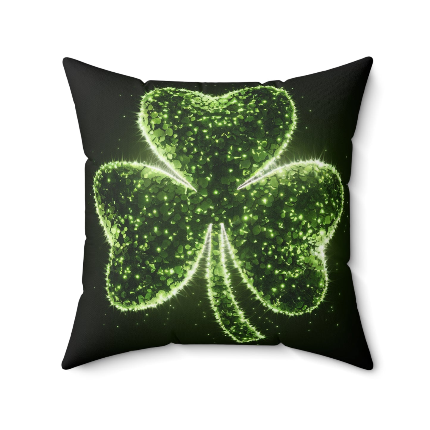 A fun pillow featuring a Shiny Shamrock design, perfect for adding a touch of whimsy to your home decor. Ideal for those who love St. Patrick's Day celebrations or simply enjoy a vibrant and unique aesthetic in their living spaces.