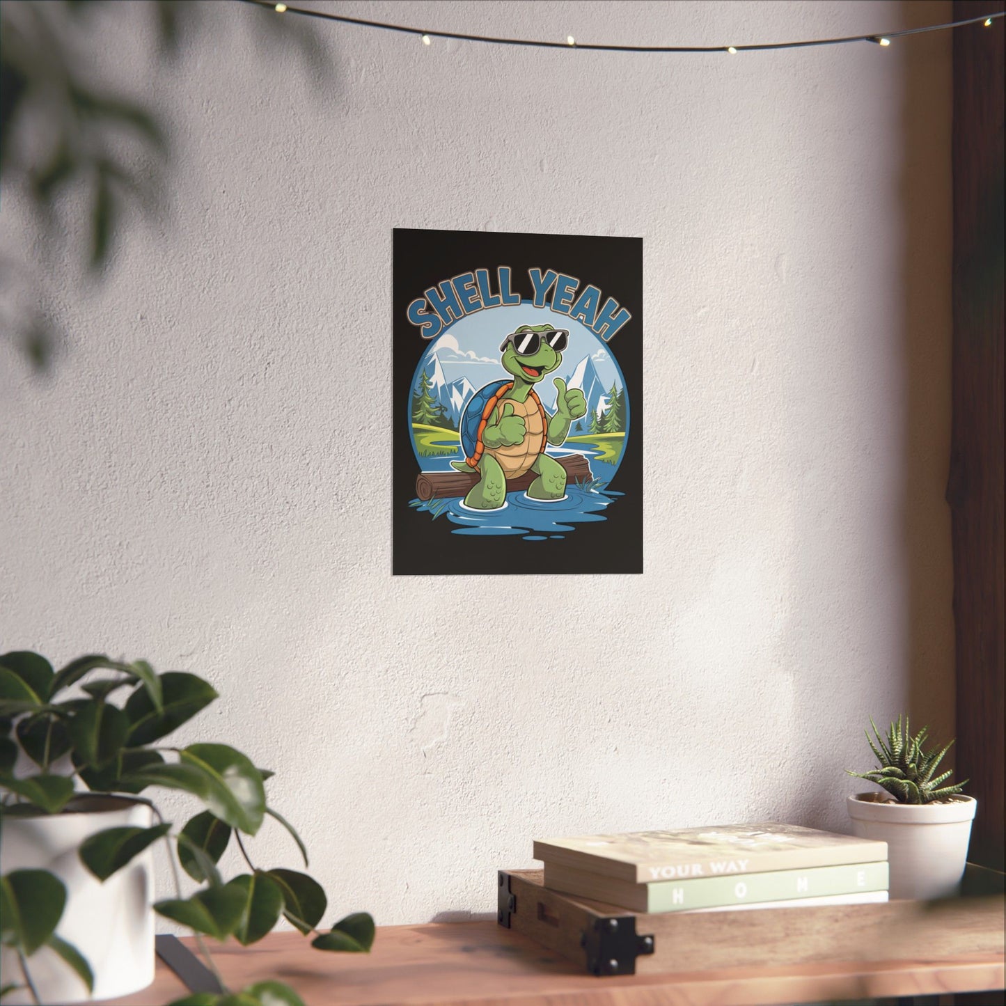 Perfect for turtle lovers, beach enthusiasts, or anyone who loves to keep things cool, this Shell Yeah poster is sure to make waves in your décor!