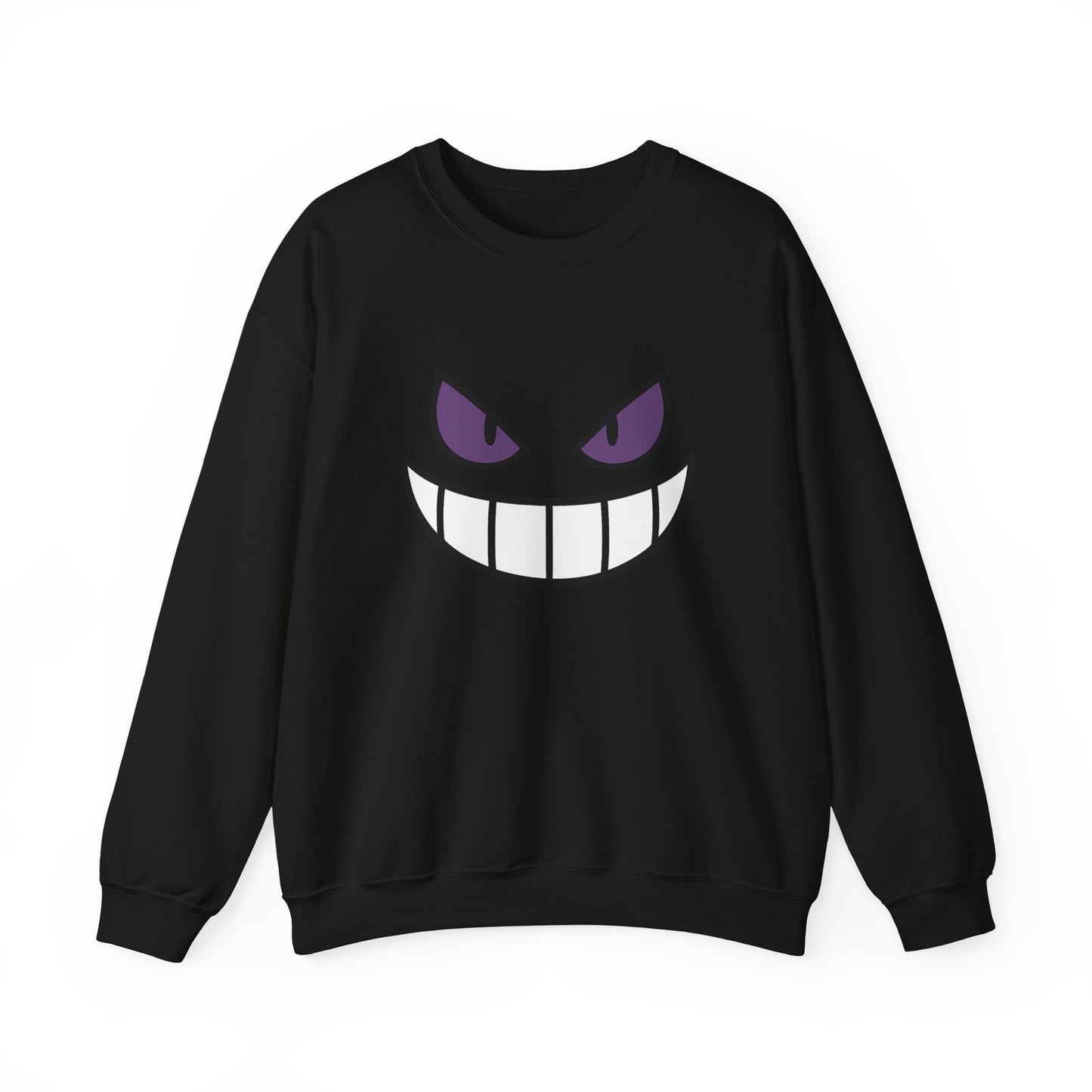 Step into the shadows with this Sinister Grin Sweatshirt, showcasing a bold, creepy smile and dark eyes that pop against a black crewneck. A perfect piece for those who love edgy, spooky style with character and attitude.