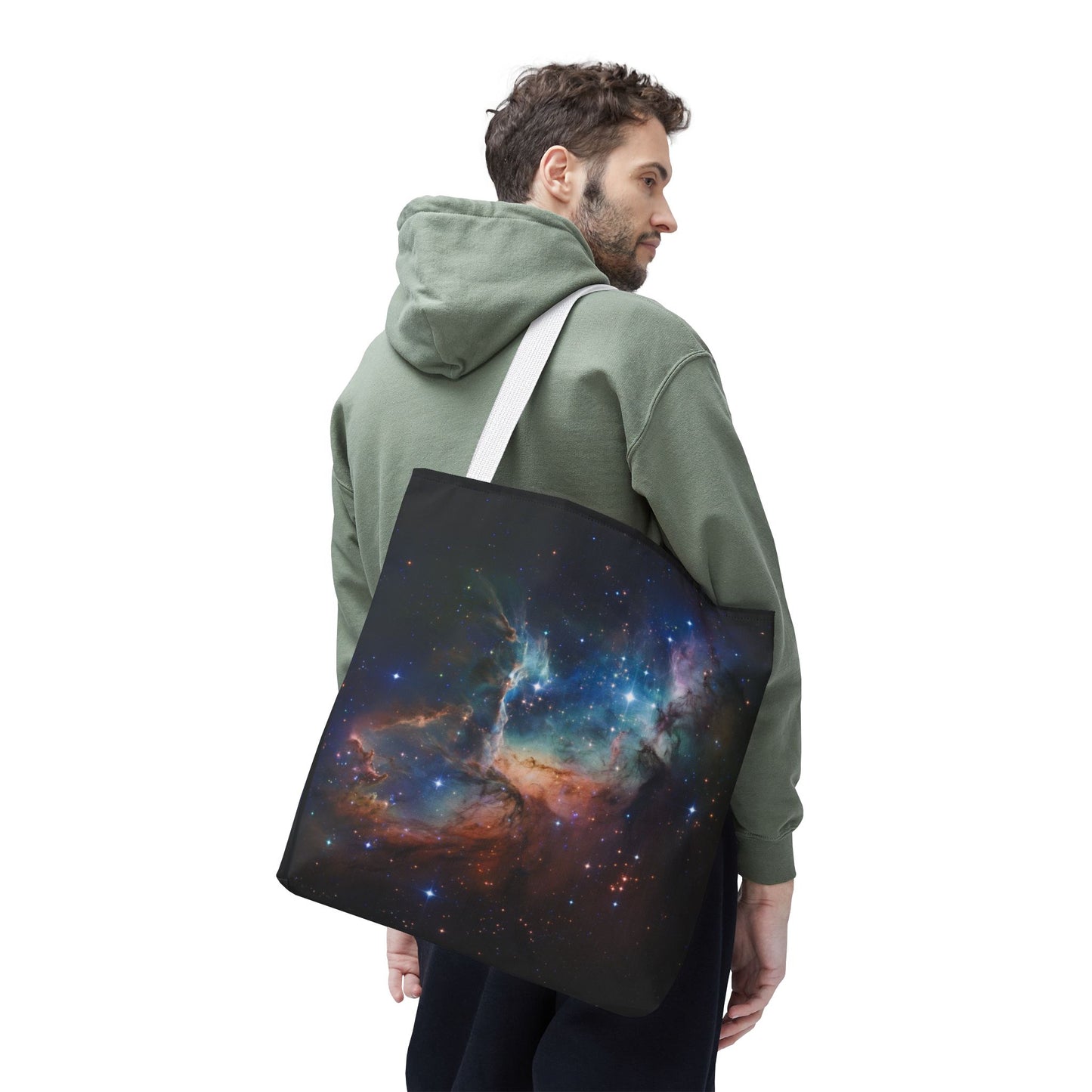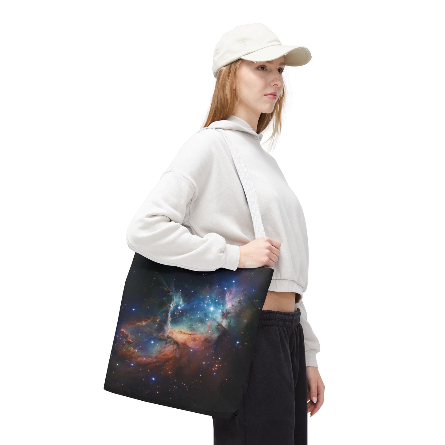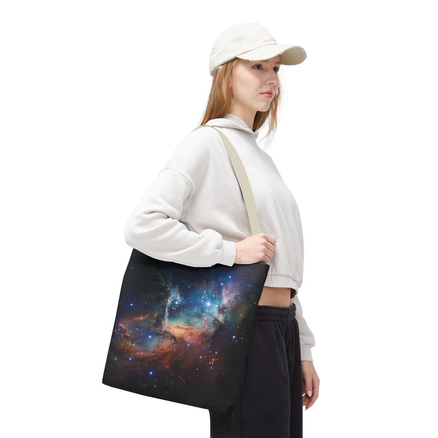 A fun tote bag with Space Galactic Starry Print on it, perfect for those who love celestial themes and want to add a touch of whimsy to their everyday style. This tote bag is versatile, durable, and ideal for carrying essentials for work, school, or shopping. Great for astronomy enthusiasts, sci-fi fans, and those who enjoy unique accessories. Perfect for gifting for birthdays, holidays, or as a treat for yourself.