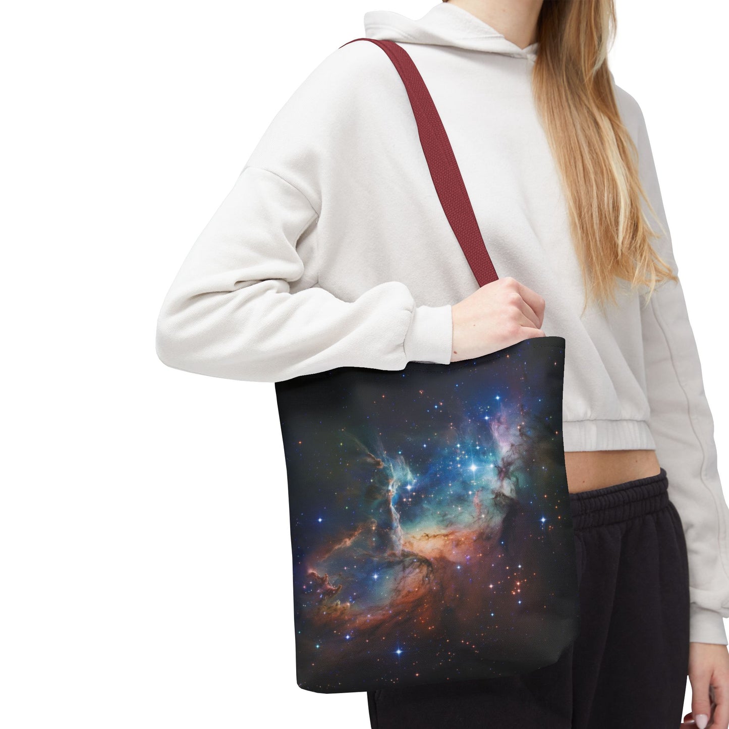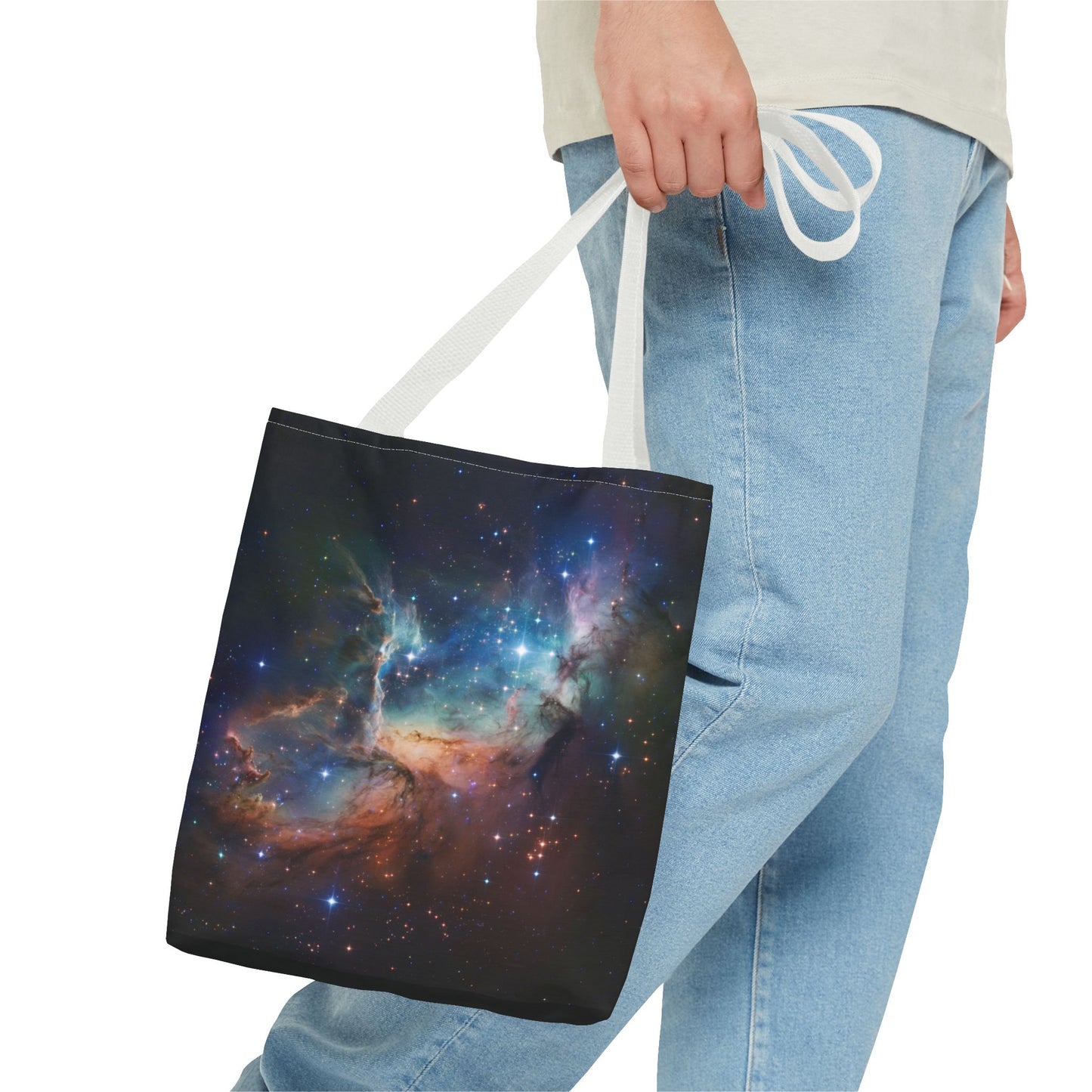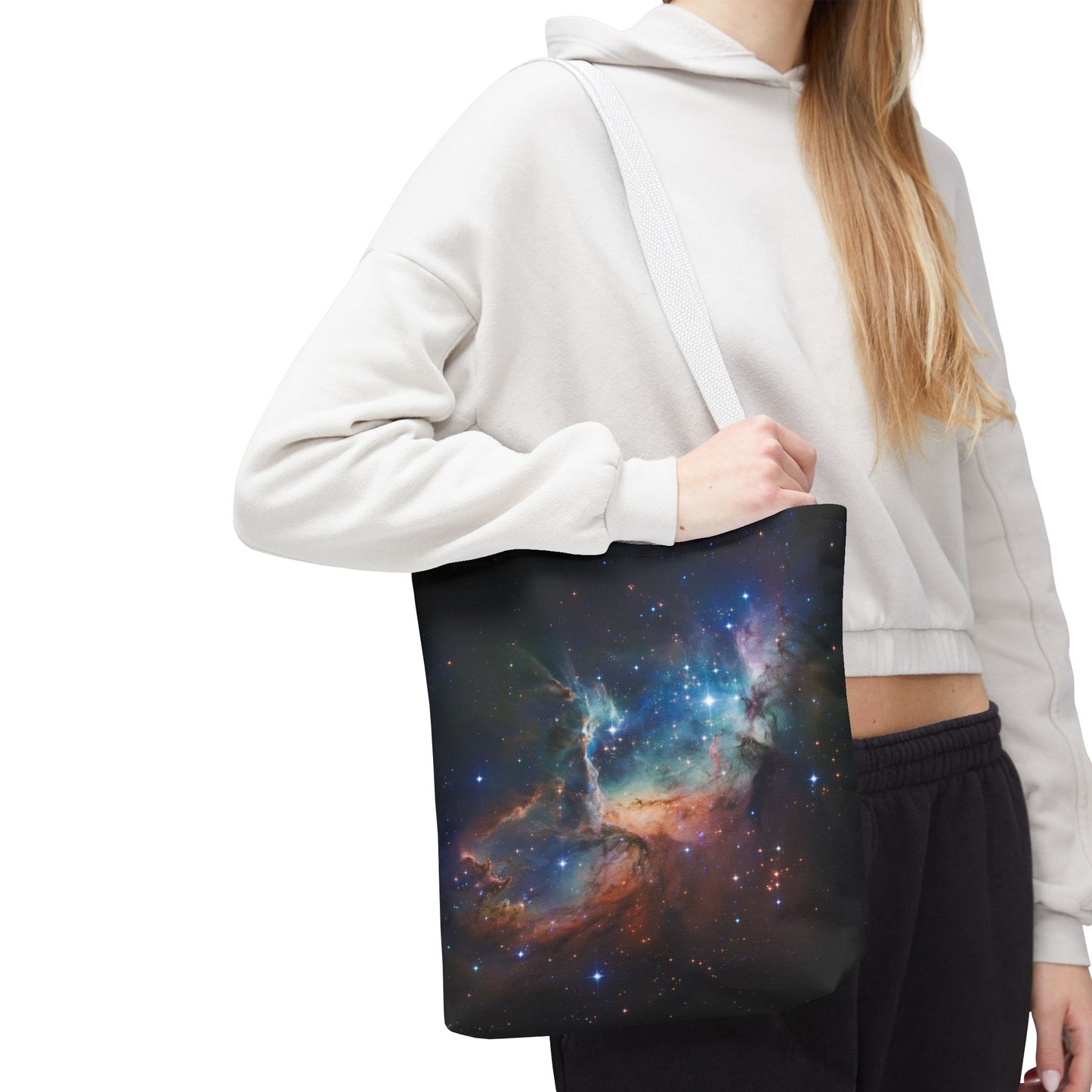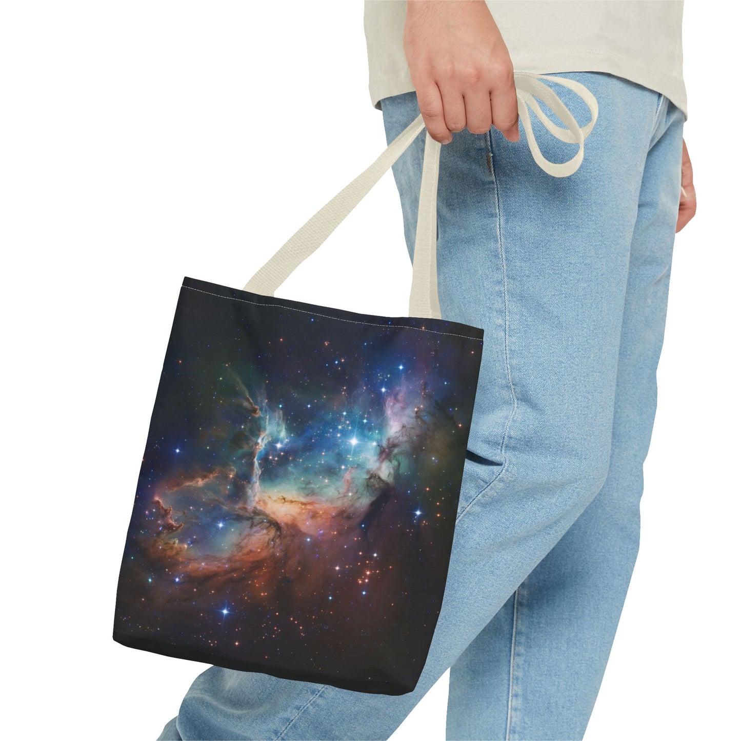 A fun tote bag with Space Galactic Starry Print on it, perfect for those who love celestial themes and want to add a touch of whimsy to their everyday style. This tote bag is versatile, durable, and ideal for carrying essentials for work, school, or shopping. Great for astronomy enthusiasts, sci-fi fans, and those who enjoy unique accessories. Perfect for gifting for birthdays, holidays, or as a treat for yourself.