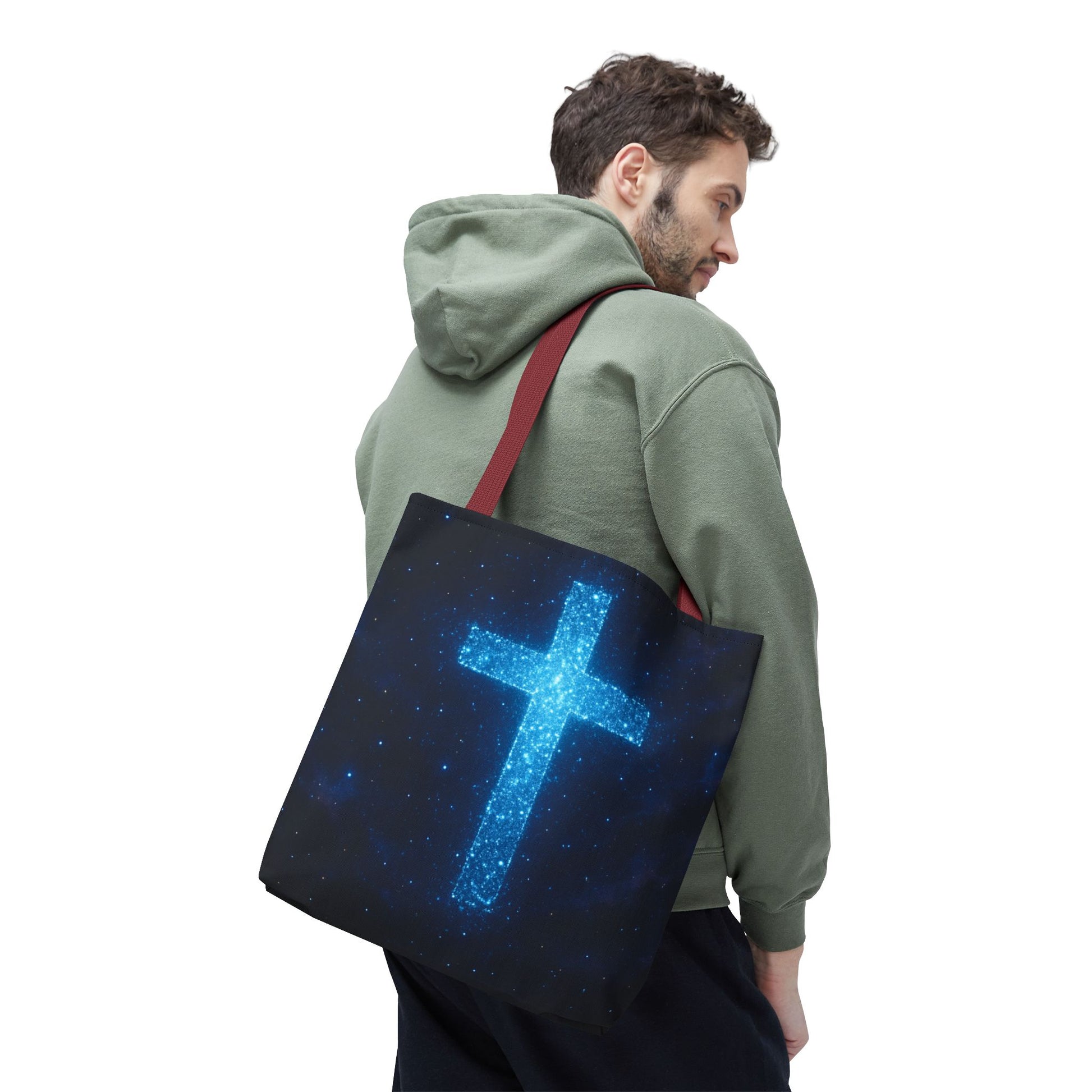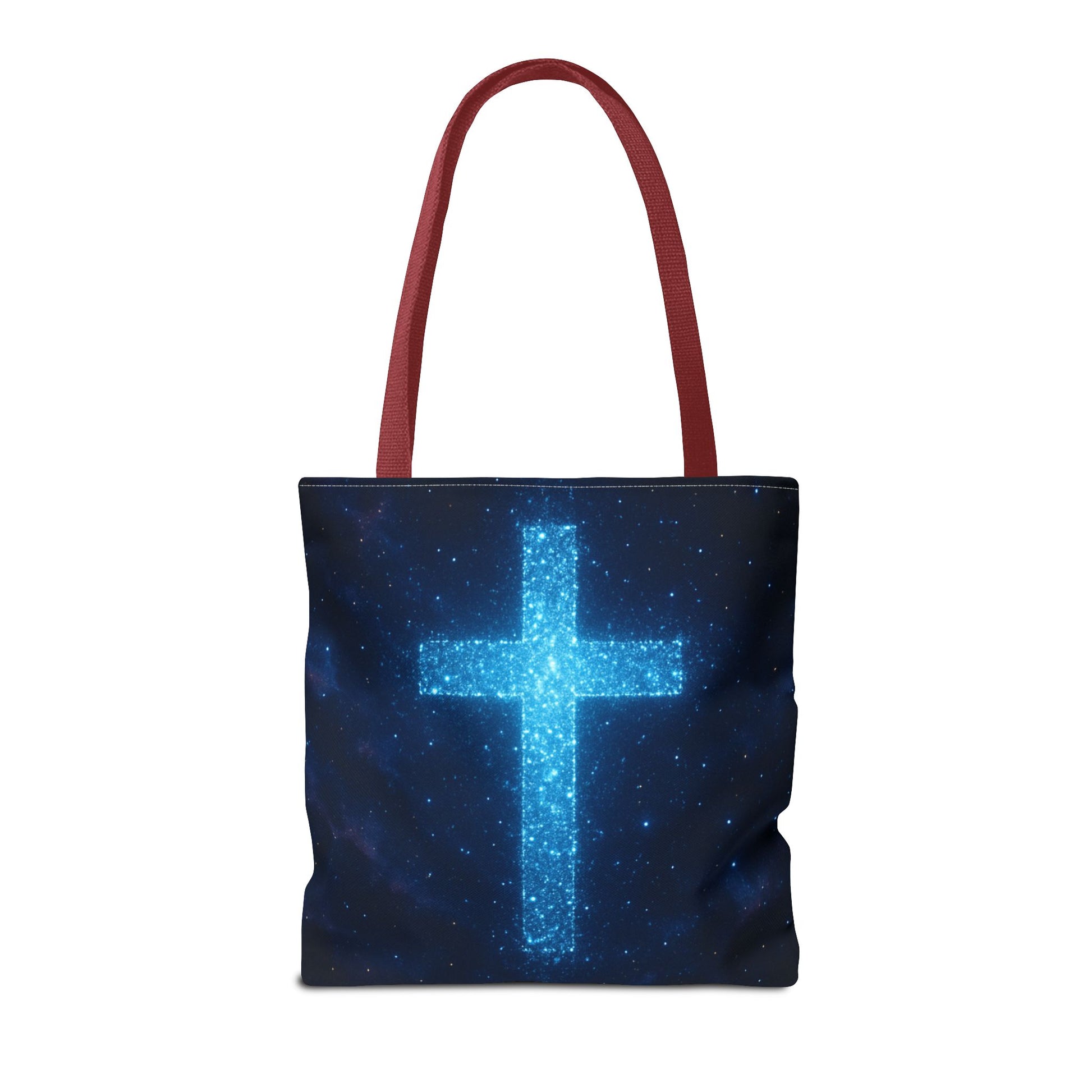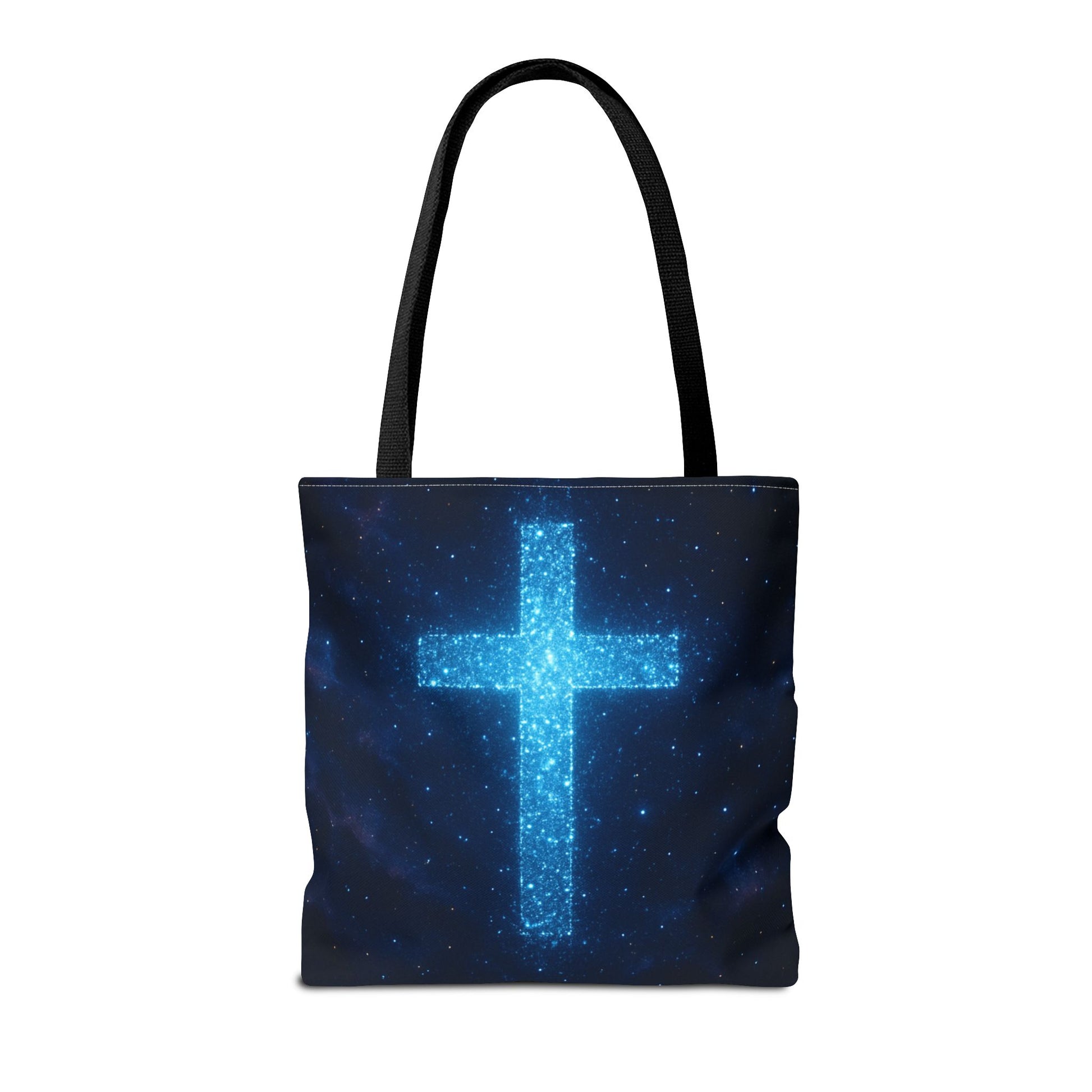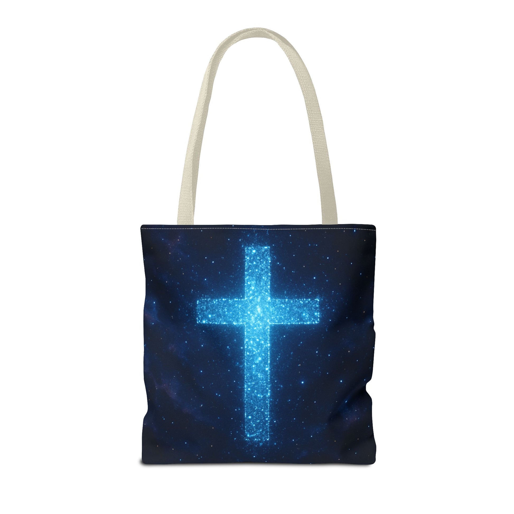 Sparkling Cross Tote Bag - Inspirational Blue Cosmic Bag Christian Tote Spiritual Bag Inspirational Tote Bag
