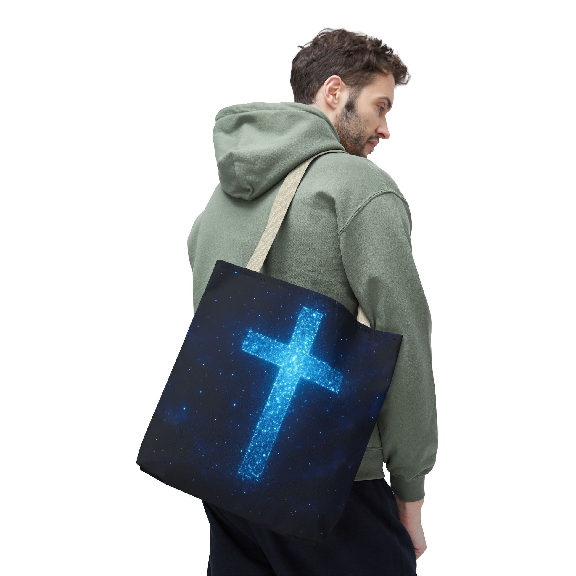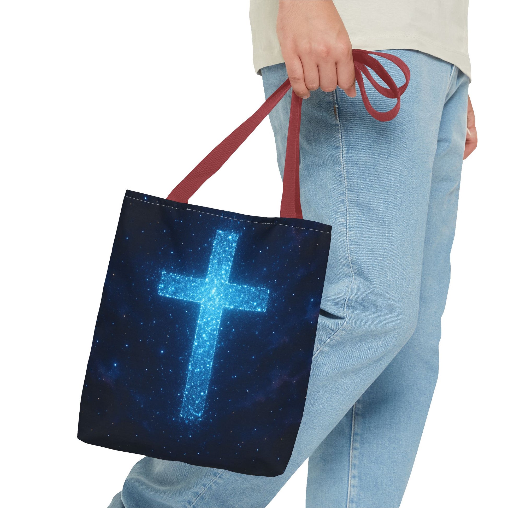 This stylish and durable tote bag combines practicality with a touch of celestial elegance. Its cosmic design, featuring a gleaming cross against a starry backdrop, embodies inspiration and faith. Perfect for daily errands, beach days, or as a thoughtful gift, it serves as a constant reminder of hope. Ideal for individuals who appreciate unique accessories and a spiritual vibe, this tote is a great fit for celebrations like Christmas, Easter, and spiritual retreats. Whether you're a student, a busy mom, or someone who loves to stand out, this tote bag will seamlessly integrate into your lifestyle while being a conversation starter. Carry it with pride and let it inspire positivity wherever you go!