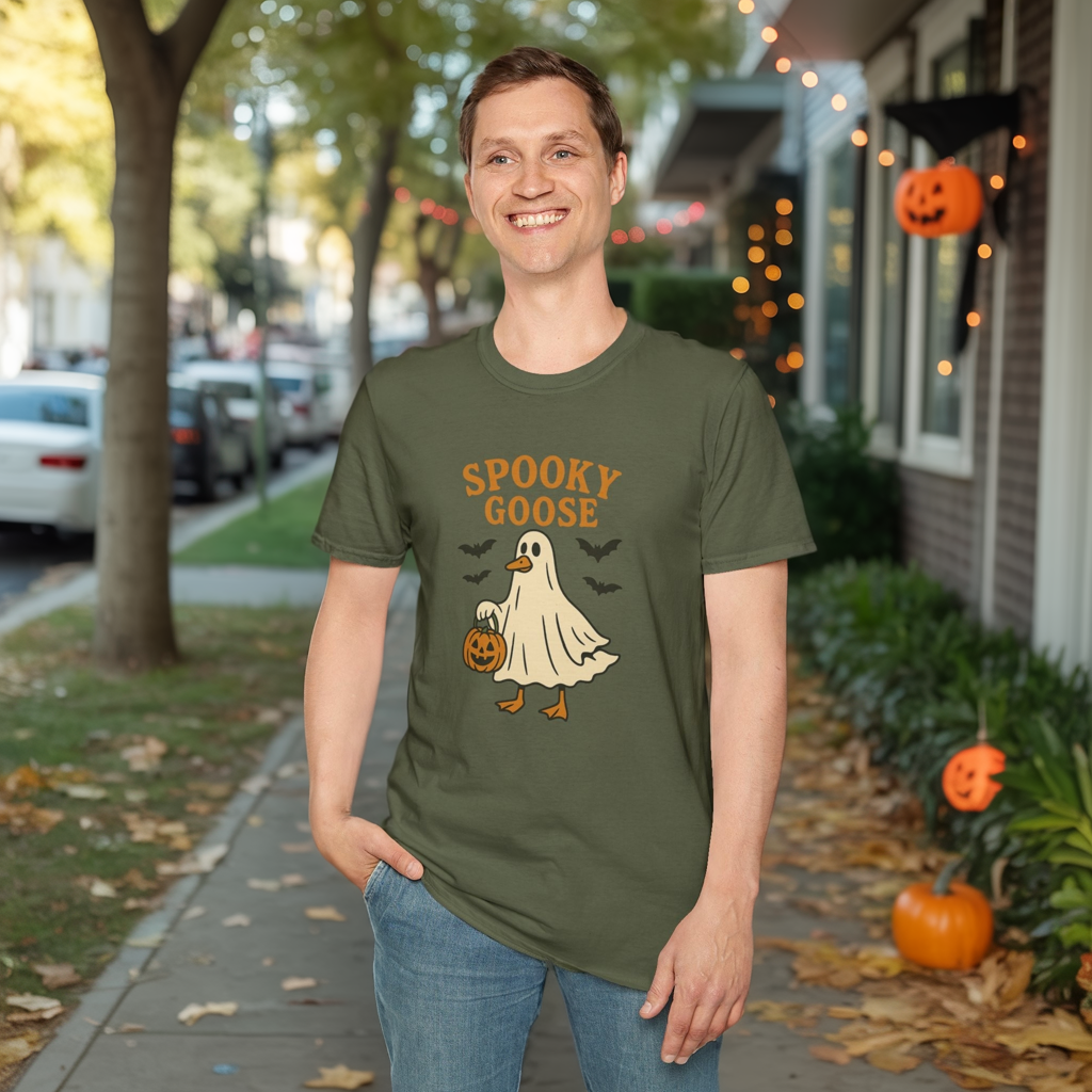 Spooky Goose Halloween T-Shirt | Ghost Costume Goose Tee | Funny Fall Bird Shirt | Spooky Animal Halloween Graphic T-Shirt
