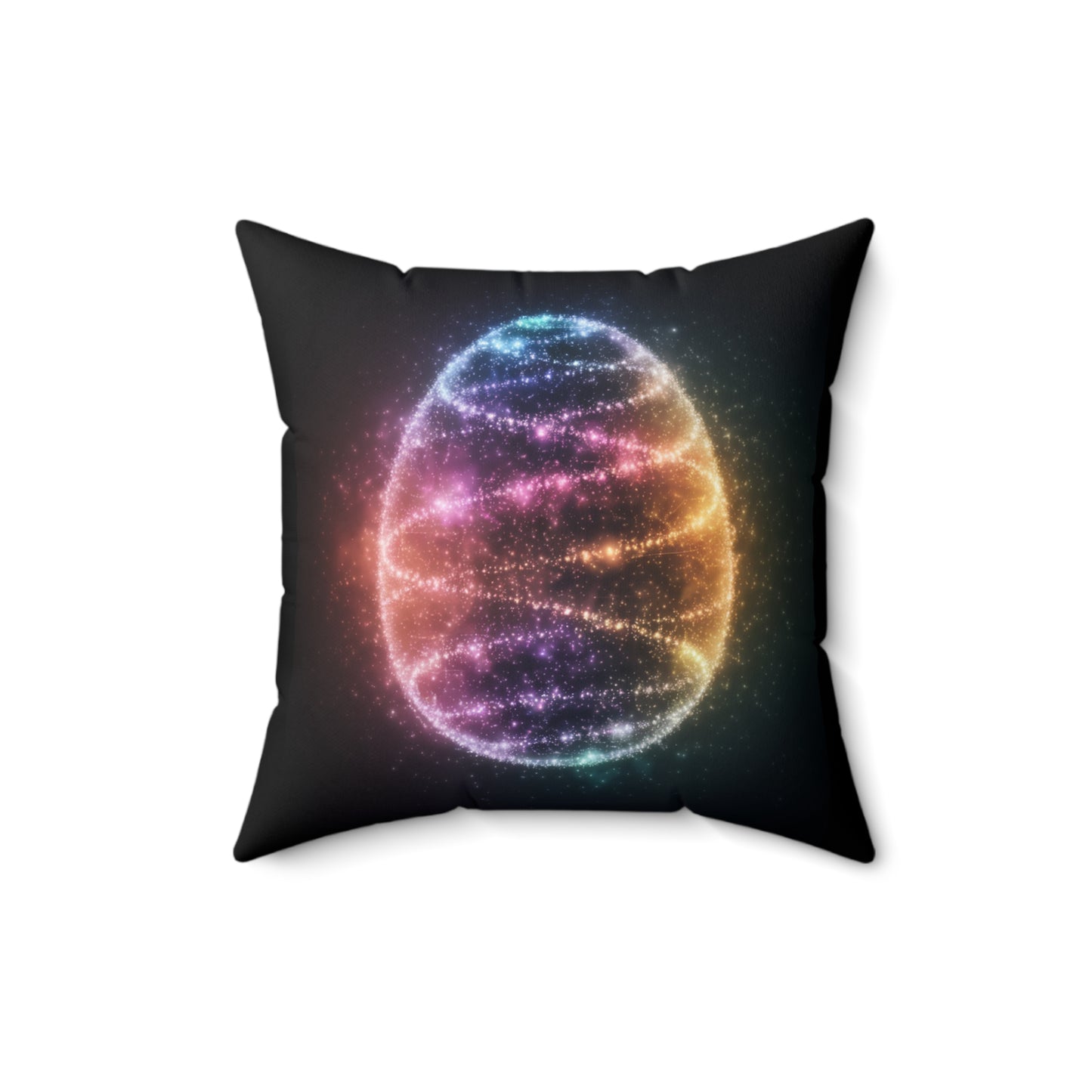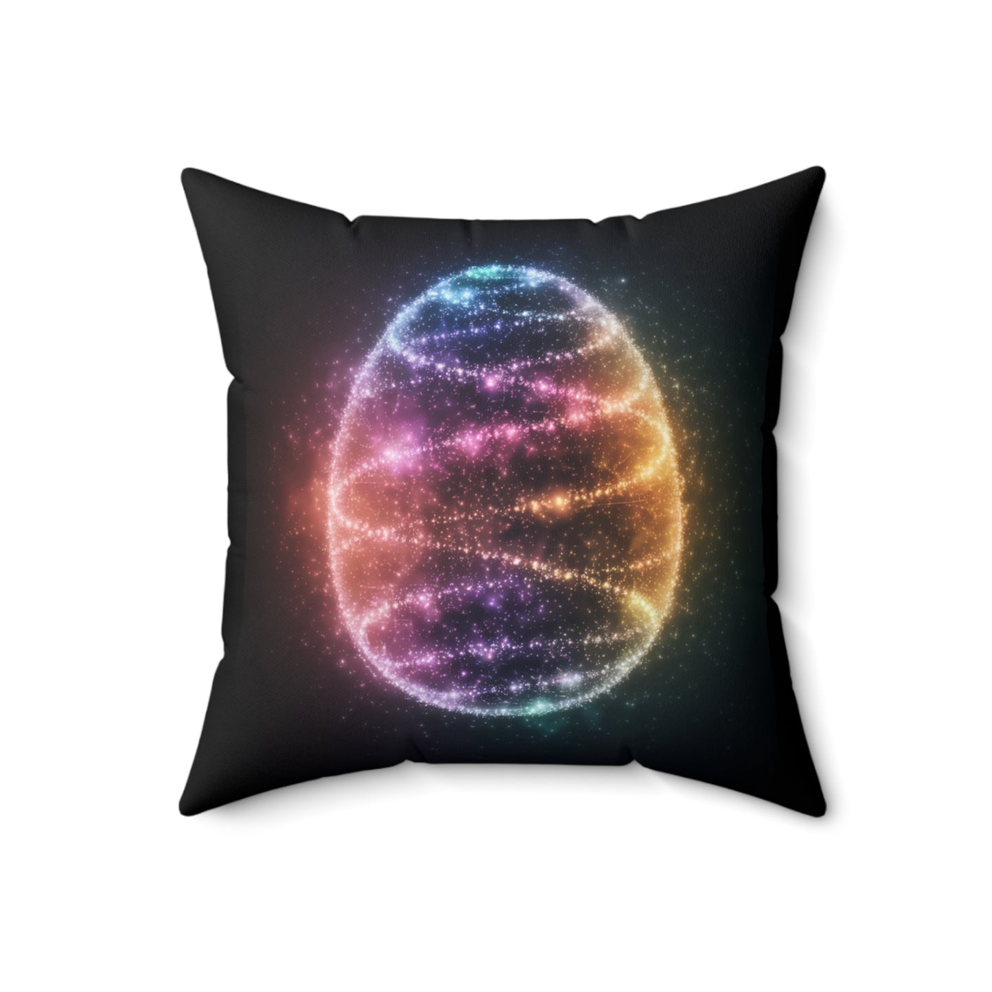 A fun pillow with a bioluminescent Easter Egg design, perfect for adding a touch of whimsy to your home decor. This pillow is ideal for Easter celebrations or for anyone who loves playful and unique decorations.