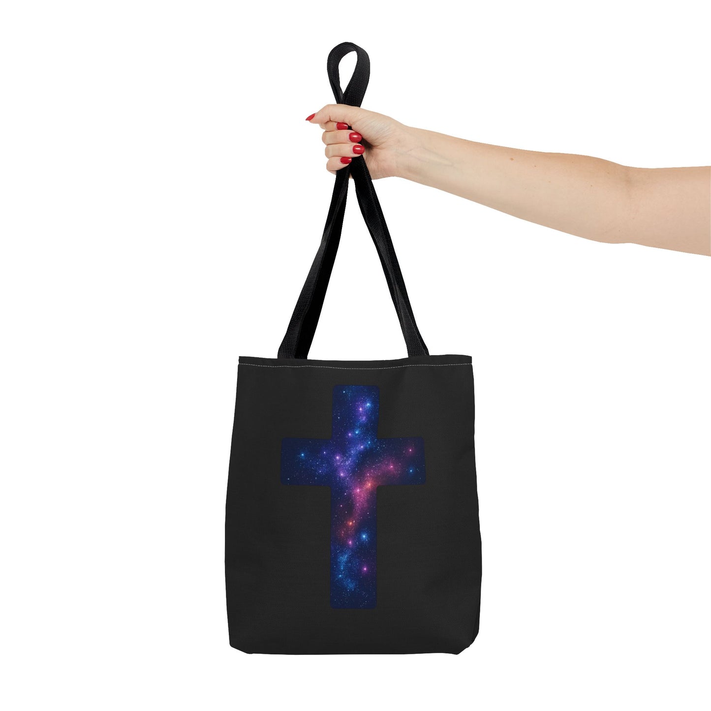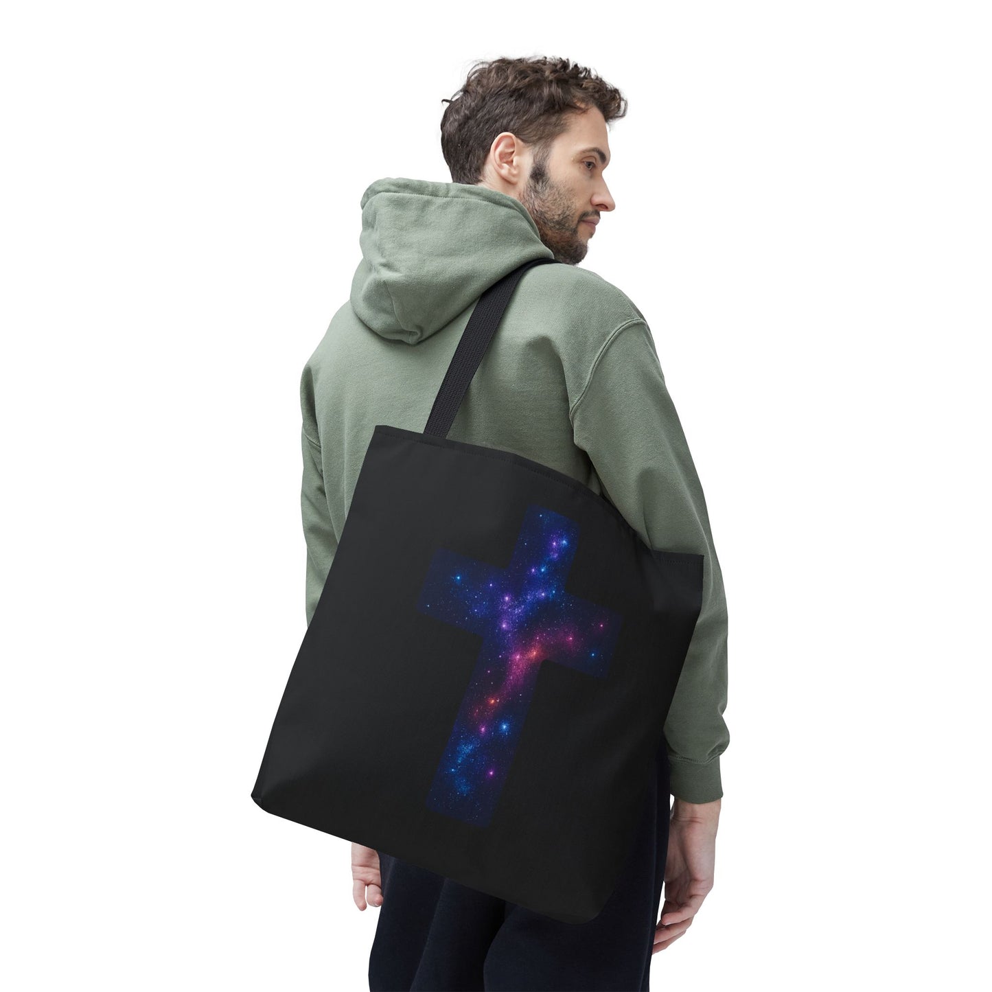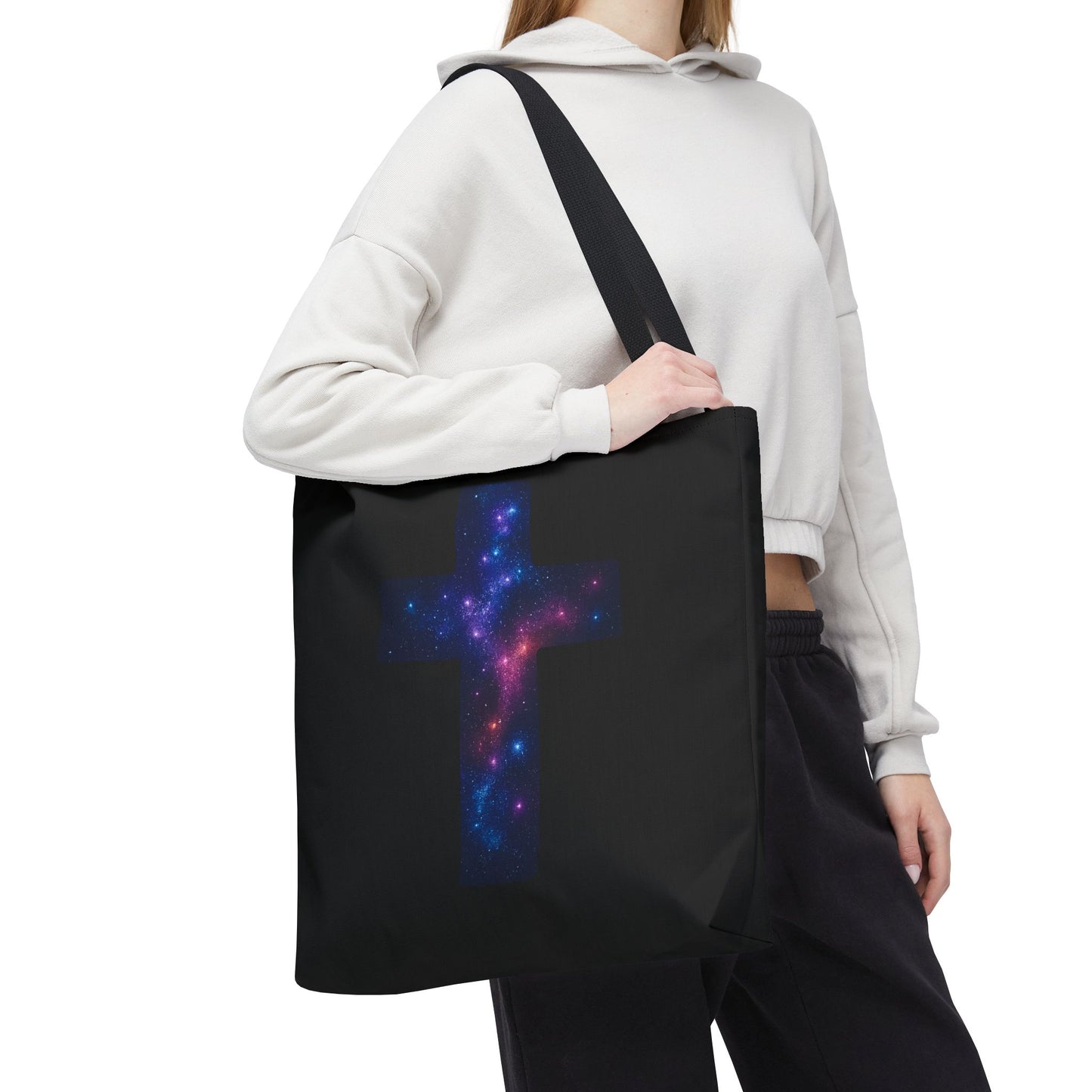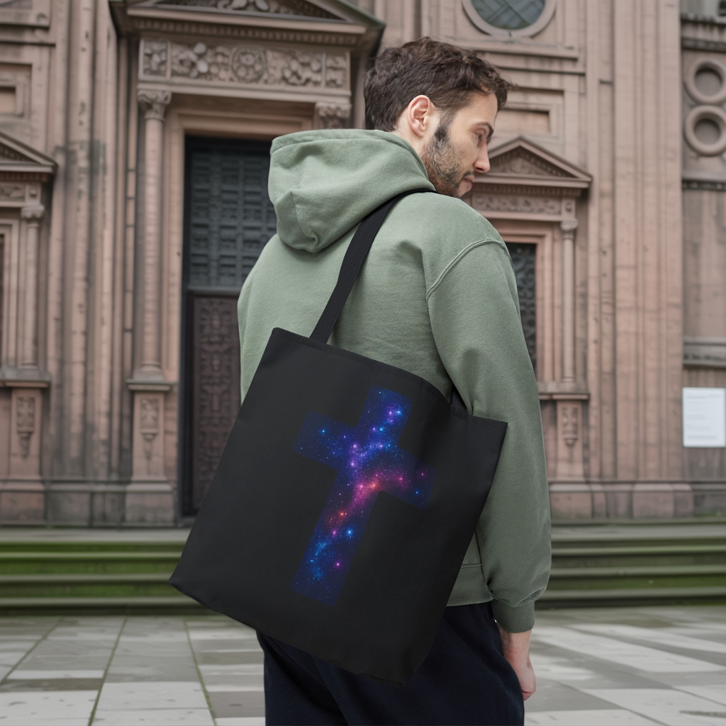 Galaxy Cross Tote Bag – Christian Faith Bag, Inspirational Reusable Shopper, Spiritual Gift for Women & Men, Religious Church Bag