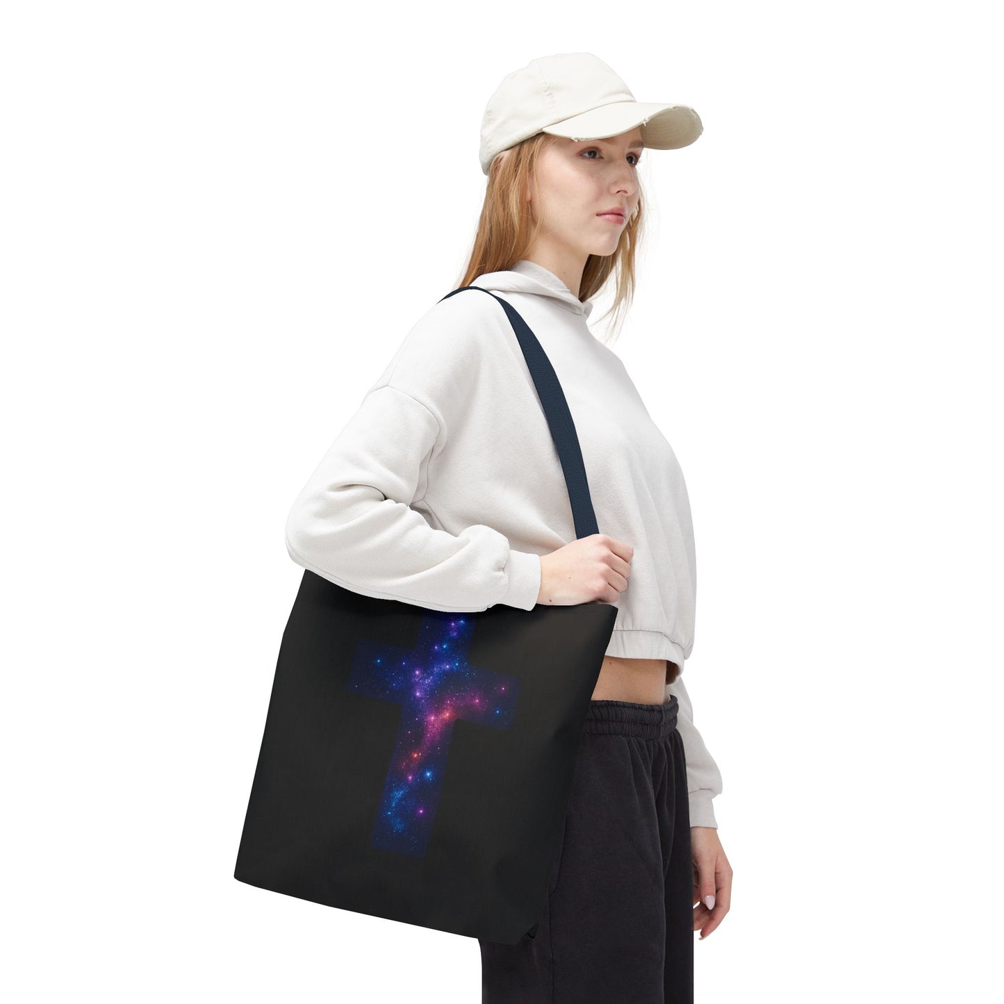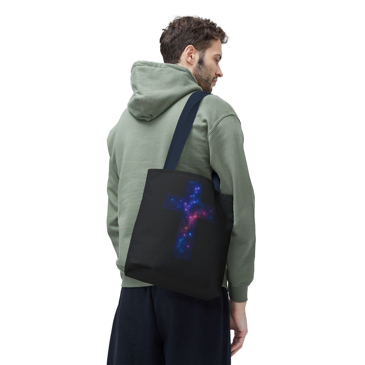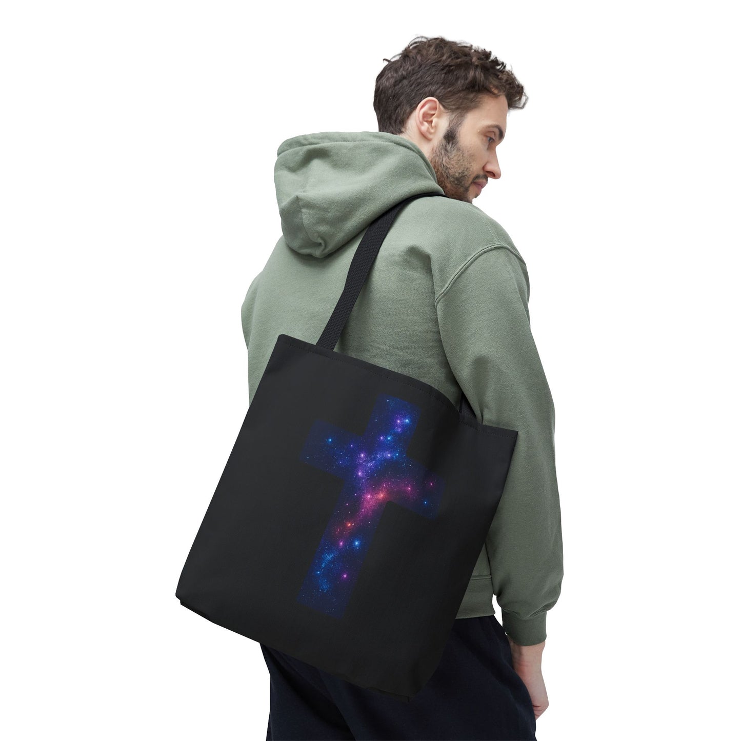 Galaxy Cross Tote Bag – Christian Faith Bag, Inspirational Reusable Shopper, Spiritual Gift for Women & Men, Religious Church Bag