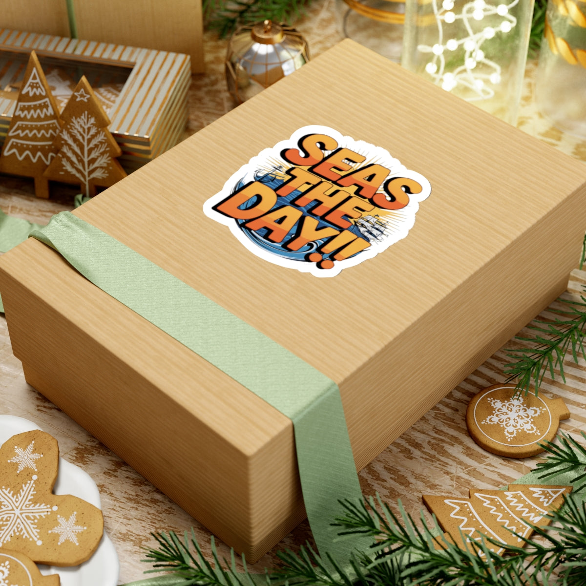 A fun pun sticker that states "Seas the Day". Perfect for those who love to add a touch of humor to their belongings. Ideal for students, travelers, and beach lovers. Relevant for back-to-school, summer, and beach themed occasions.