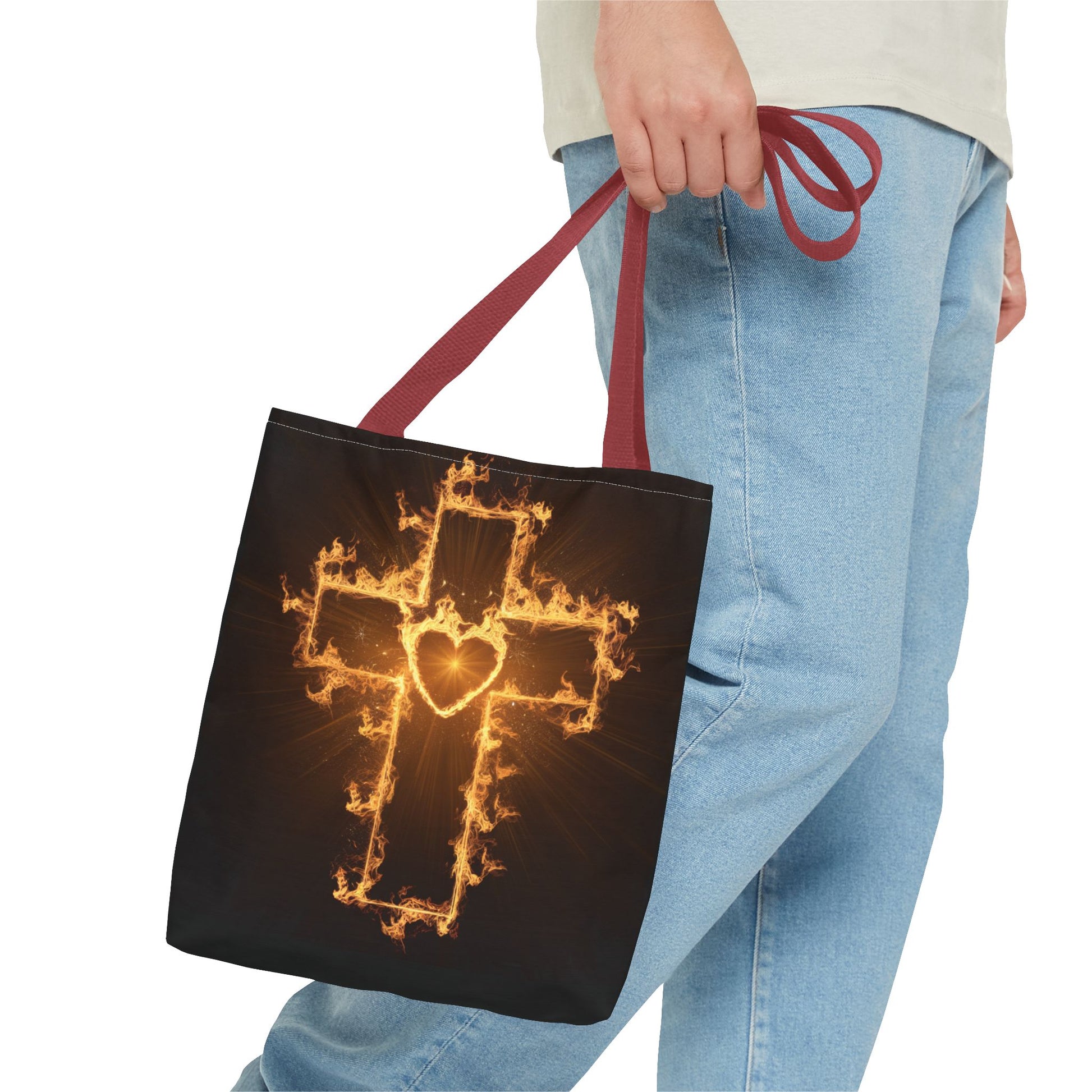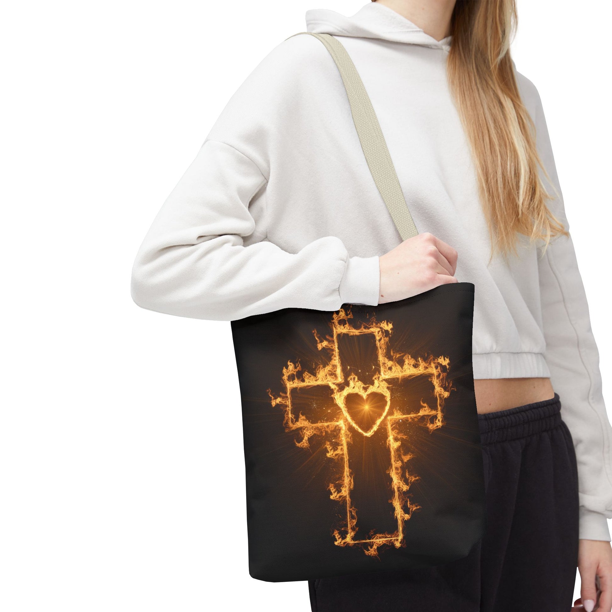 Stylish Flame Cross Tote Bag - Faith-Inspired Fashion