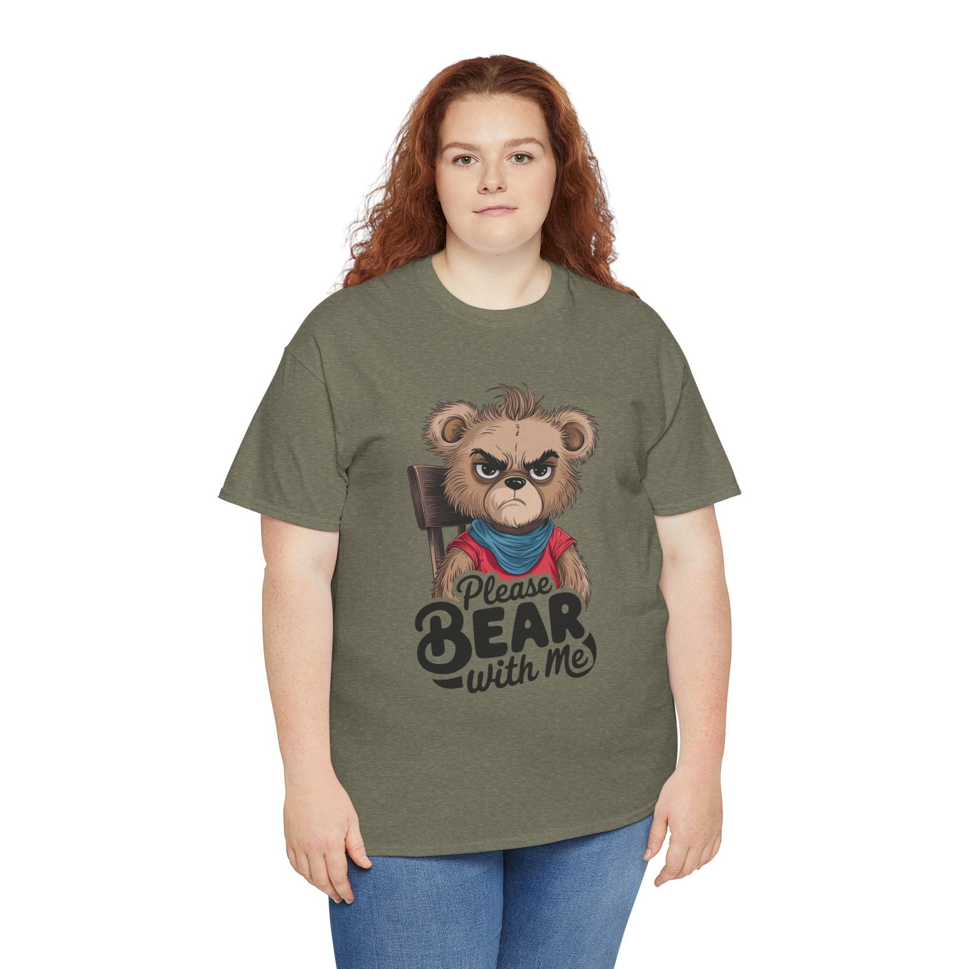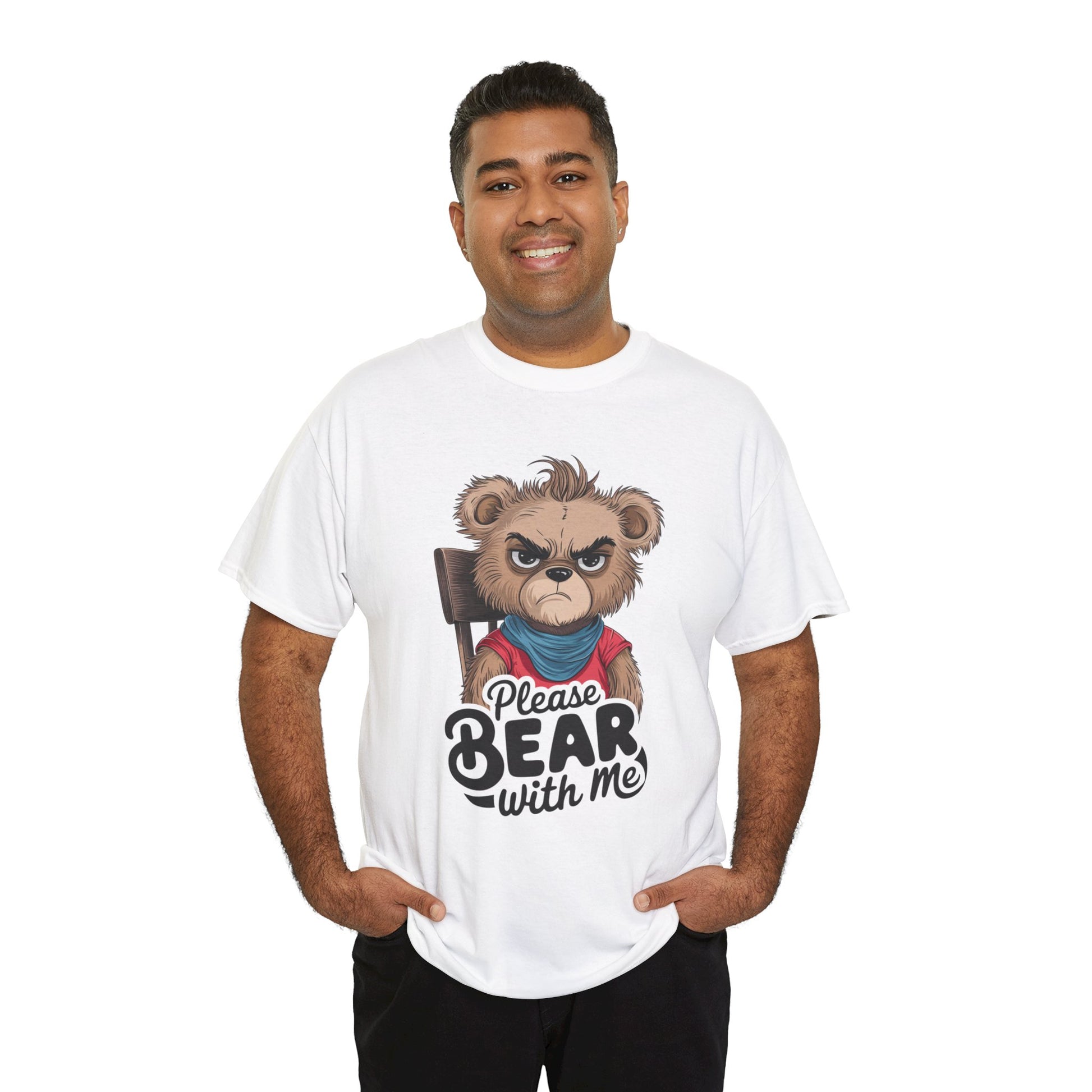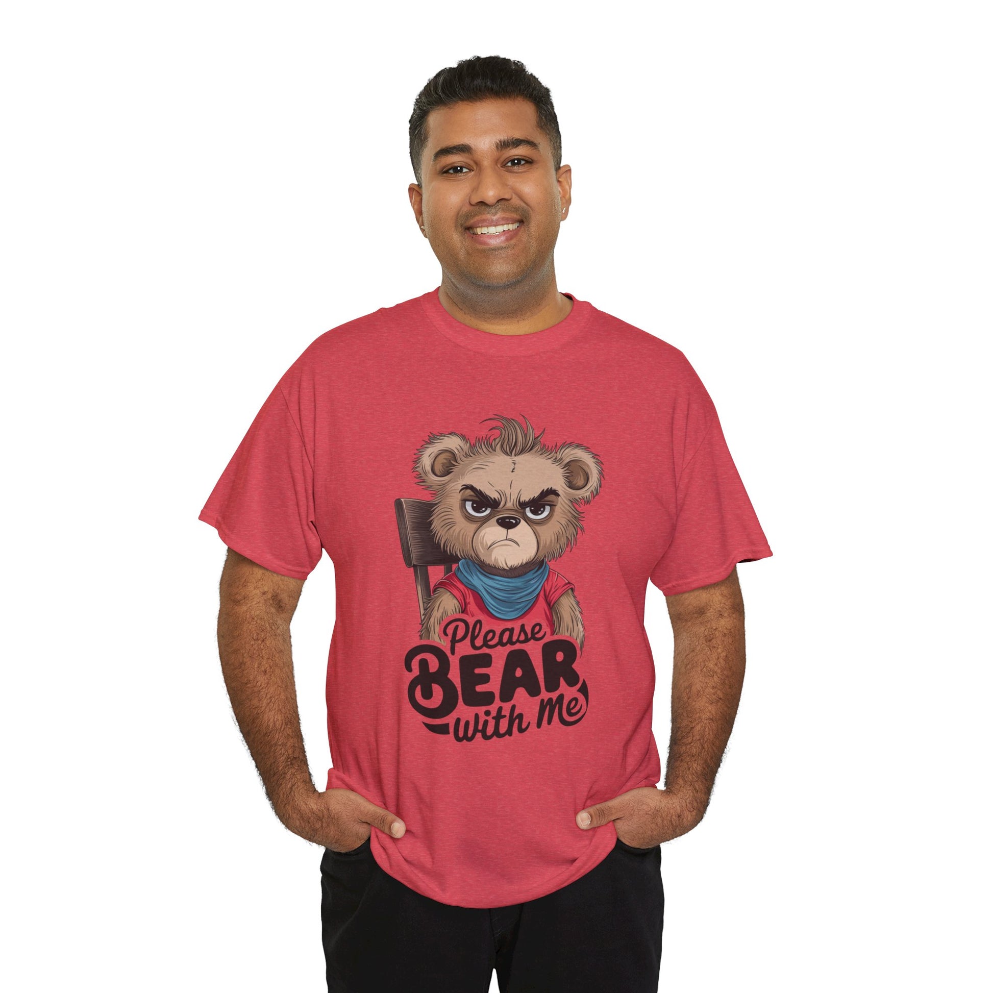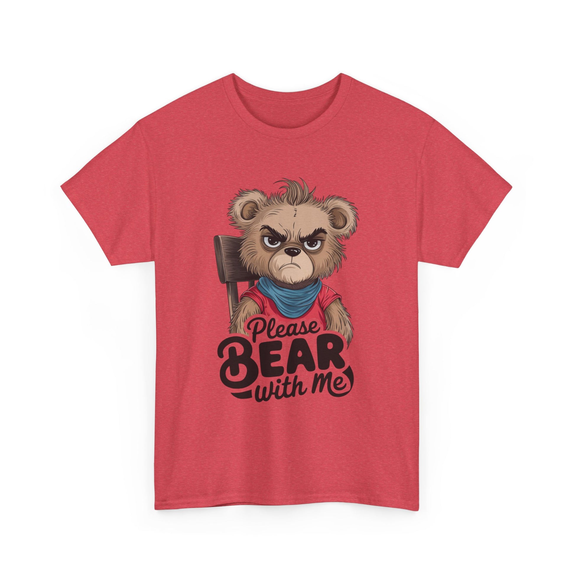 Bring home the grumpy bear who says it like it is—meet your new favorite sarcastic tee. This graphic T‑shirt features a hilariously grumpy teddy bear illustration with bold text “Please Bear With Me”—perfect gift for anyone with a sense of humor and attitude.