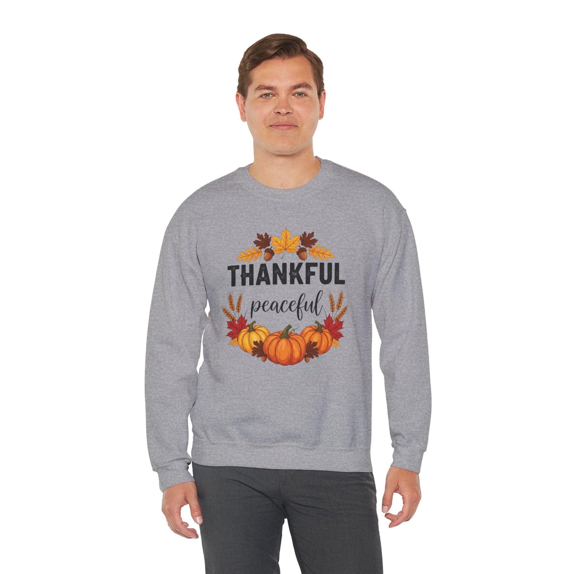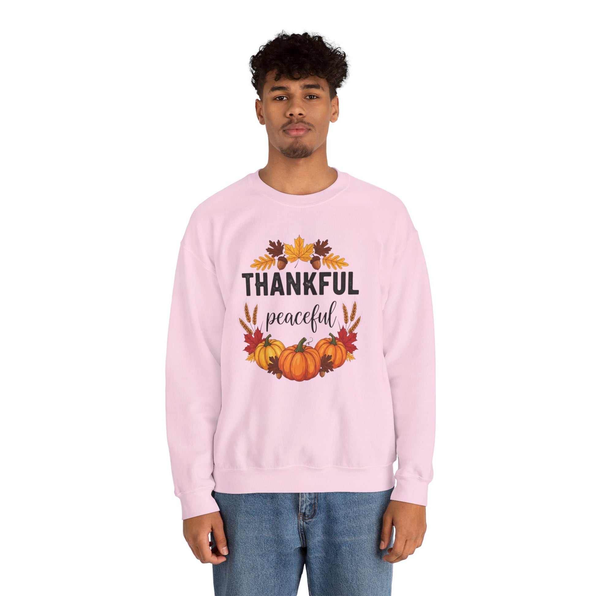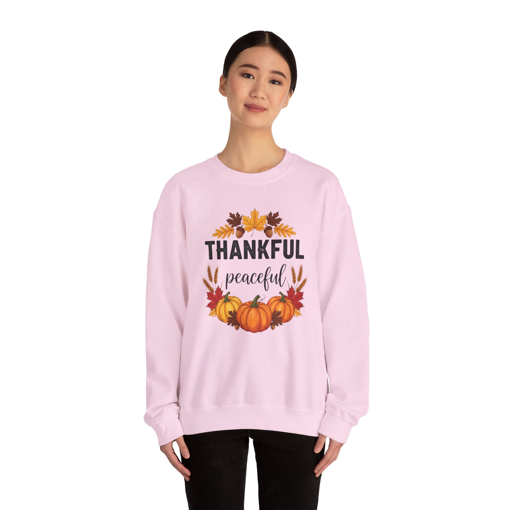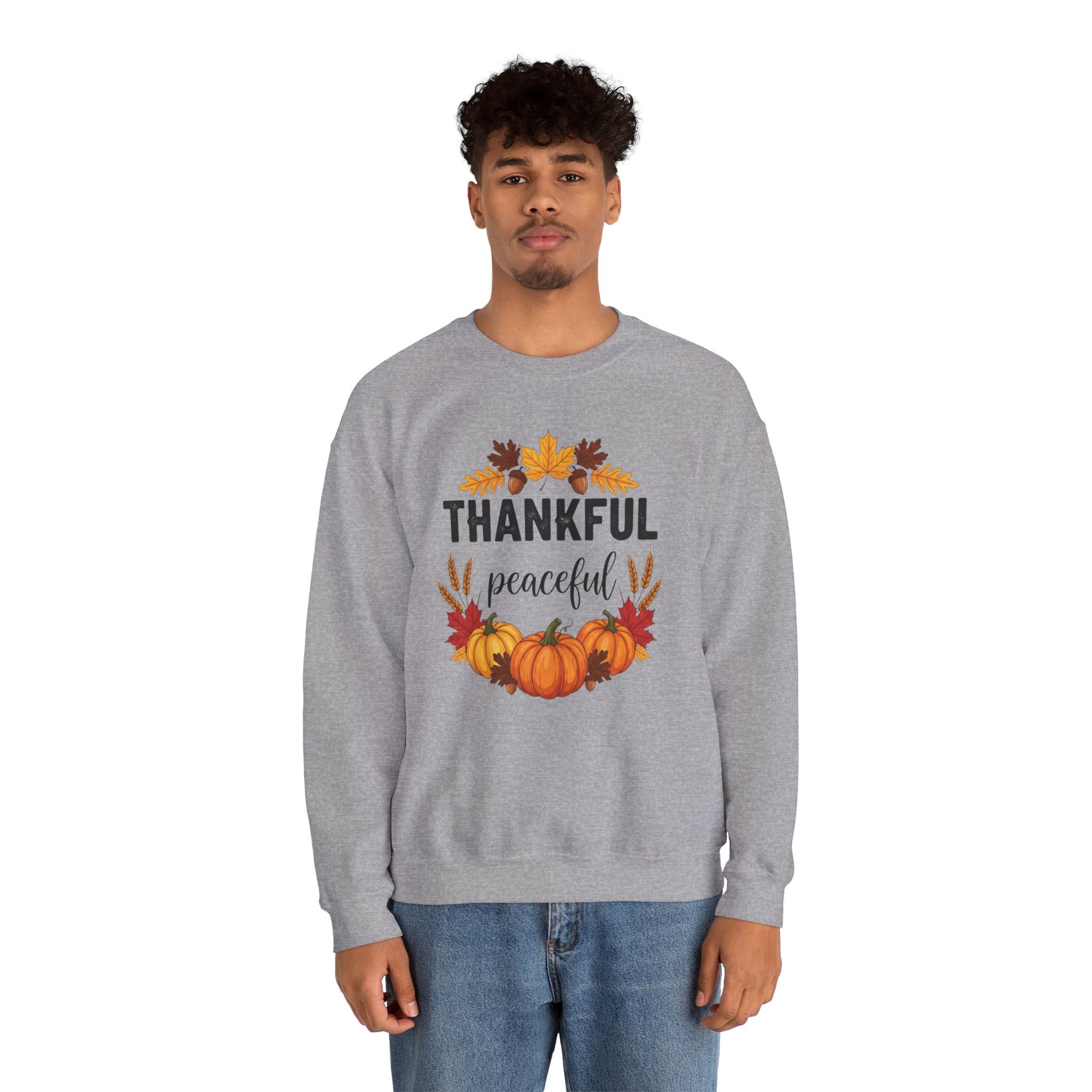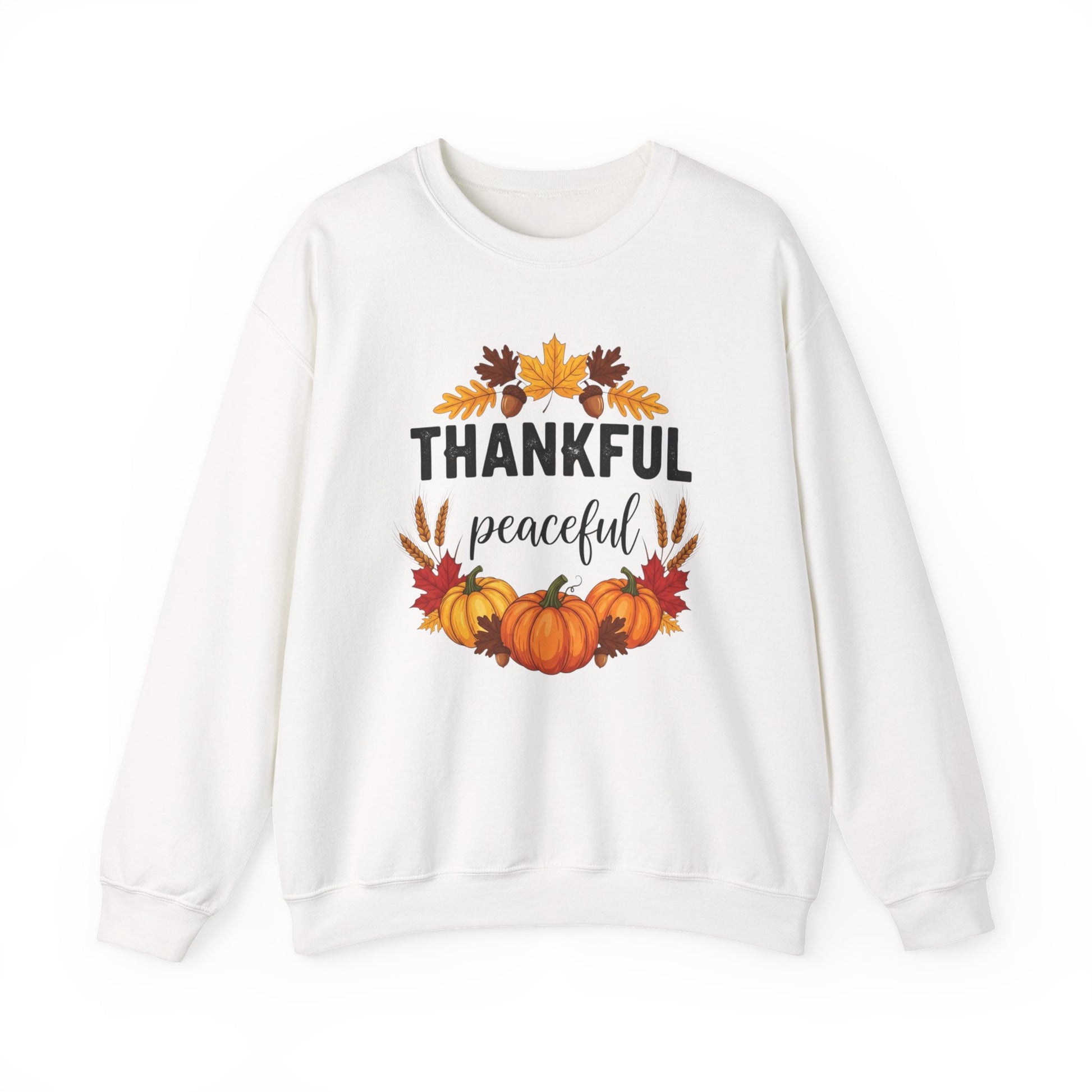 Thankful Peaceful Fall Sweatshirt, Autumn Pumpkin Crewneck, Thanksgiving Sweater, Cozy Seasonal Pullover, Gratitude Gift For Women Men