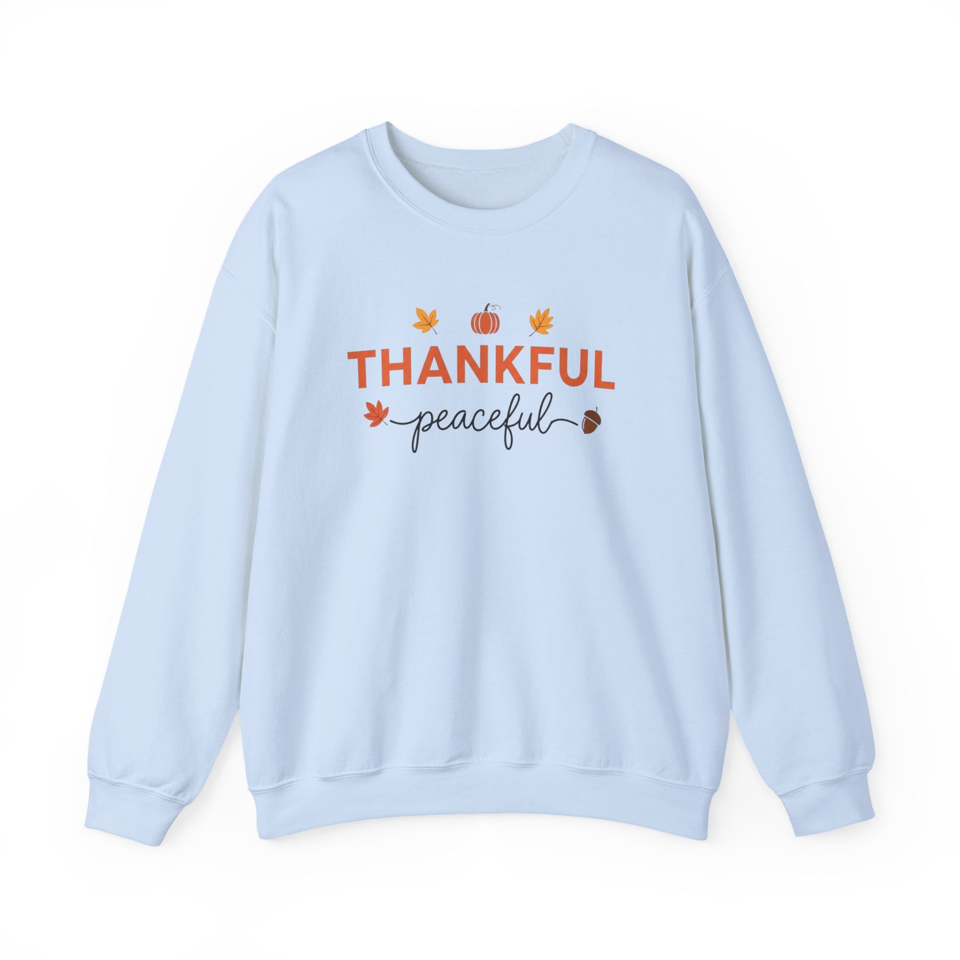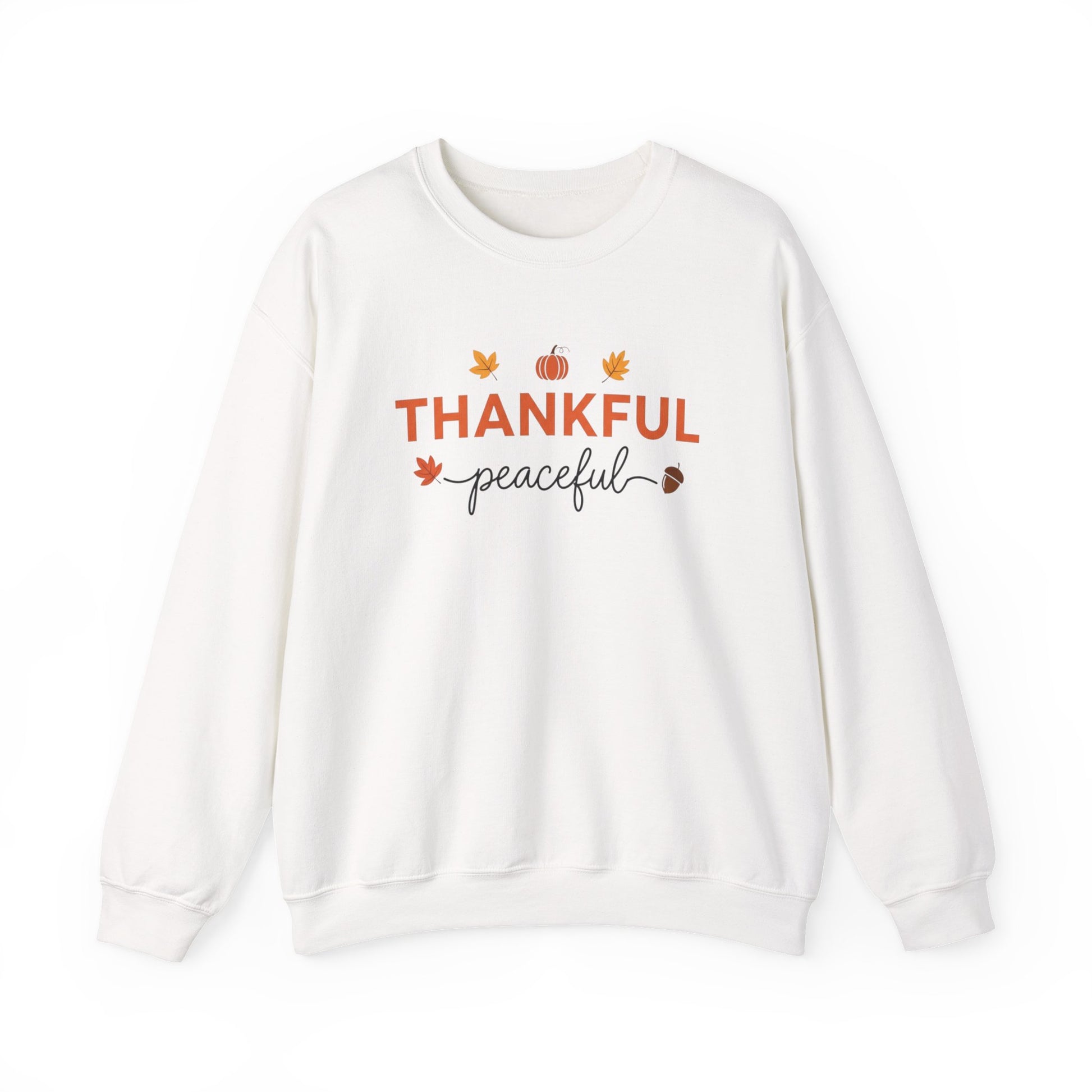 Thankful Peaceful Sweatshirt, Minimalist Fall Crewneck, Autumn Pumpkin Sweater, Thanksgiving Pullover, Cozy Seasonal Gratitude Gift