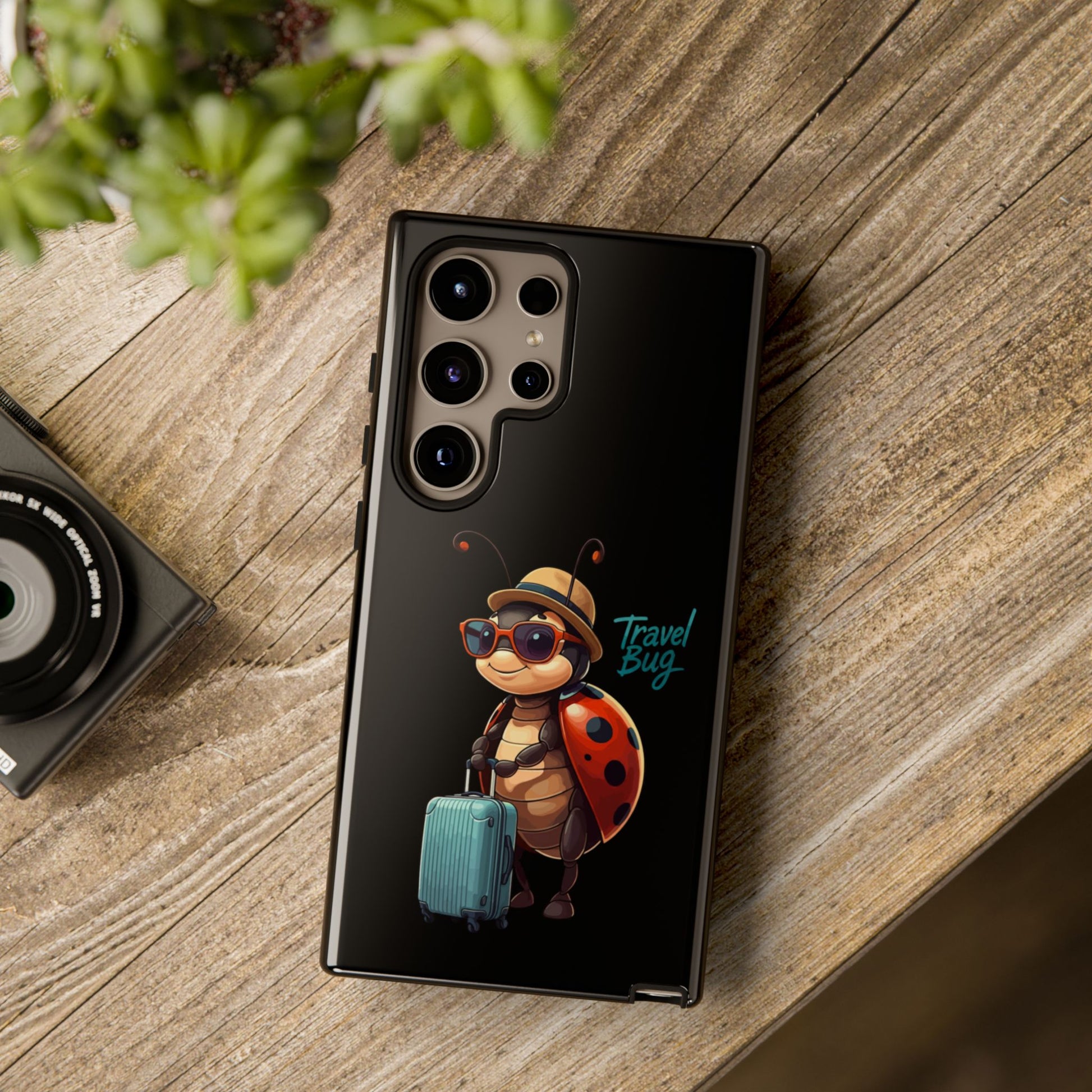 A fun Samsung Galaxy phone case featuring a traveling Ladybug with the phrase "Travel Bug". This durable and impact resistant case provides excellent protection against drops and tears. Perfect for those with a love for travel and adventure, this phone case is a great accessory for holidays and everyday use.