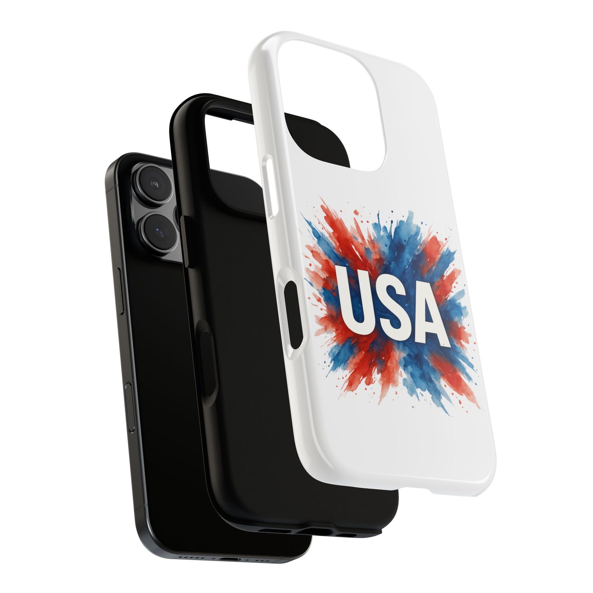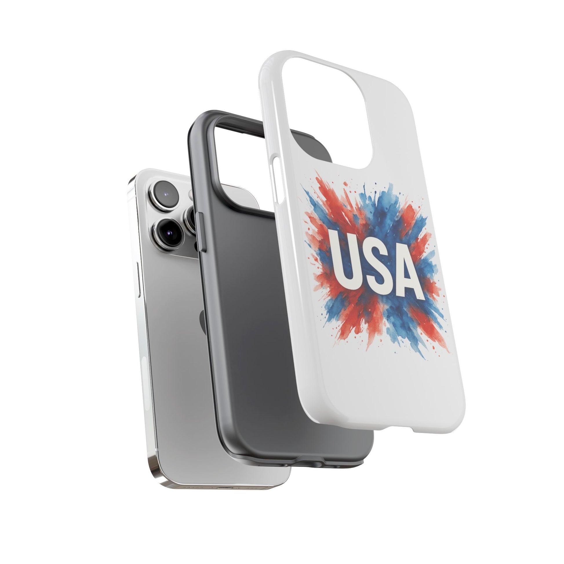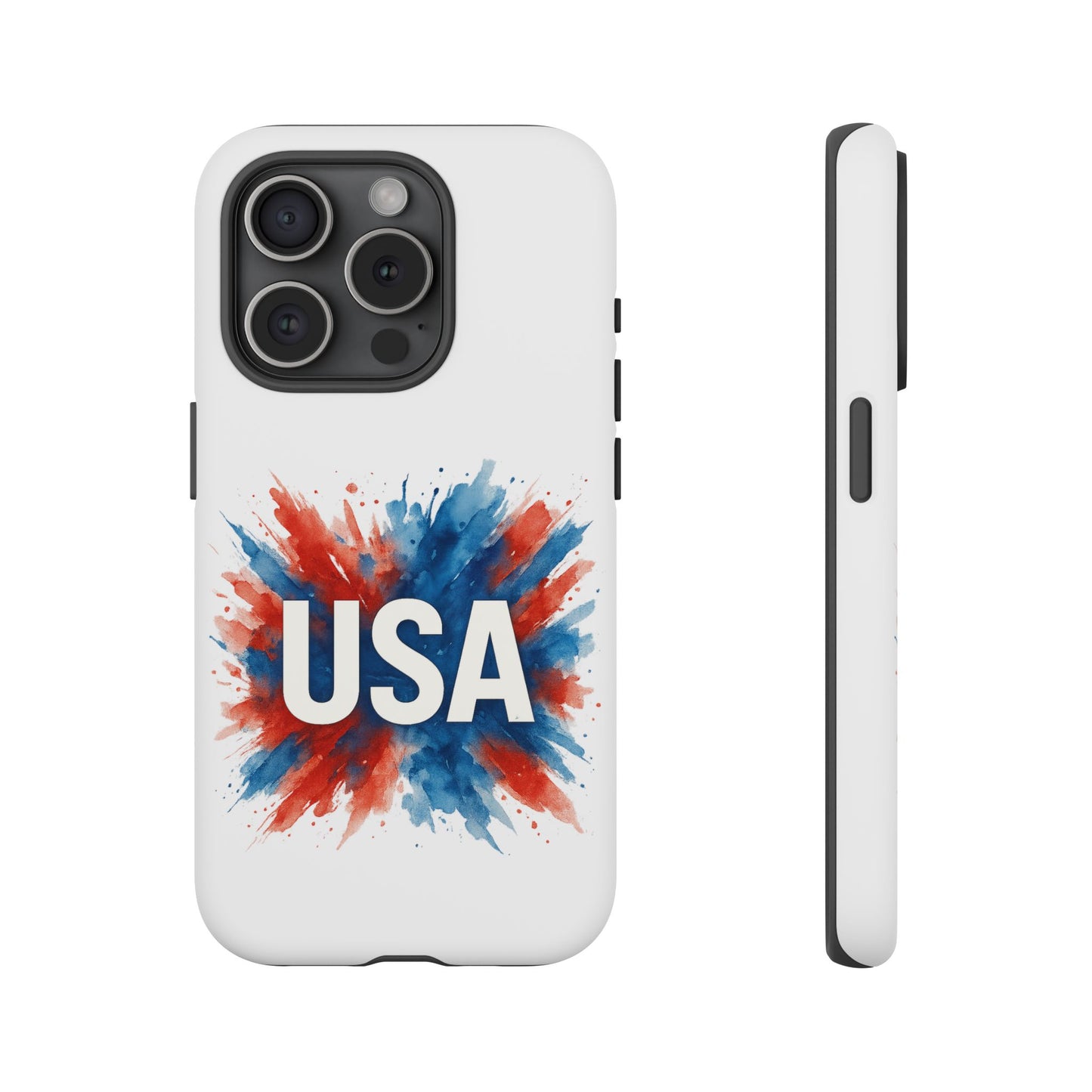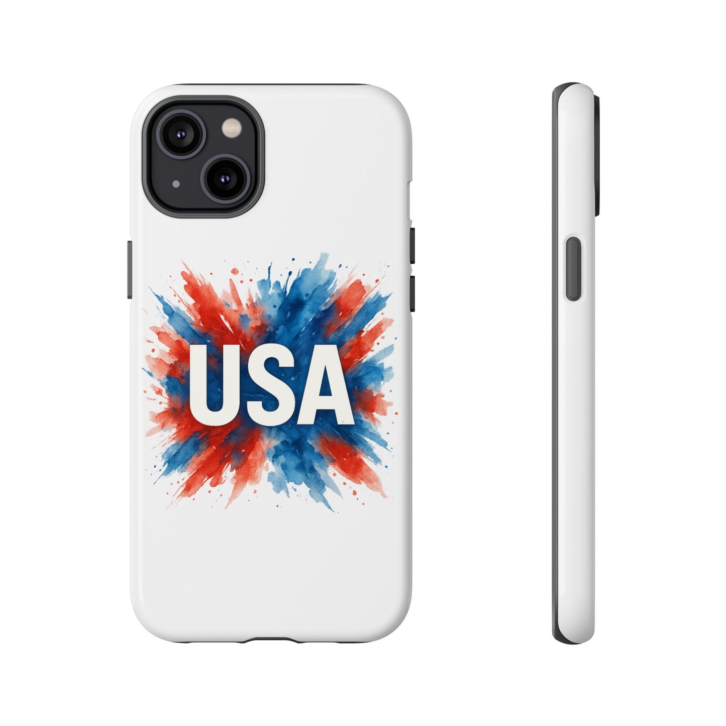 USA Splash iPhone Case - Patriotic Red White Blue Tough Cover, Dual-Layer Protection, 4th of July Memorial Day Gift