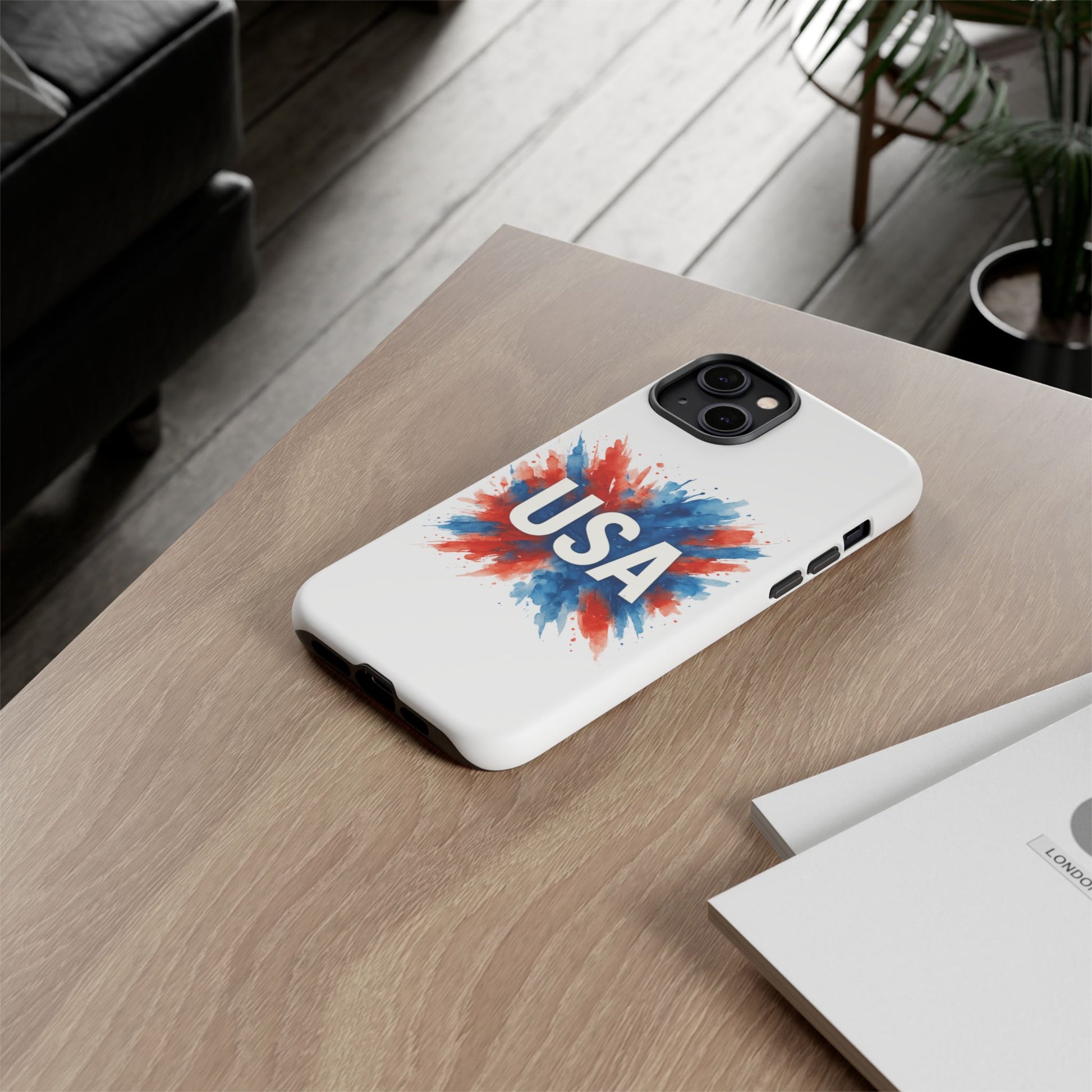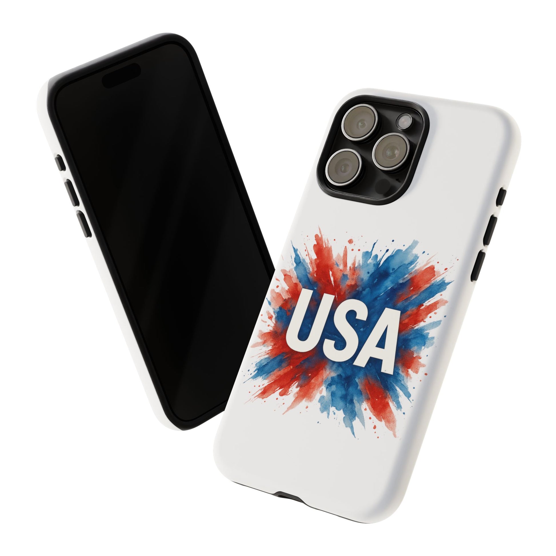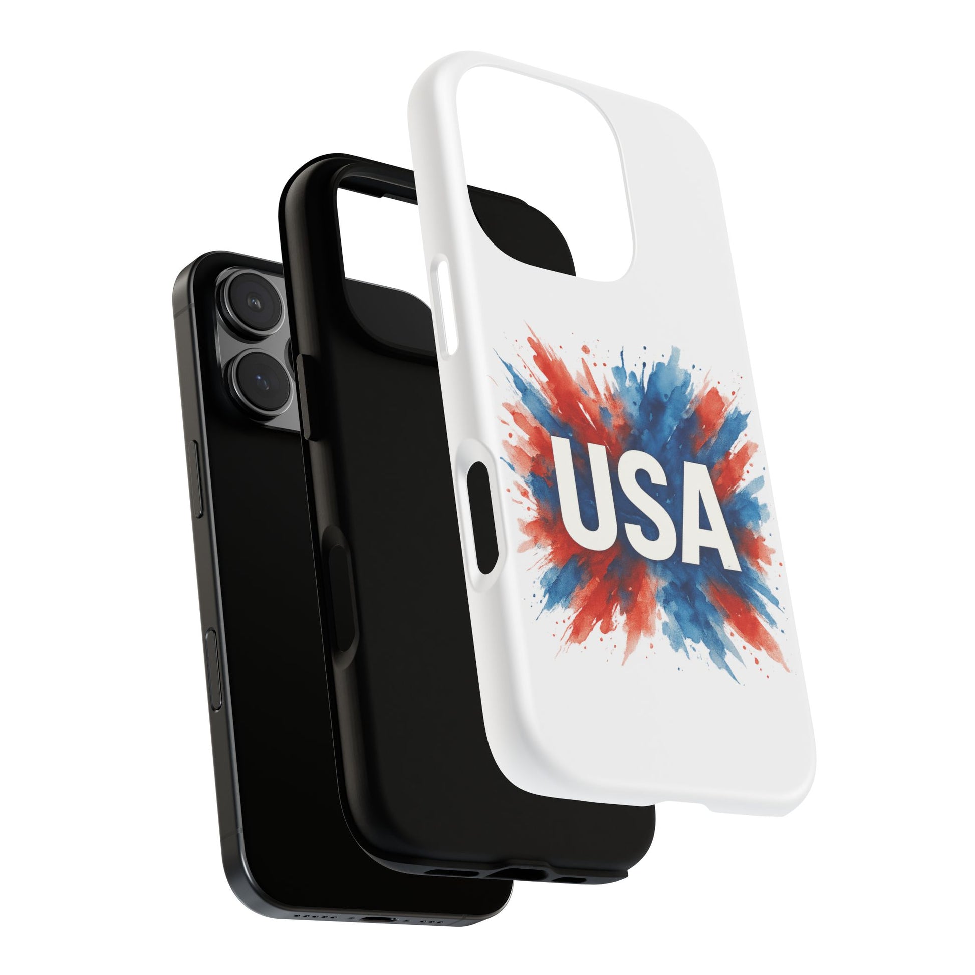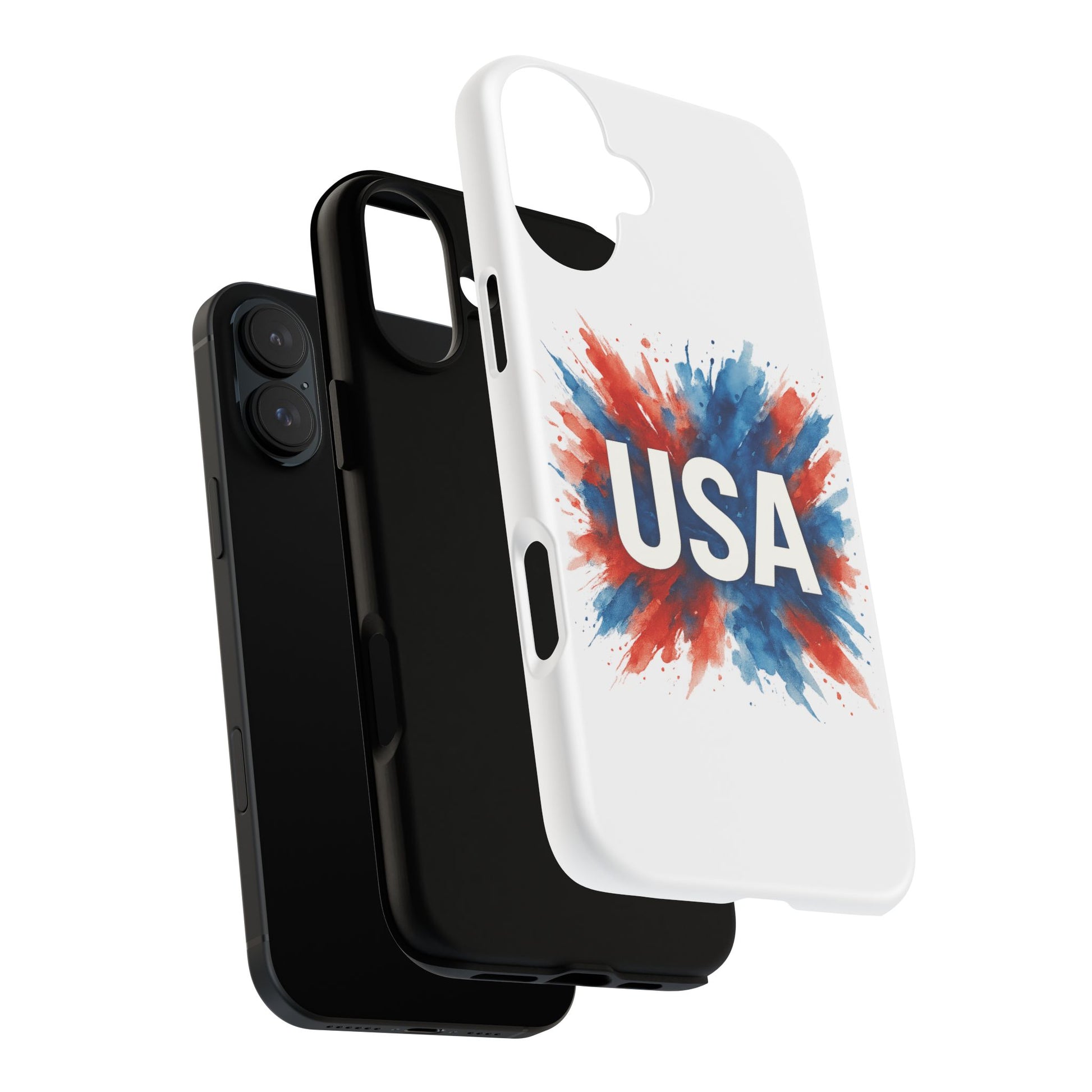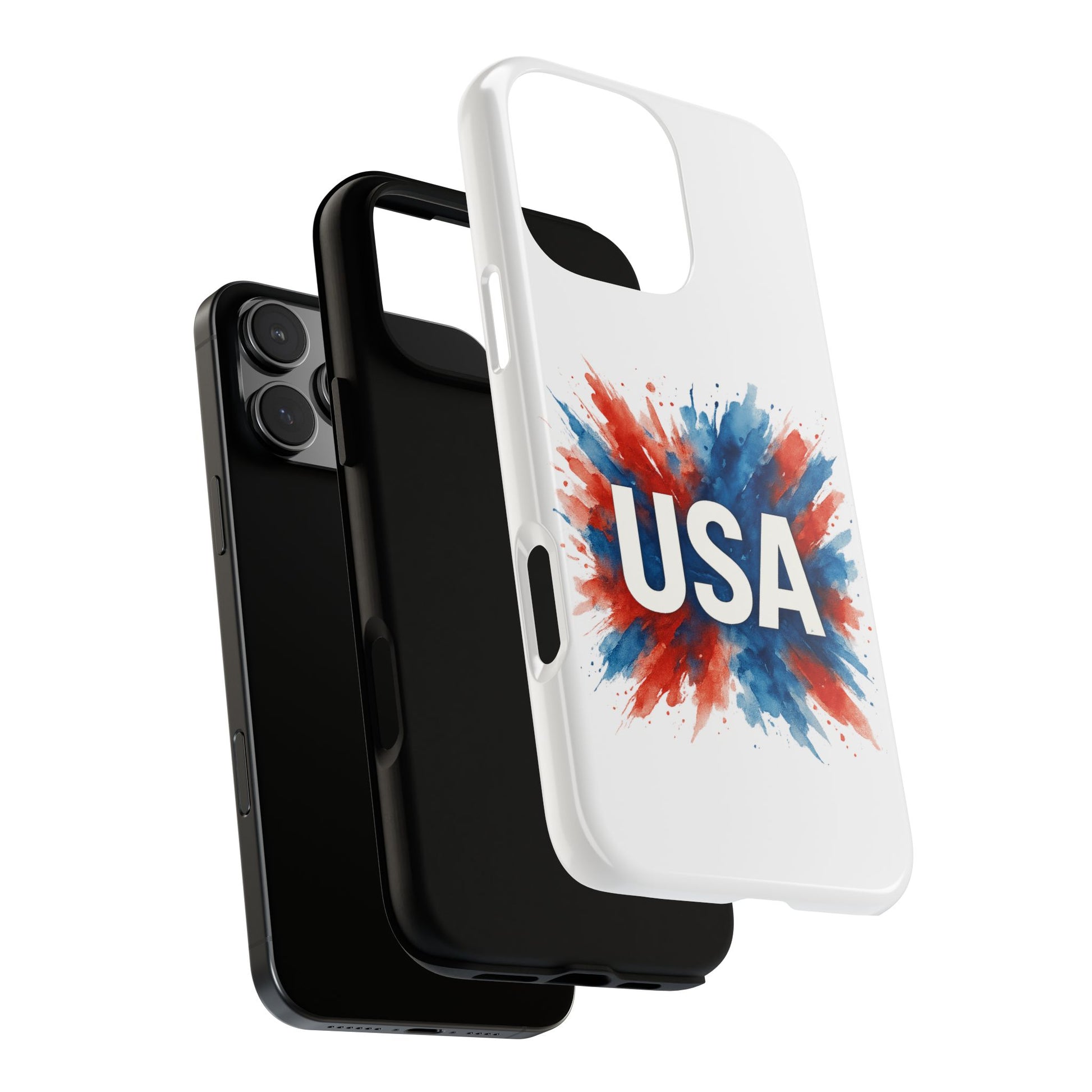 USA Splash iPhone Case - Patriotic Red White Blue Tough Cover, Dual-Layer Protection, 4th of July Memorial Day Gift