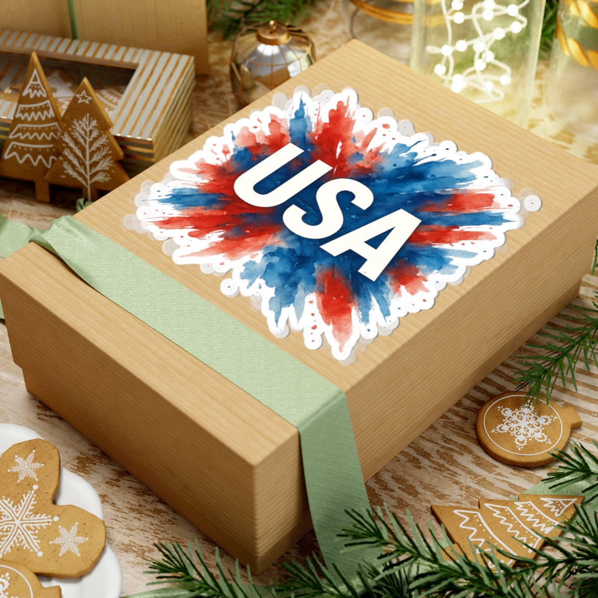 USA Watercolor Sticker - Kiss-Cut Vinyl Patriotic Decal, Independence Day Decor, Laptop and Journal Sticker, July 4th Gift